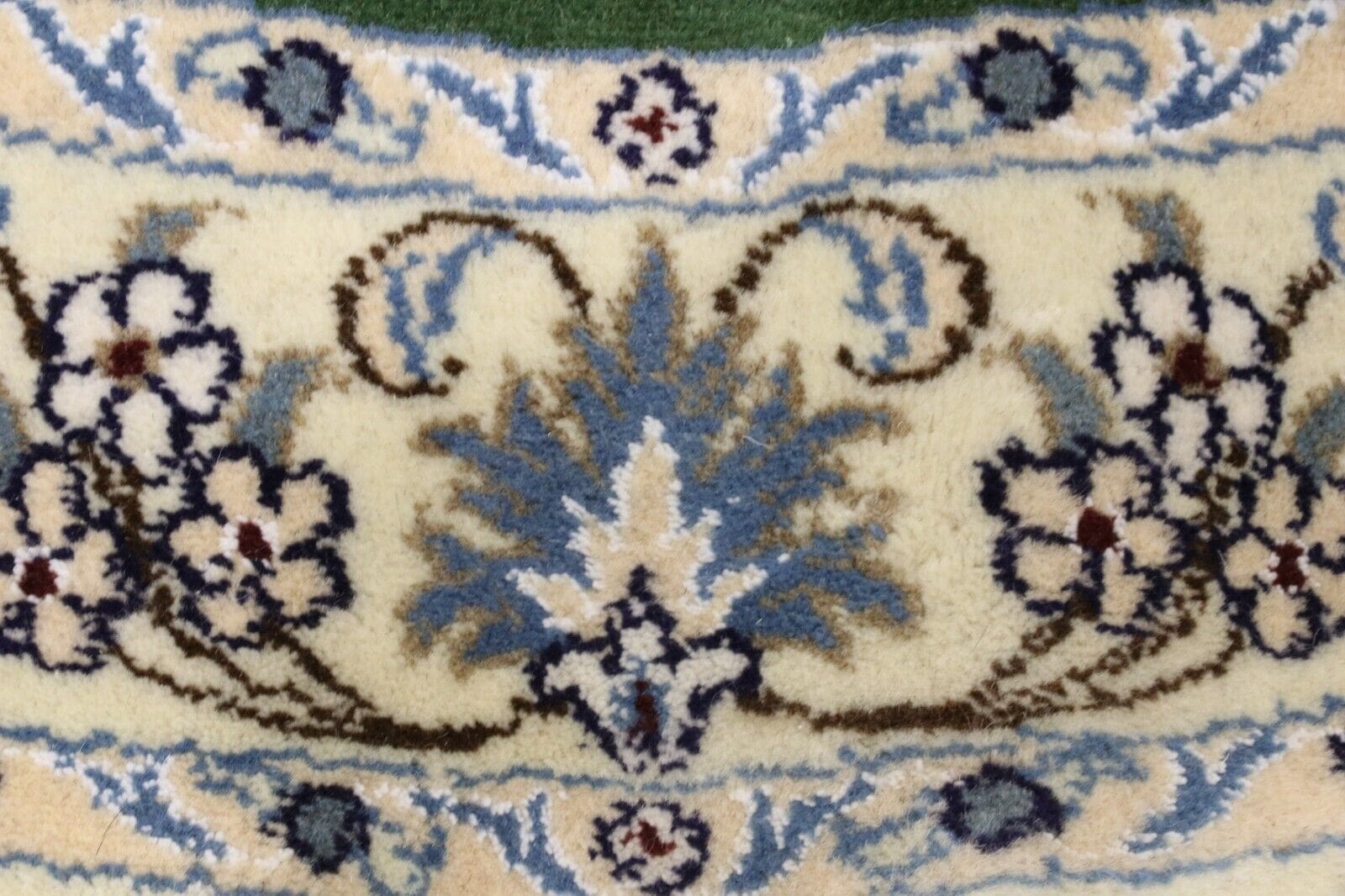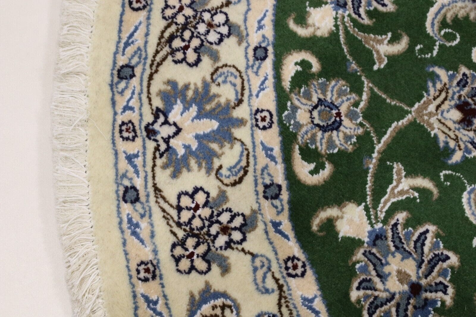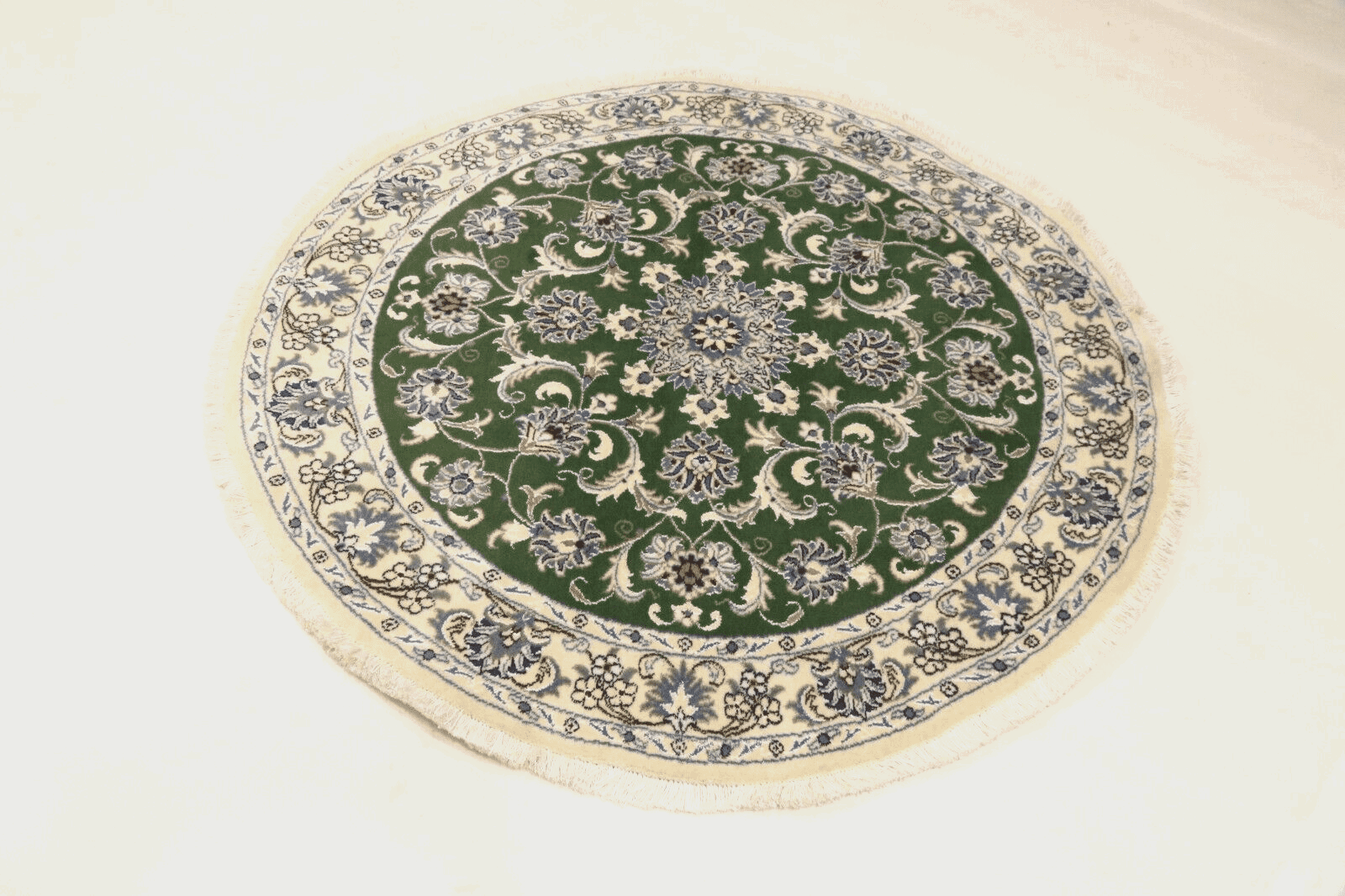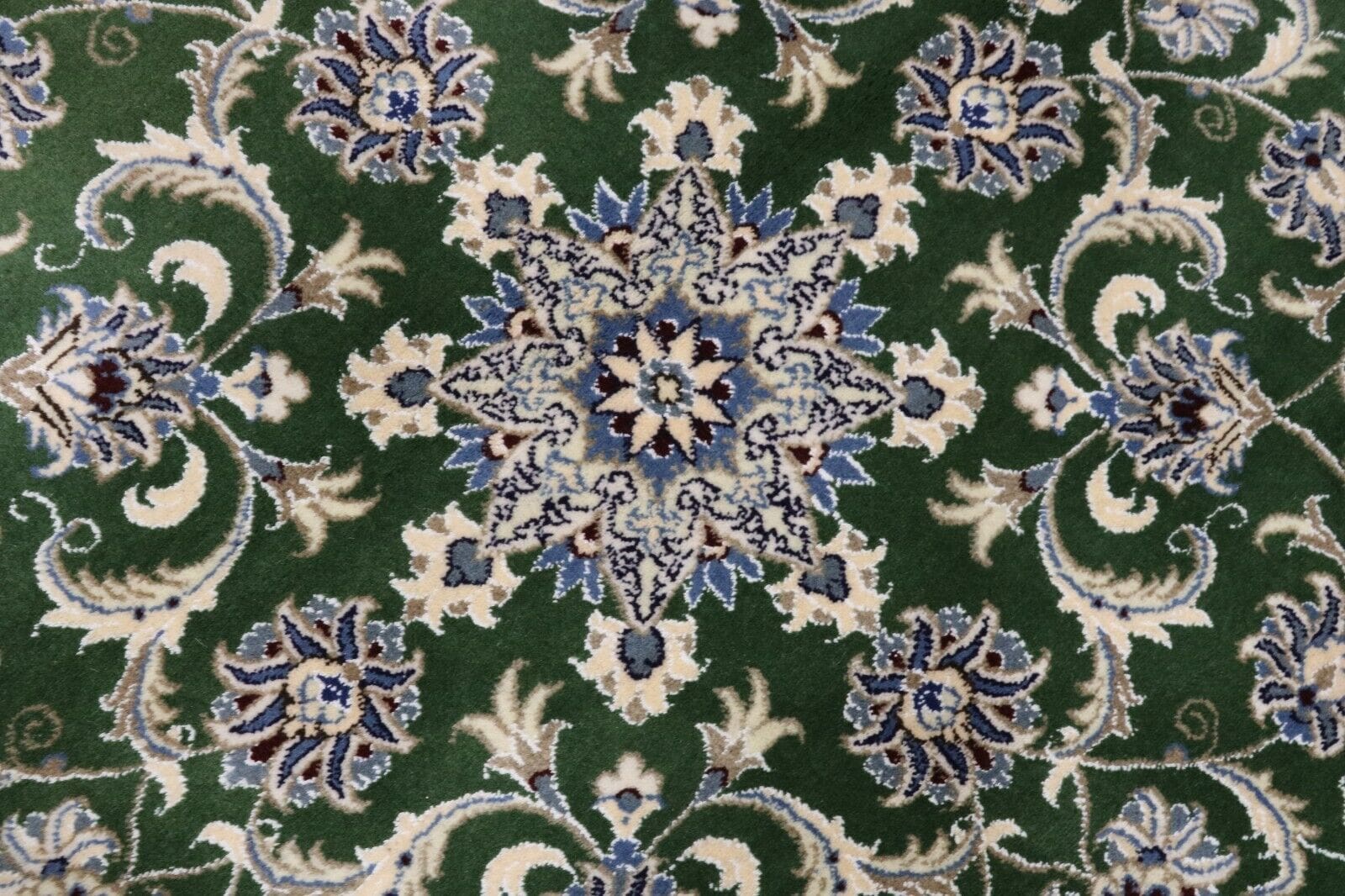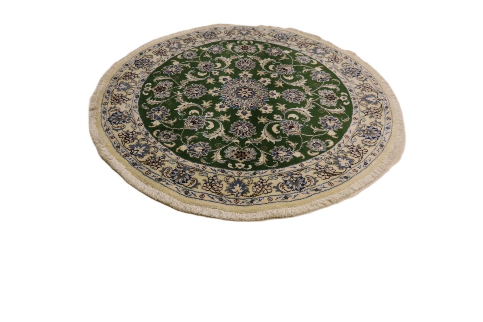 Orientteppich Nain | Größe: 100 x 100 cm | Knotendichte: ca. 300.000 Knoten/m² | Material: 90% Schurwolle, 10% Seide | Zustand: Neu, perfekt | Herkunft: Persien | Dicke: ca. 8 mm | Handgeknüpft, traditionell orientalisch | Für Fußbodenheizung geeignet | Haustierfreundlich | Farbe: Grün
