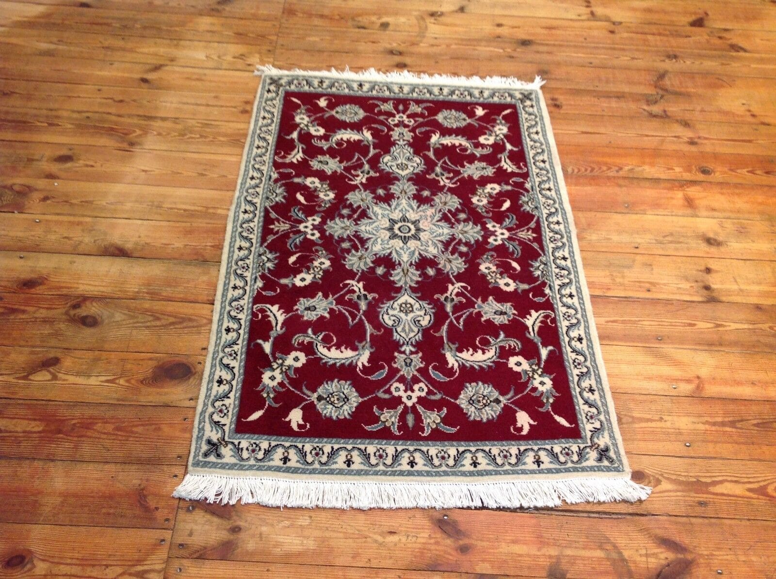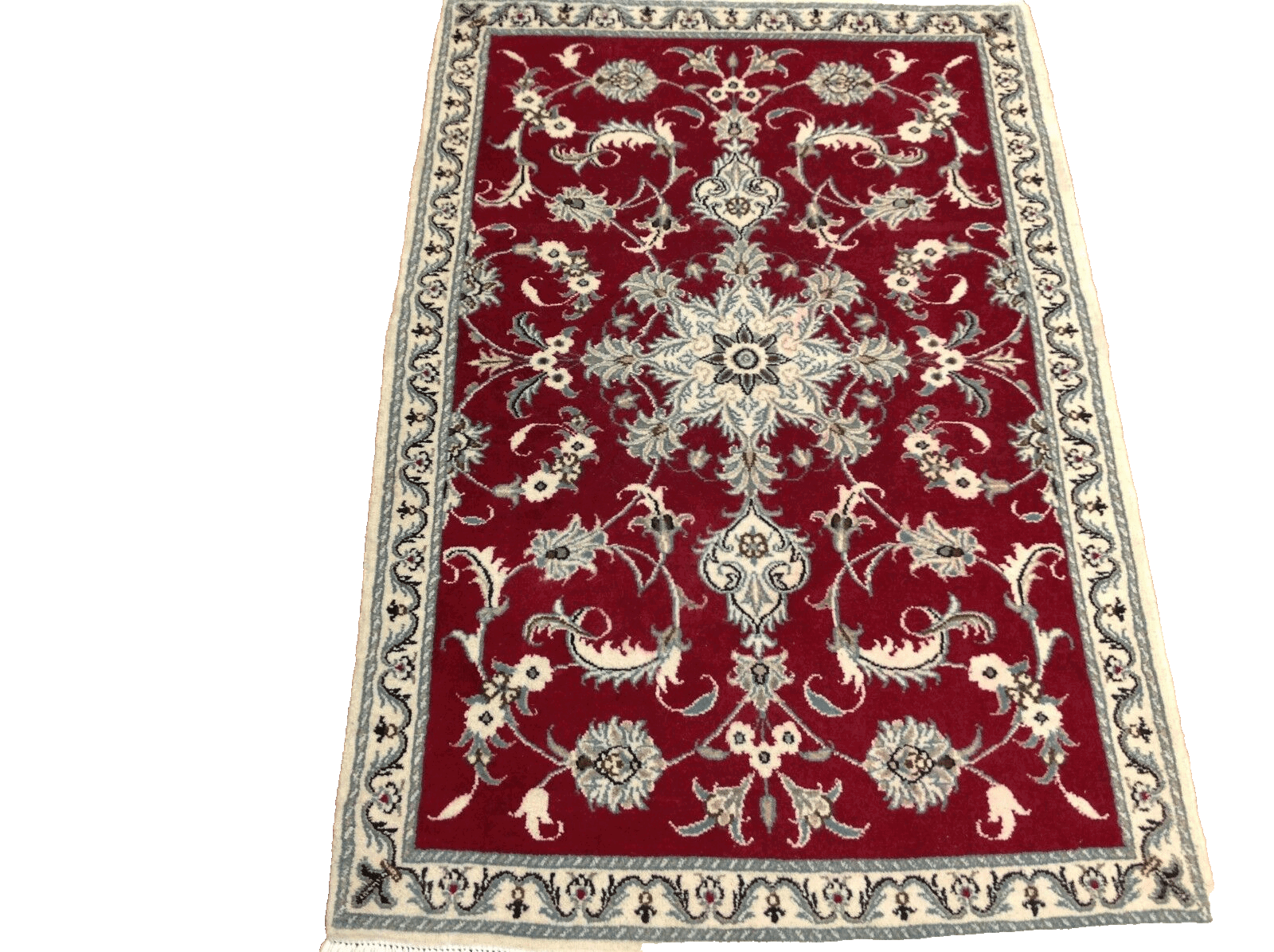 Orientteppich Nain | Größe: 138 x 90 cm | Material: 100% Schurwolle (Flor) und 100% Baumwolle (Kette) | Knotendichte: ca. 300.000 Knoten/m² | Dicke: ca. 8 mm | Zustand: Neu, unbenutzt mit Etikett | Herkunft: Persien | Stil: Traditionell Orientalisch/Persisch | Muster: Orientalisch | Handgeknüpft | Unikat/Einzelstück | Kostenloser Versand innerhalb Deutschland | Inkl. Echtheitszertifikat