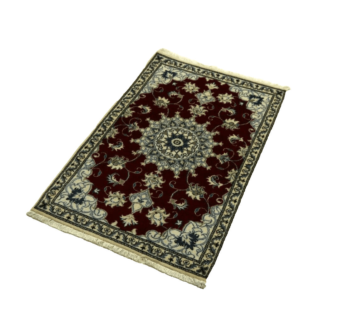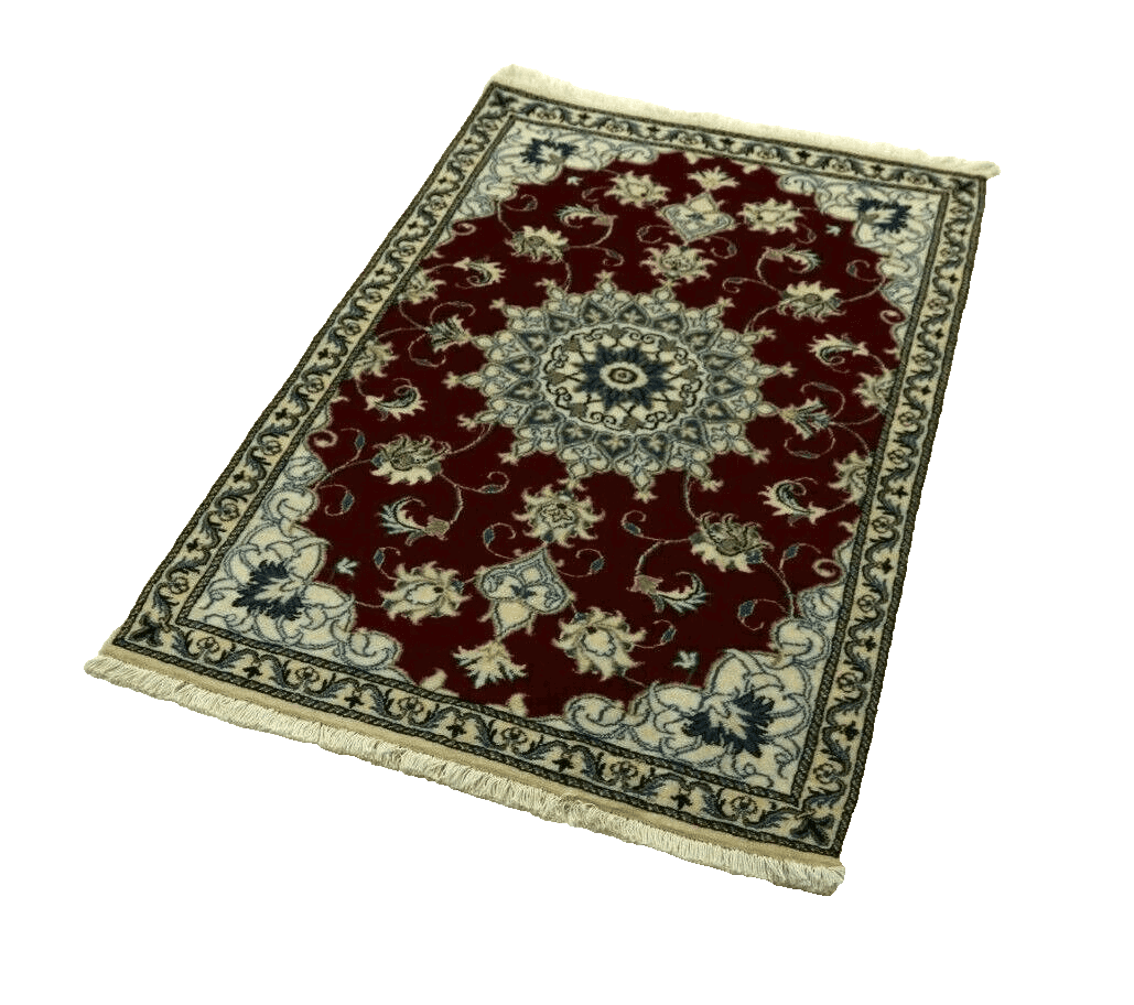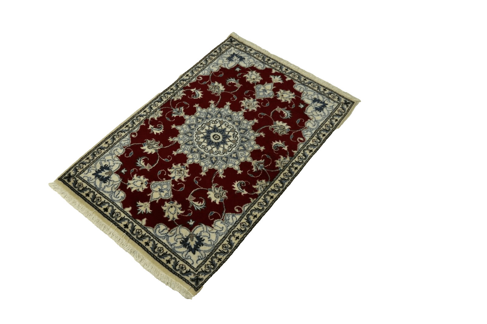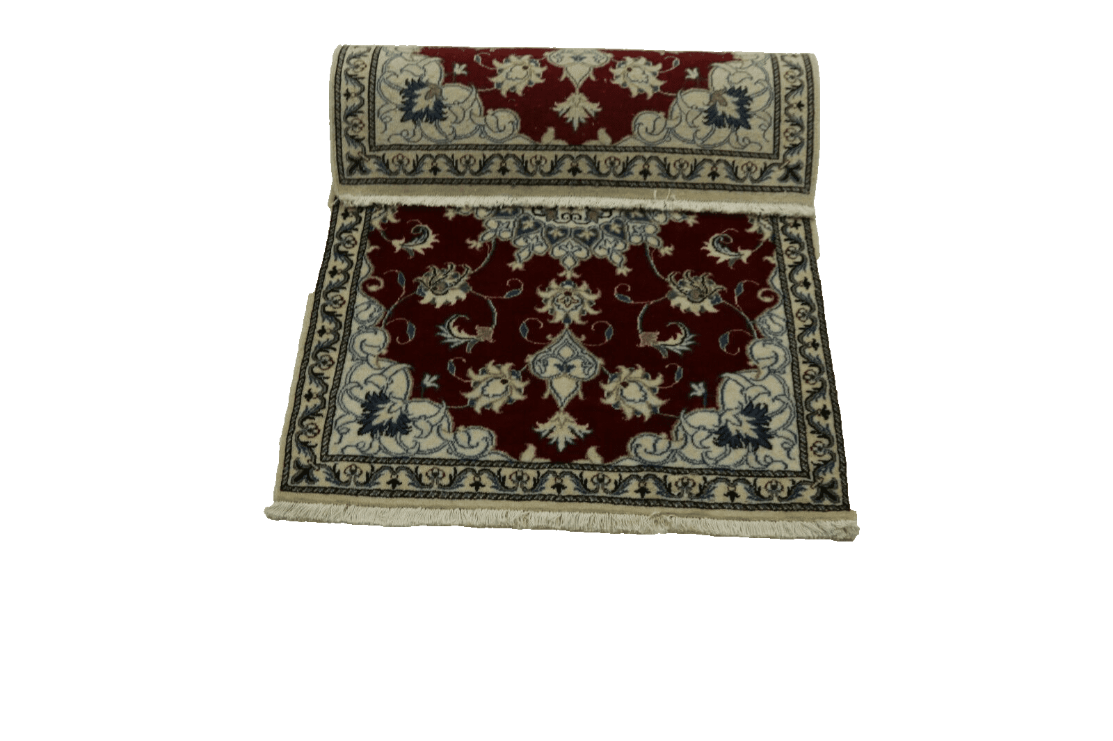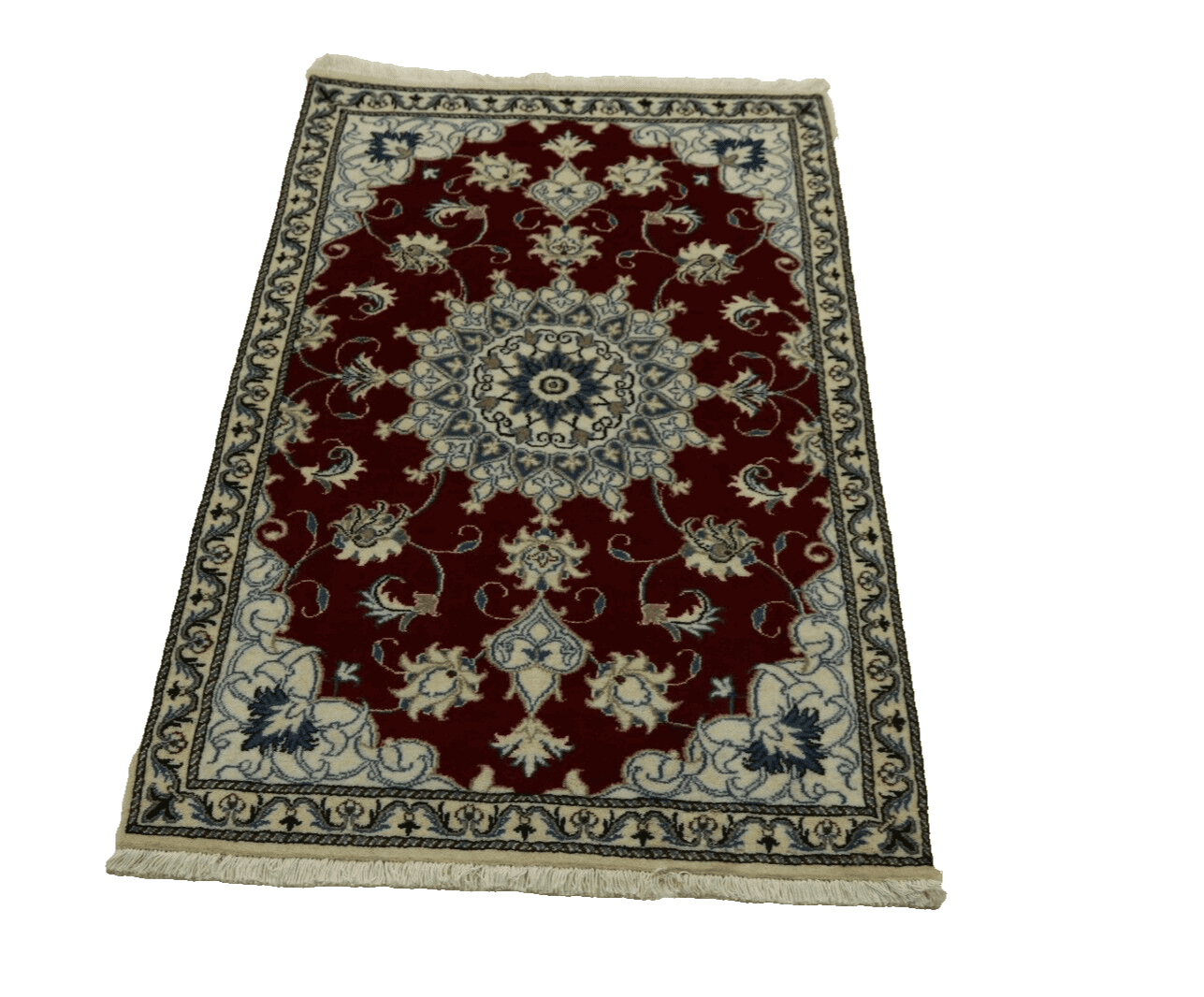Wunderschöner Perserteppich Nain | Größe: 138 x 92 cm | Material: 90% Wolle, 10% Seide | Knotendichte: 200.000 bis 250.000 Knoten/m² | Zustand: Neu und perfekt | Herkunft: Persien / Iran | Stil: Traditionell Orientalisch | Handgeknüpft | Florhöhe: 6 mm | Farbe: Rot / Weiß | Unikat und mit Echtheitszertifikat