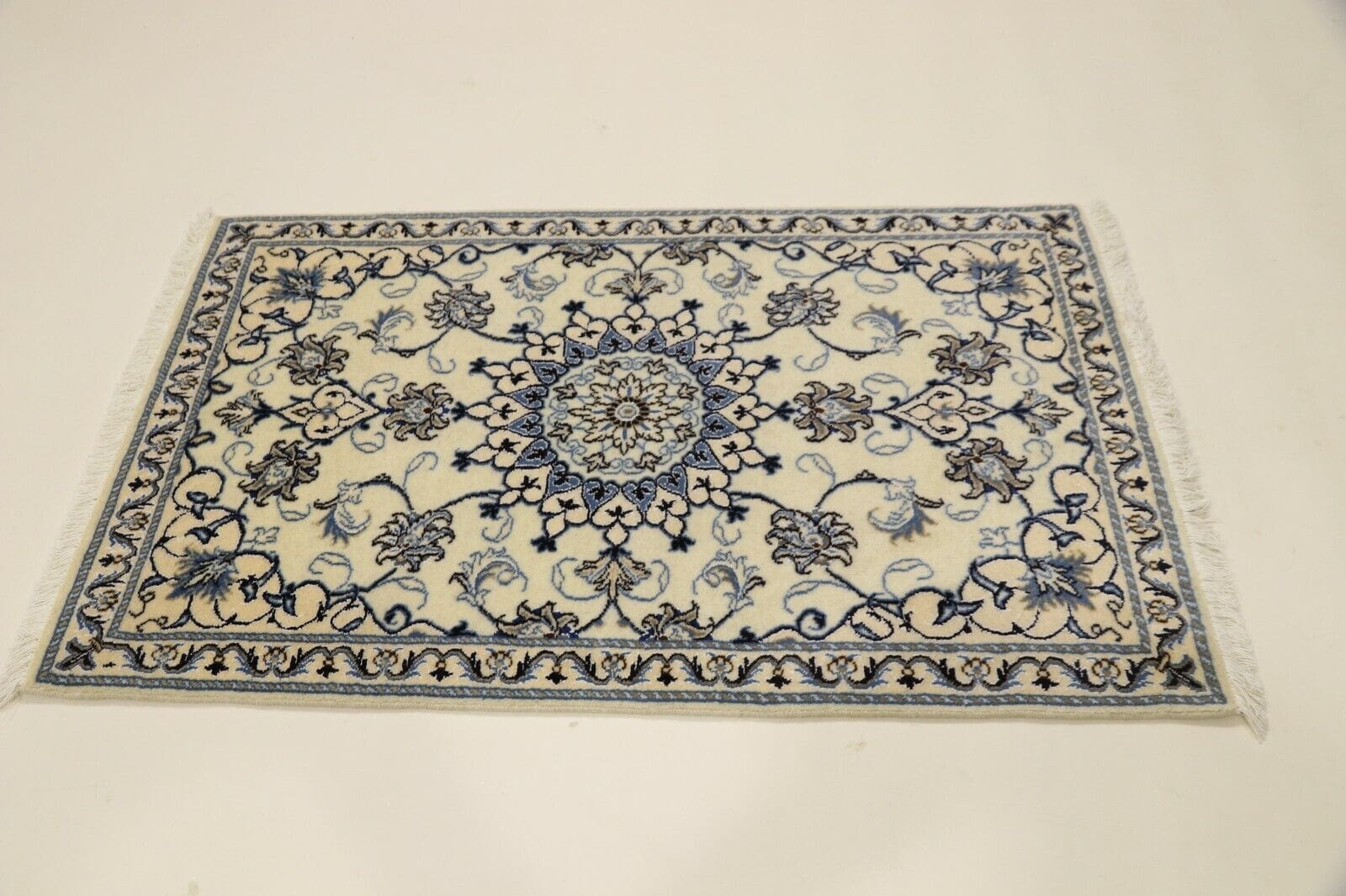 Wunderschöner Perserteppich Nain | Größe: 140 x 88 cm | Material: 95% Schurwolle, 5% Seide | Knotendichte: ca. 300.000 Knoten/m² | Zustand: Neu, sehr gut | Herkunft: Persien/Iran | Besonderheiten: Für Fußbodenheizung geeignet | Mustertyp: Orientalisch | Herstellungsart: 100% handgeknüpft | Florhöhe: 8 mm | Form: Rechteckig