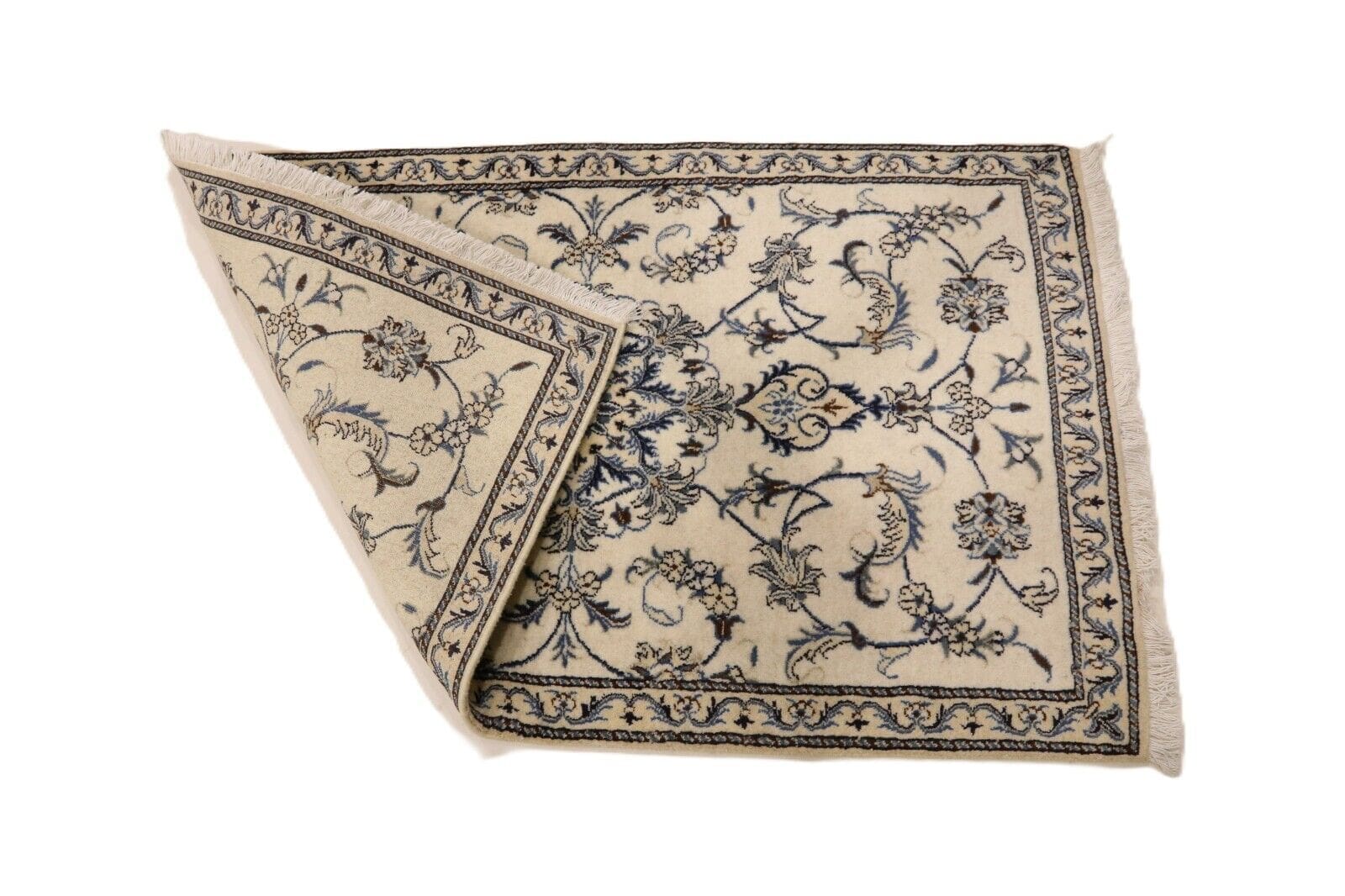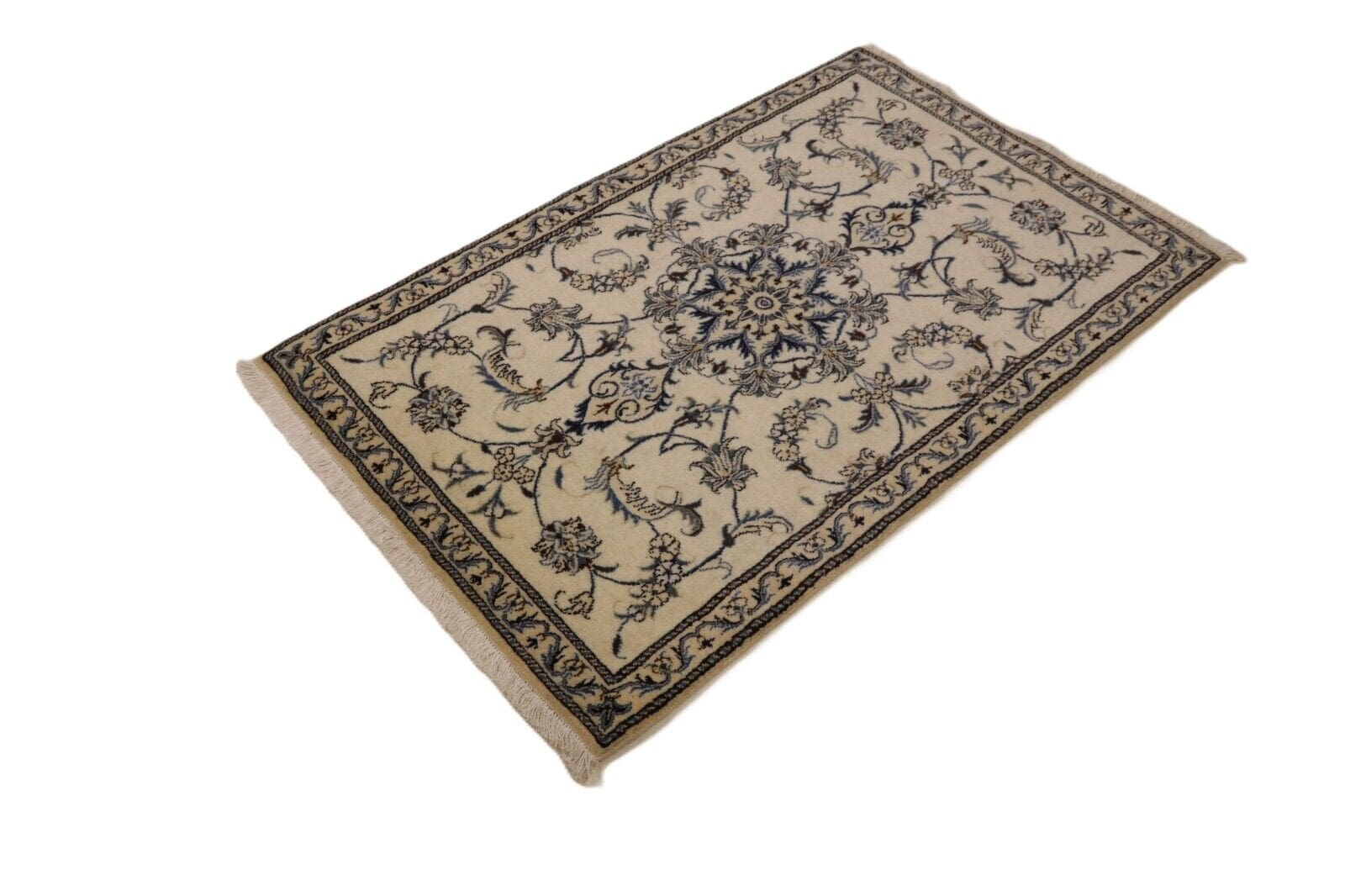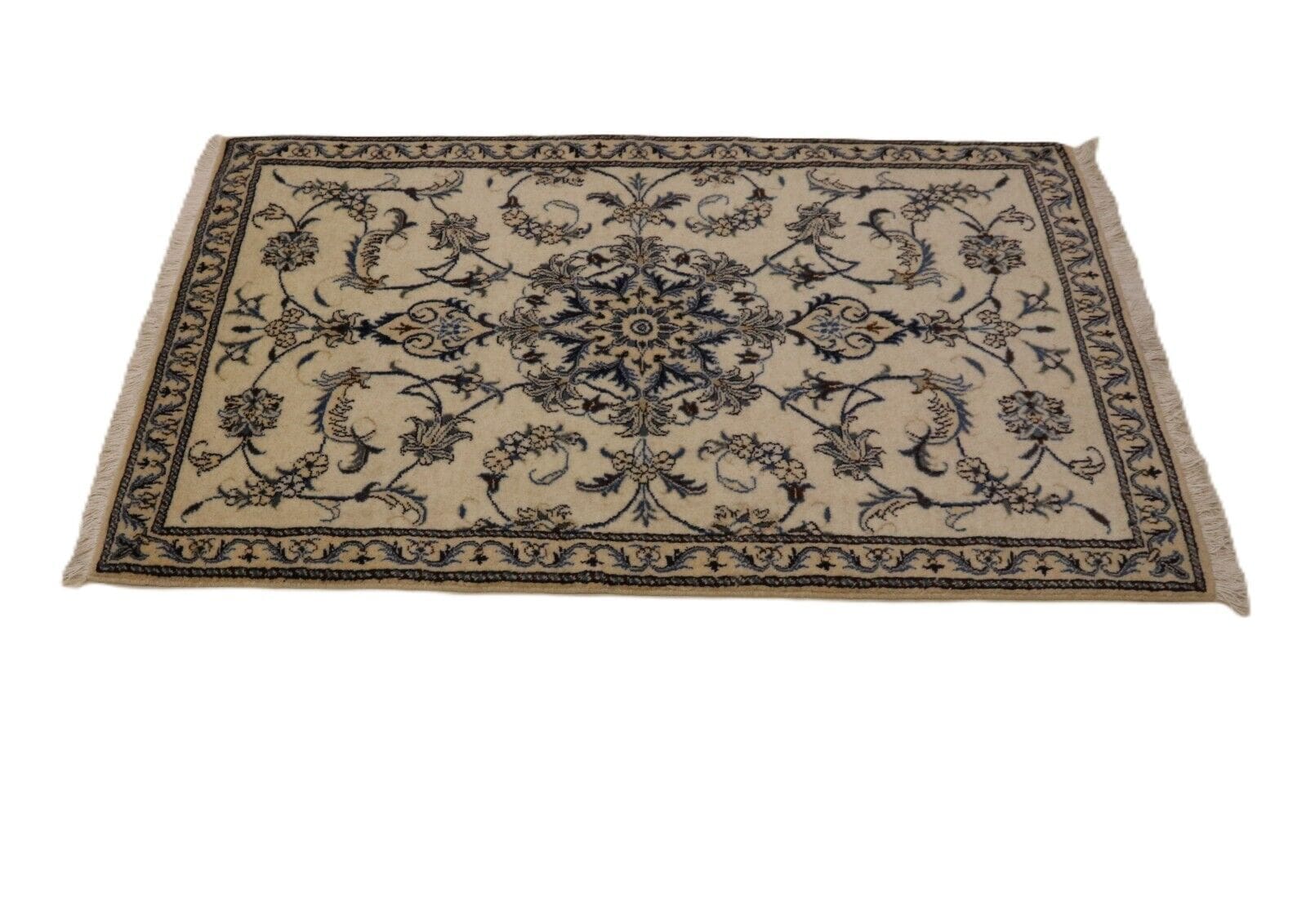 Orientteppich Nain | Handgeknüpft | Größe: 143 x 90 cm | Knotendichte: ca. 300.000 Knoten/m² | Material: 90% Schurwolle, 10% Seide, 100% Baumwolle | Zustand: Neu, sehr gut | Herkunft: Persien | Dicke: ca. 8 mm | Stil: Traditionell Orientalisch/Persisch | Besonders: Für Fußbodenheizung geeignet, haustierfreundlich