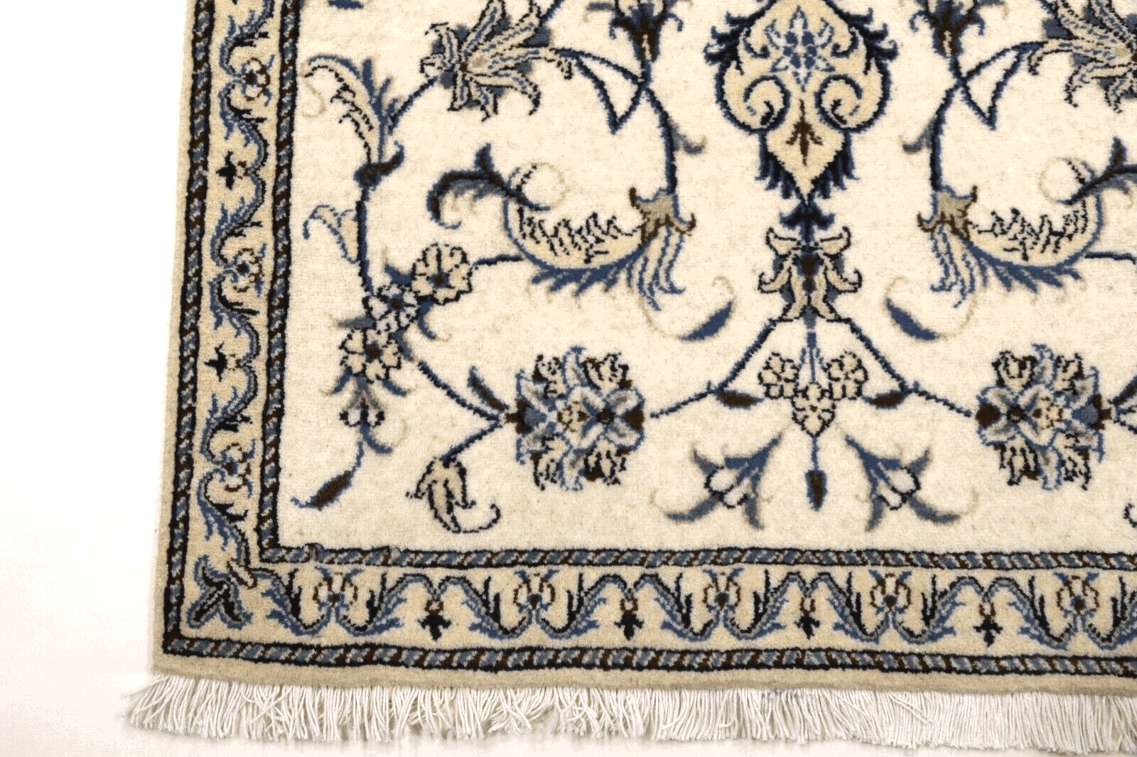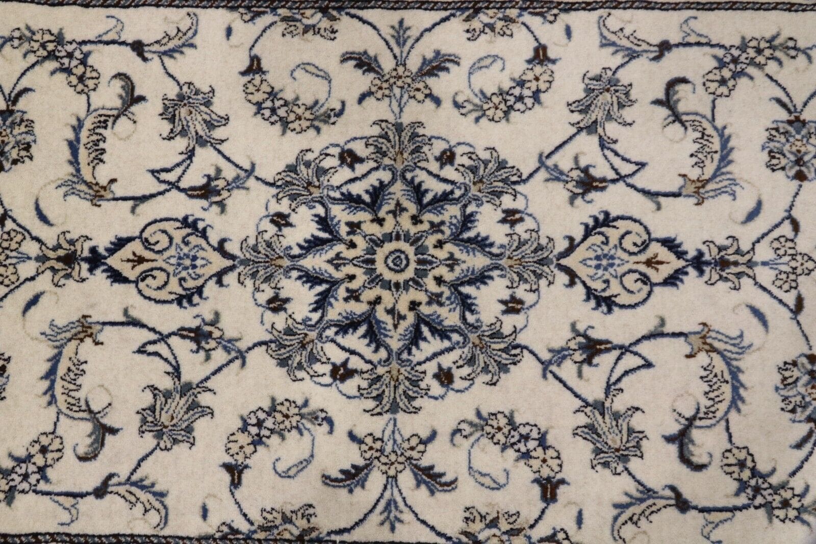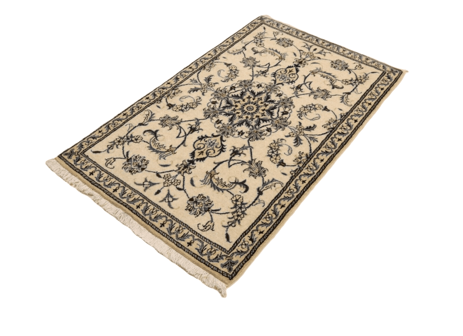 Orientteppich Nain | Handgeknüpft | Größe: 143 x 90 cm | Knotendichte: ca. 300.000 Knoten/m² | Material: 90% Schurwolle, 10% Seide, 100% Baumwolle | Zustand: Neu, sehr gut | Herkunft: Persien | Dicke: ca. 8 mm | Stil: Traditionell Orientalisch/Persisch | Besonders: Für Fußbodenheizung geeignet, haustierfreundlich