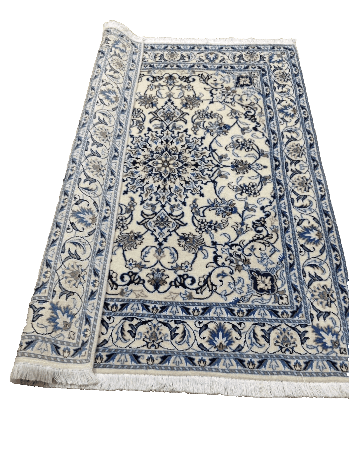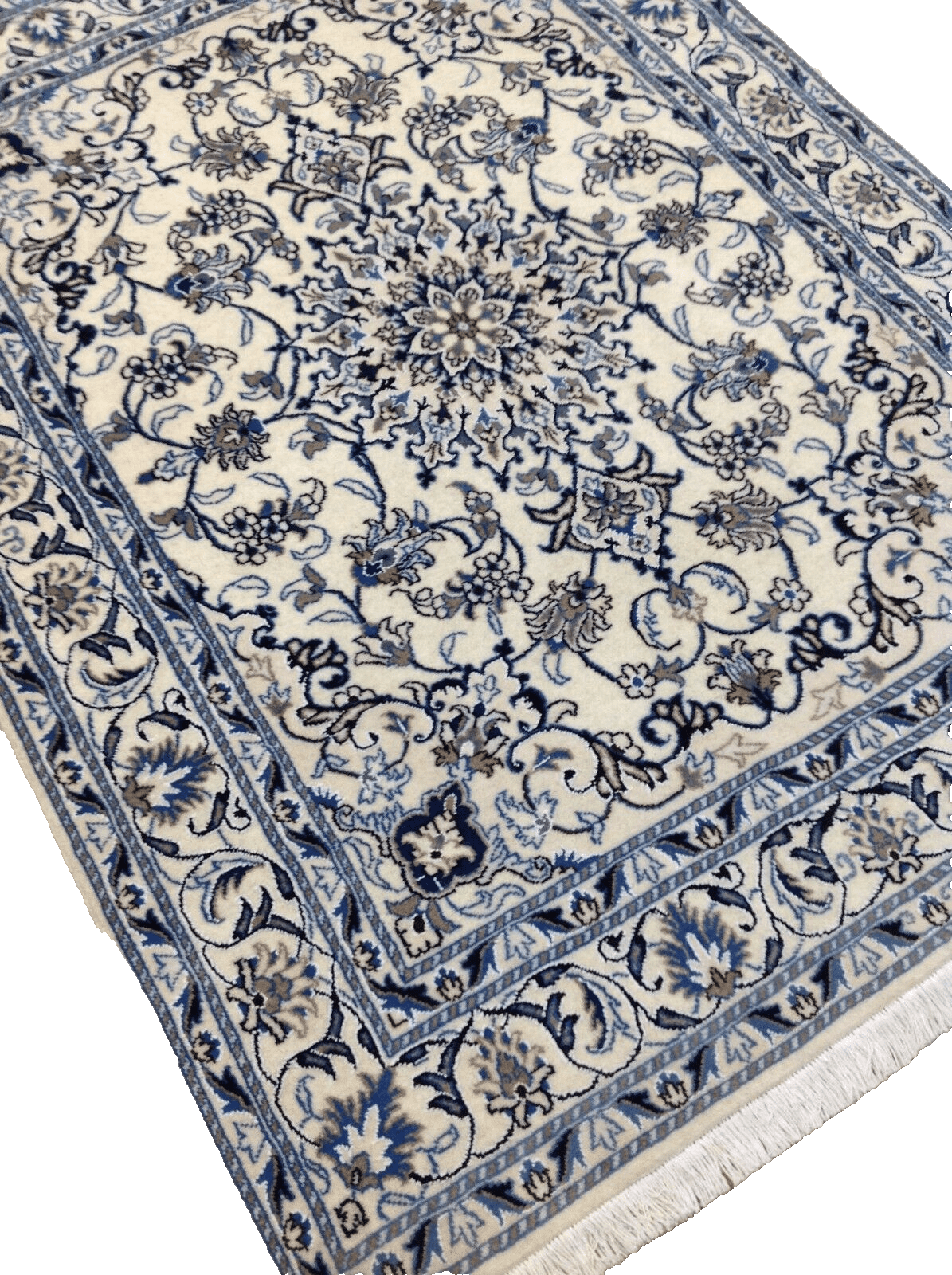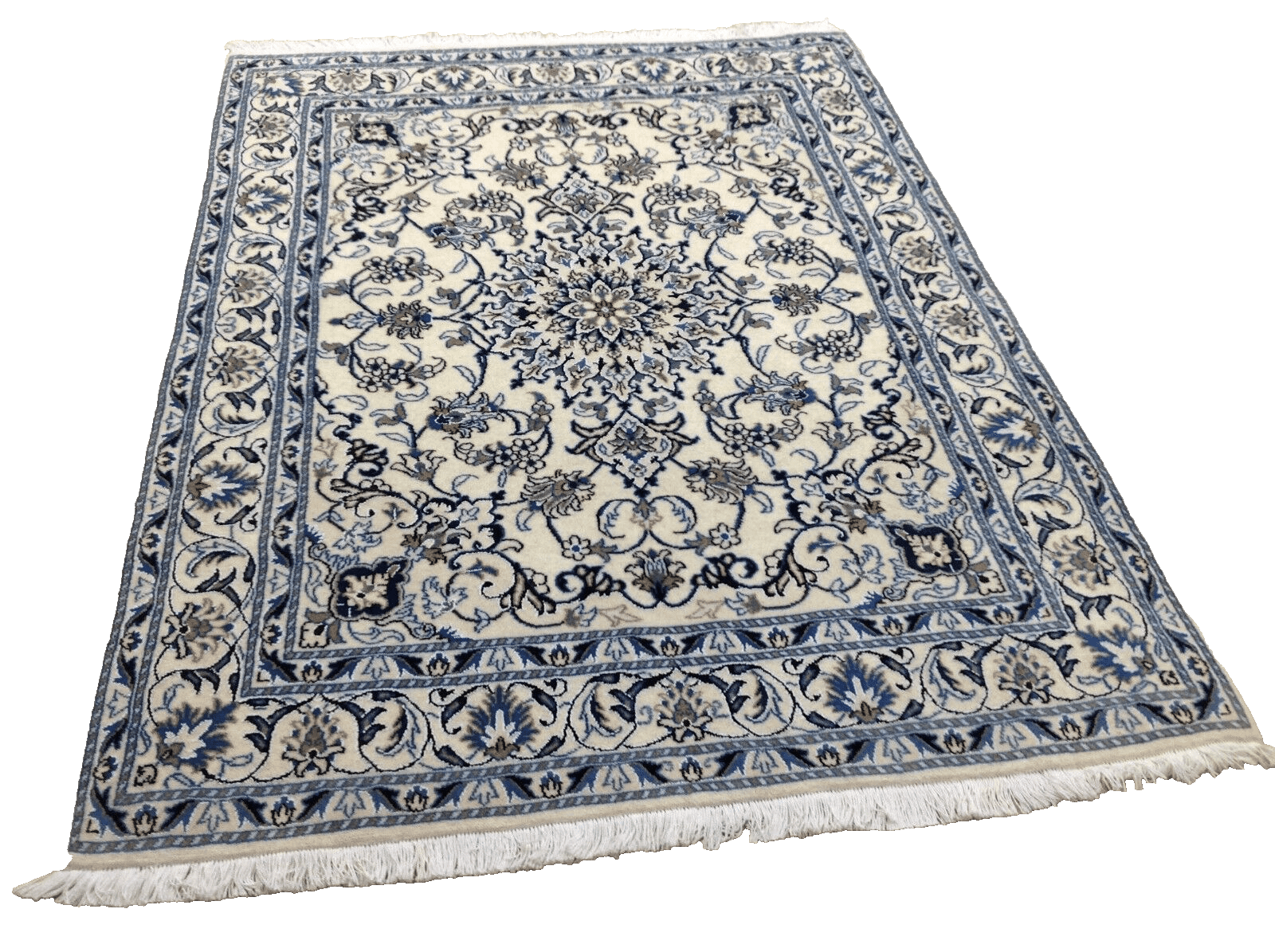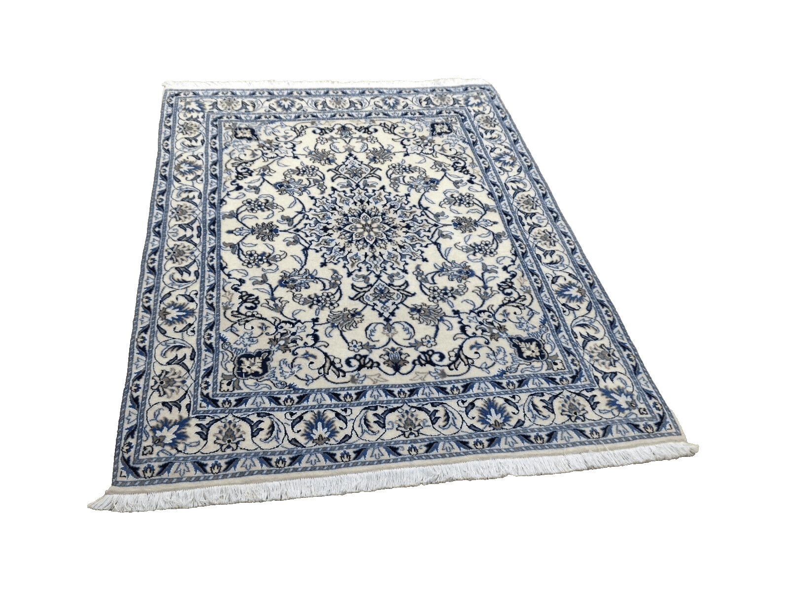Wunderschöner Perserteppich Nain | Handgeknüpft | Knotendichte: ca. 300.000 Knoten/m² | Material: 90% Schurwolle, 10% Seide | Größe: 203 x 150 cm | Zustand: Neu | Herkunft: Persien | Stil: Traditionell Orientalisch | Farbe: Weiß | Muster: Orientalisch | Ideal für verschiedene Räume