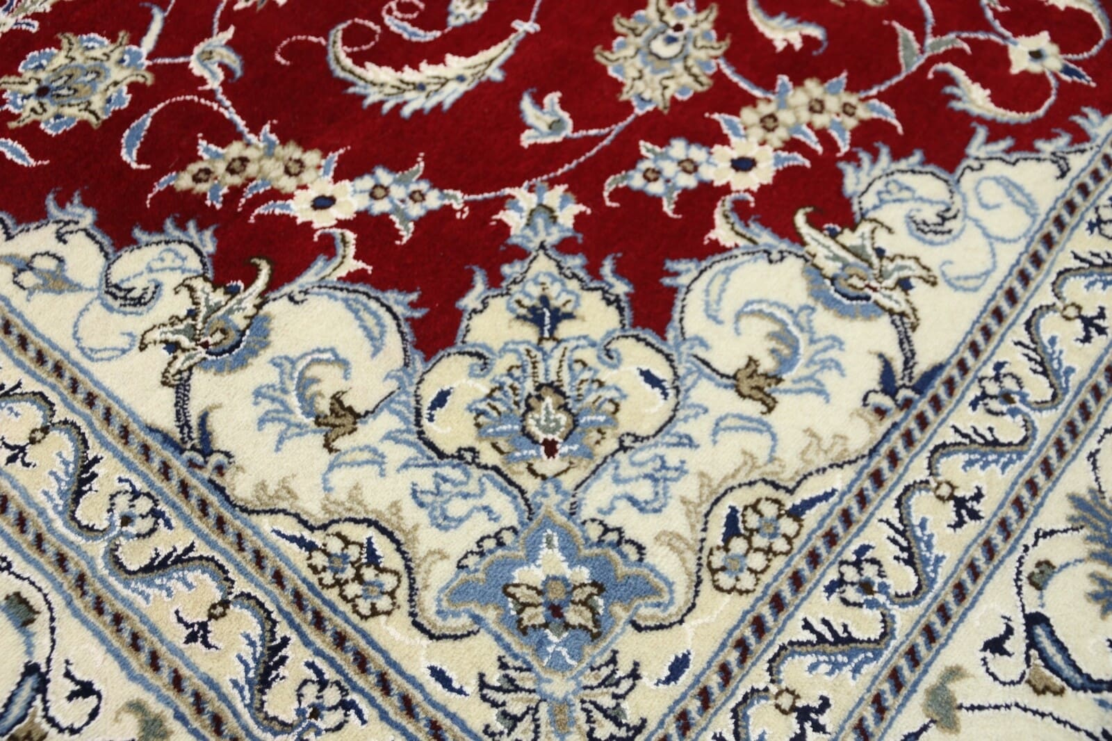 Wunderschöner persischer Teppich | Knotendichte: ca. 300.000 Knoten/m² | Material: 90% Schurwolle, 10% Seide | Größe: 292 x 198 cm | Zustand: Neu, sehr gut | Herkunft: Nain, Persien | Besonderheiten: Für Fußbodenheizung geeignet, haustierfreundlich | Stil: Traditionell orientalisch/persisch