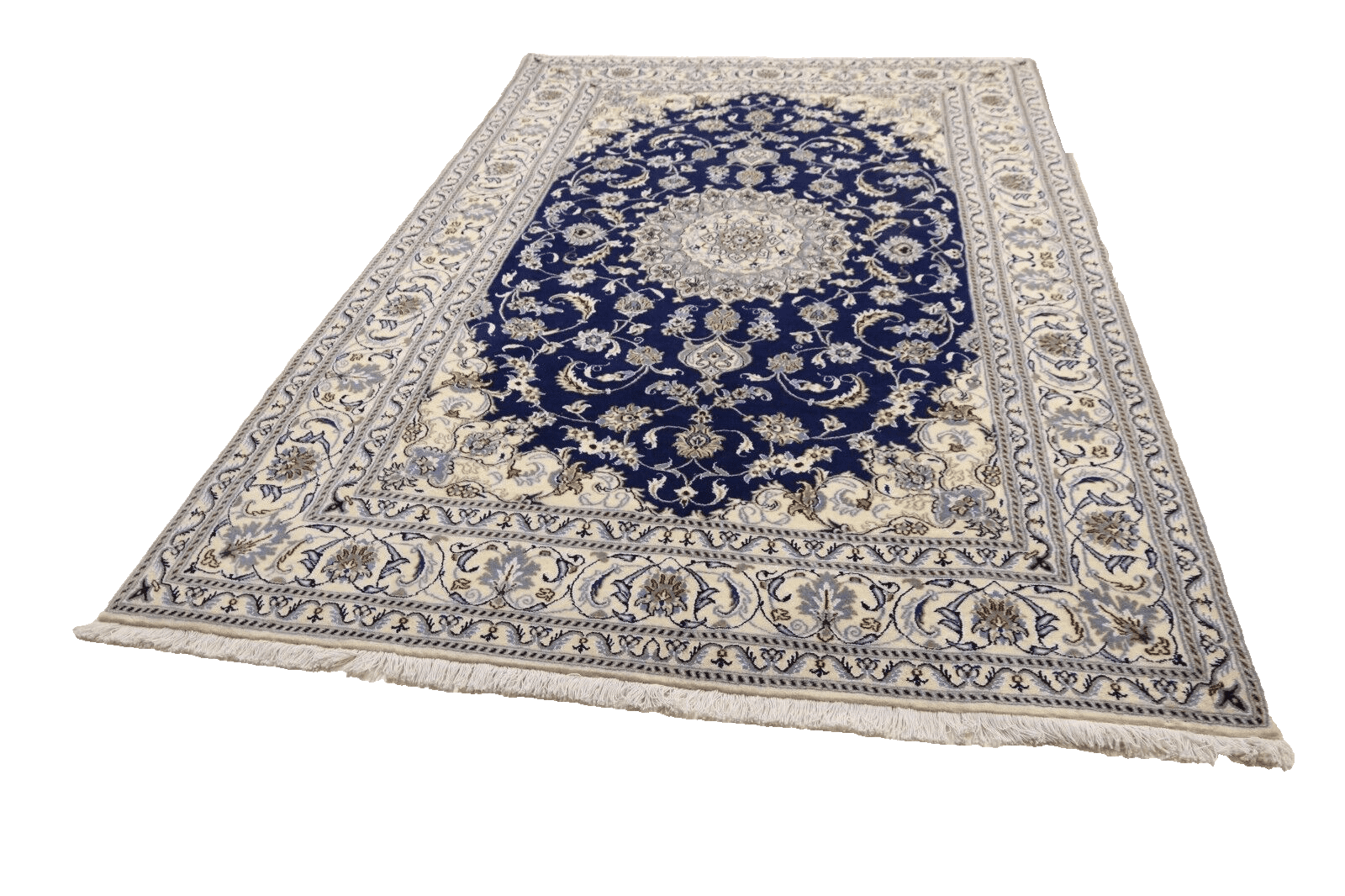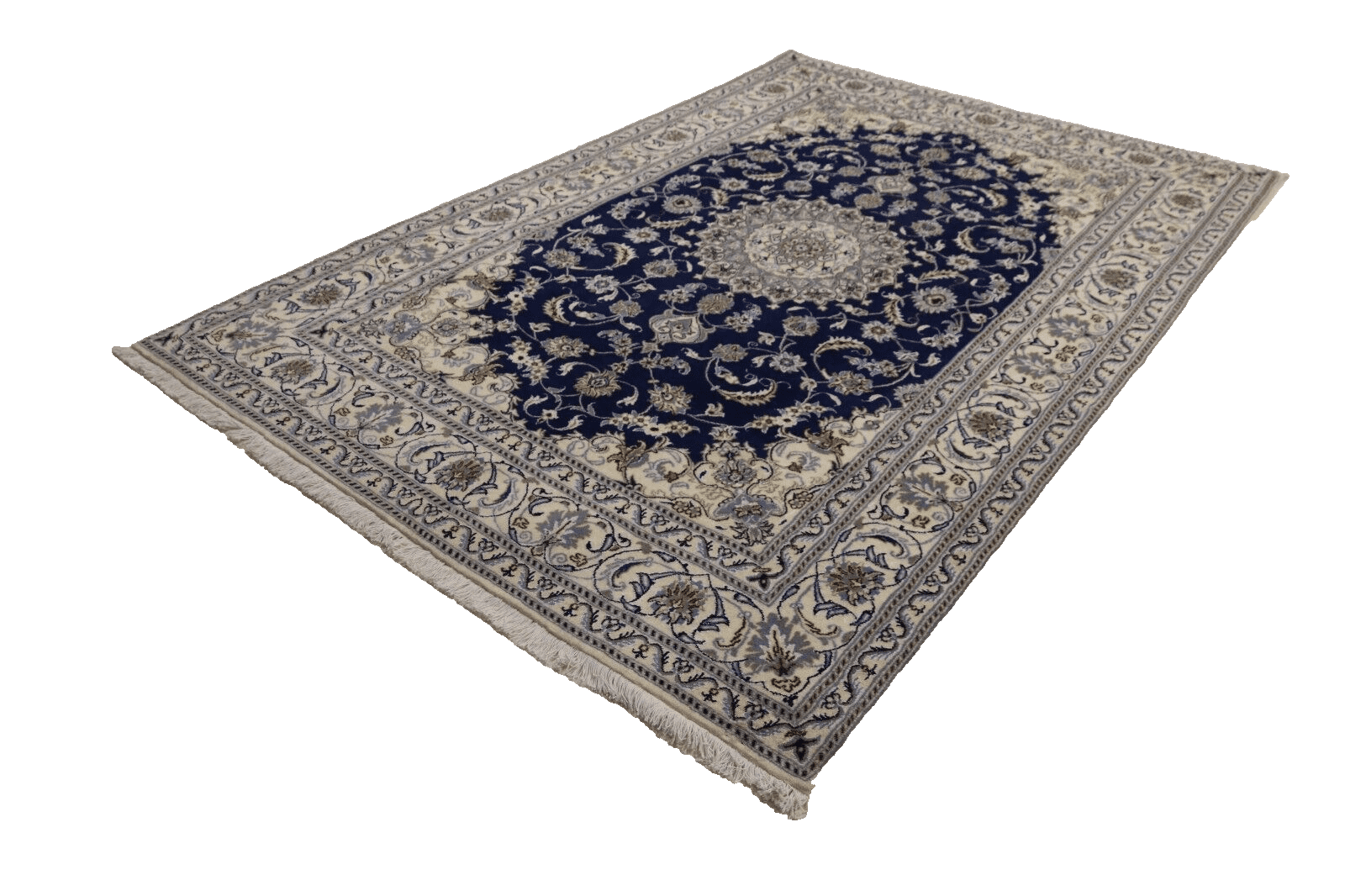 Wunderschöner Perserteppich Nain | Größe: 293 x 196 cm | Material: 90% Schurwolle, 10% Seide | Knotenzahl: ca. 300.000/m² | Zustand: Neu, sehr gut | Herkunft: Persien/Iran | Besonderheiten: Für Fußbodenheizung geeignet, haustierfreundlich | Dicke: ca. 9 mm | Stil: Traditionell Orientalisch/Persisch