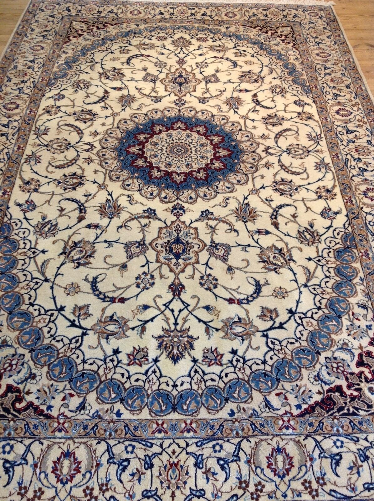 Zusammenfassend lässt sich sagen, dass dieser wunderschöne Perserteppich Nain nicht nur durch seine ästhetischen Eigenschaften besticht, sondern auch durch seine kulturelle Bedeutung und die hohe Handwerkskunst, die hinter seinem Design steckt.