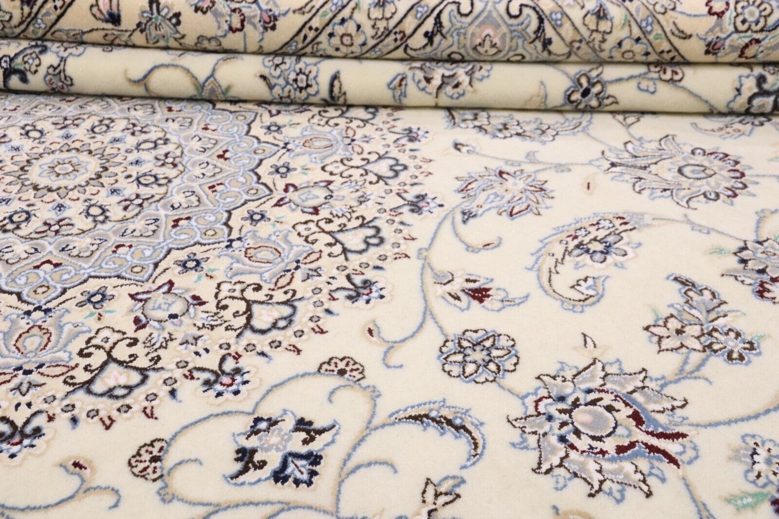 Wunderschöner Orientteppich Nain 9 La | Handgeknüpft | Größe: 356 x 250 cm | Knotendichte: ca. 500.000 Knoten/m² | Material: 80 % Schurwolle, 20 % Seide | Herkunft: Persien / Iran | Zustand: Neu, perfekt erhalten | Dicke: ca. 6 mm | Stil: Traditionell Orientalisch/Persisch | Für Fußbodenheizung geeignet | Unikat mit Teppich-Zertifikat