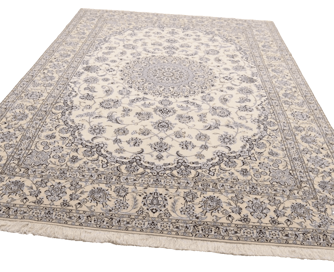 Der Wunderschöne Perserteppich Nain ist ein bemerkenswertes Kunstwerk, das die hohe Handwerkskunst und traditionsreiche Teppichknüpferei des Iran widerspiegelt. Mit einer beeindruckenden Knotenzahl von ca. 500.000 Knoten ist dieser Teppich nicht nur ein Möbelstück, sondern auch ein zeitloses Erbstück, das generationsübergreifend geschätzt wird.