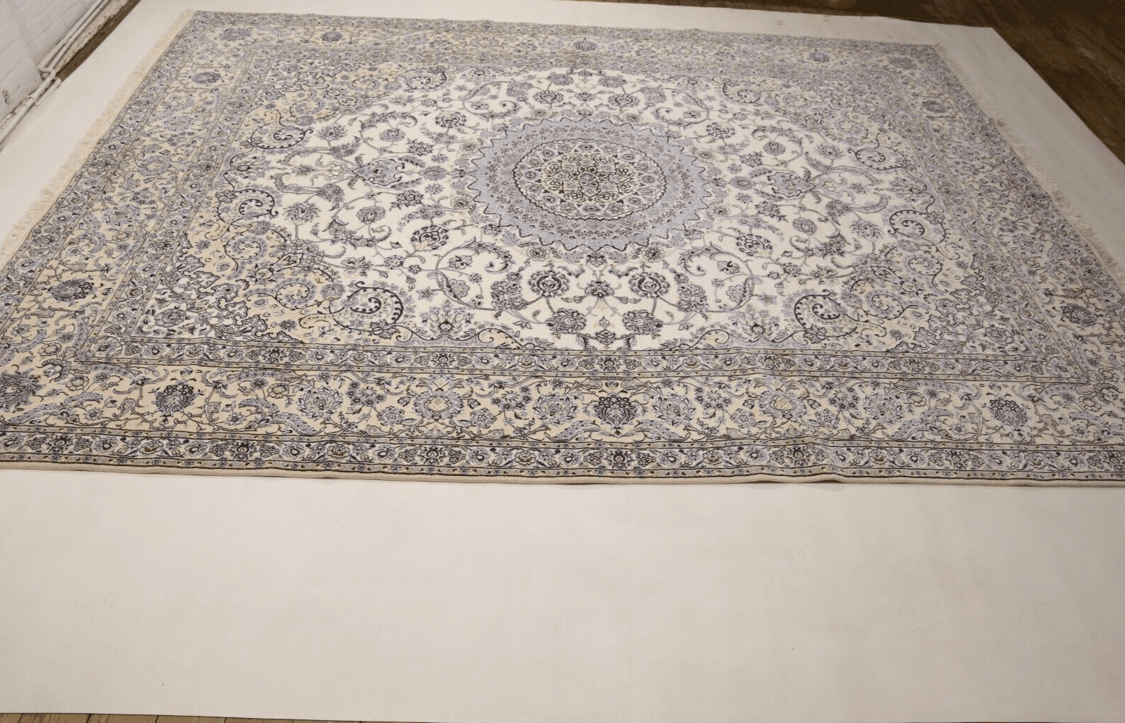 3681$Ursprünglicher Preis war: 3681$949$Aktueller Preis ist: 949$ In den Warenkorb(Verkauft) W1 (#203) ca. 345x245cm NEU Handgeknüpfter Nain Perserteppich mit Seide 12la