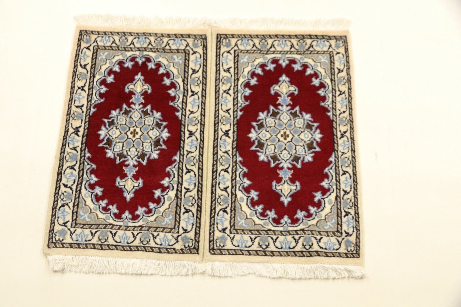 Handgeknüpfter Perserteppich Nain | Maße: 60 x 40 cm | Knotendichte: ca. 300.000 Knoten/m² | Material: 90% Schurwolle, 10% Seide | Zustand: Neu | Herkunft: Persien/Iran | Besonderheiten: Für Fußbodenheizung geeignet | Muster: Orientalisch | Farbe: Mehrfarbig