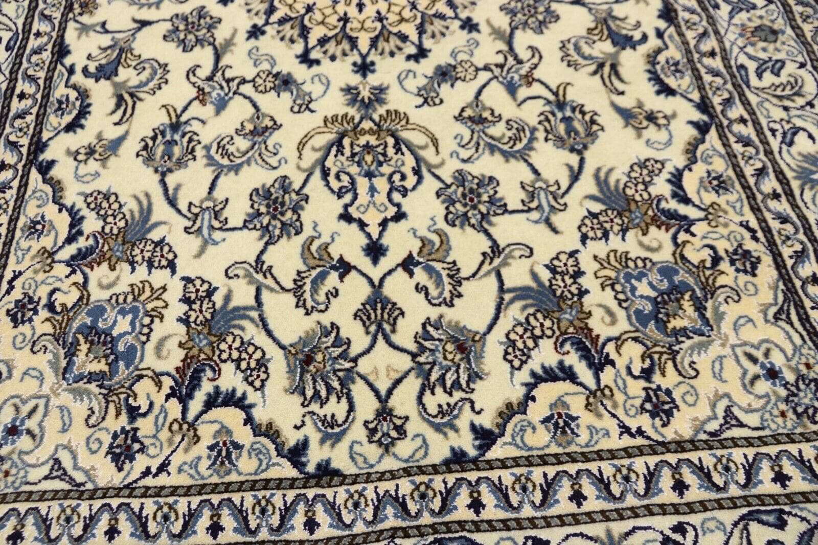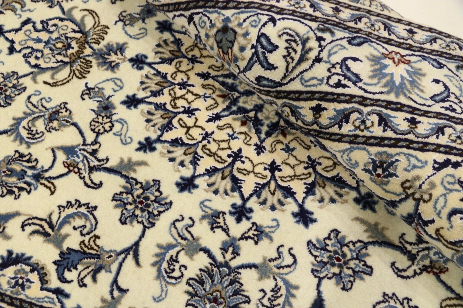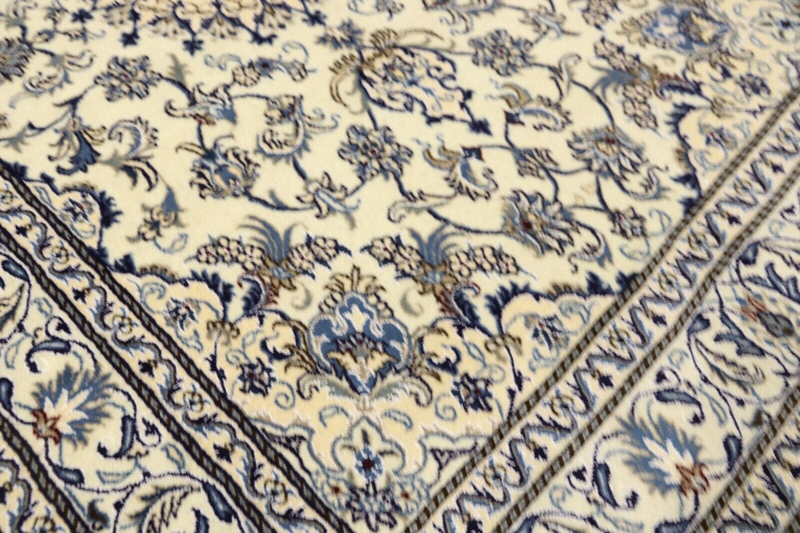 Orientteppich Super Nain | Größe: 248 x 165 cm | Material: 90% Schurwolle, 10% Seide | Knotendichte: ca. 300.000 Knoten/m² | Zustand: Neu, sehr gut | Herkunft: Persien | Dicke: ca. 8 mm | Handgeknüpft, Unikat | Für Fußbodenheizung geeignet | Stil: Traditionell Orientalisch/Persisch