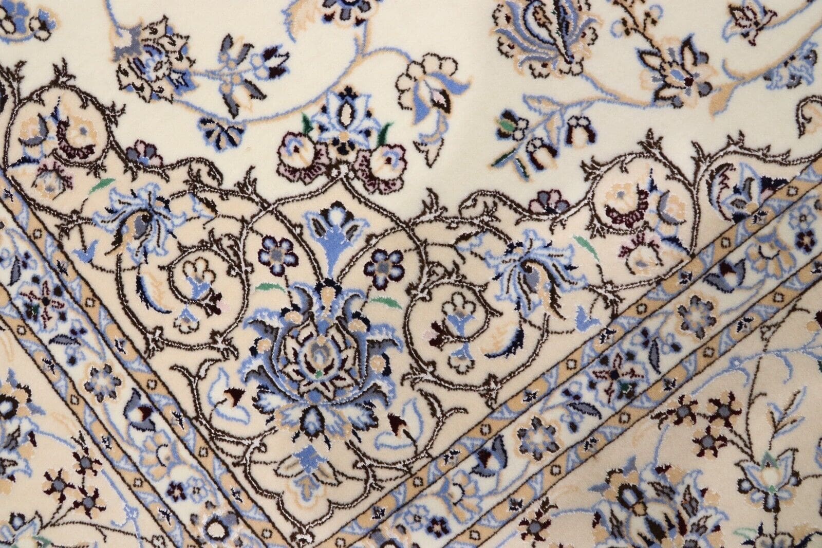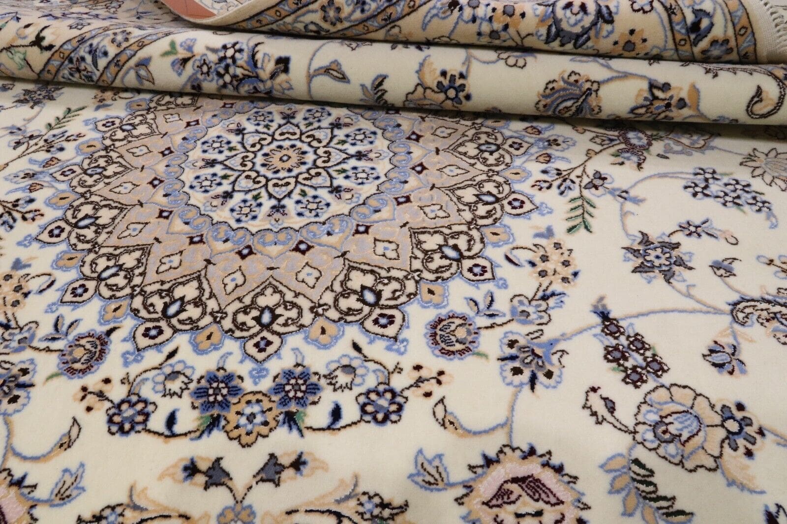 Ein weiterer bemerkenswerter Aspekt des Super Nain 6 La ist seine extrem hohe Knotendichte von ca. 1 Million Knoten pro Quadratmeter. Diese hohe Dichte sorgt nicht nur für die Langlebigkeit des Teppichs, sondern ermöglicht auch besonders feine und komplexe Muster, die selbst den anspruchsvollsten Kunstliebhaber beeindrucken. Darüber hinaus ist der Teppich sowohl für den Wohnbereich als auch für repräsentative Räume geeignet und fügt sich harmonisch in verschiedene Einrichtungsstile ein, von klassisch bis modern.
