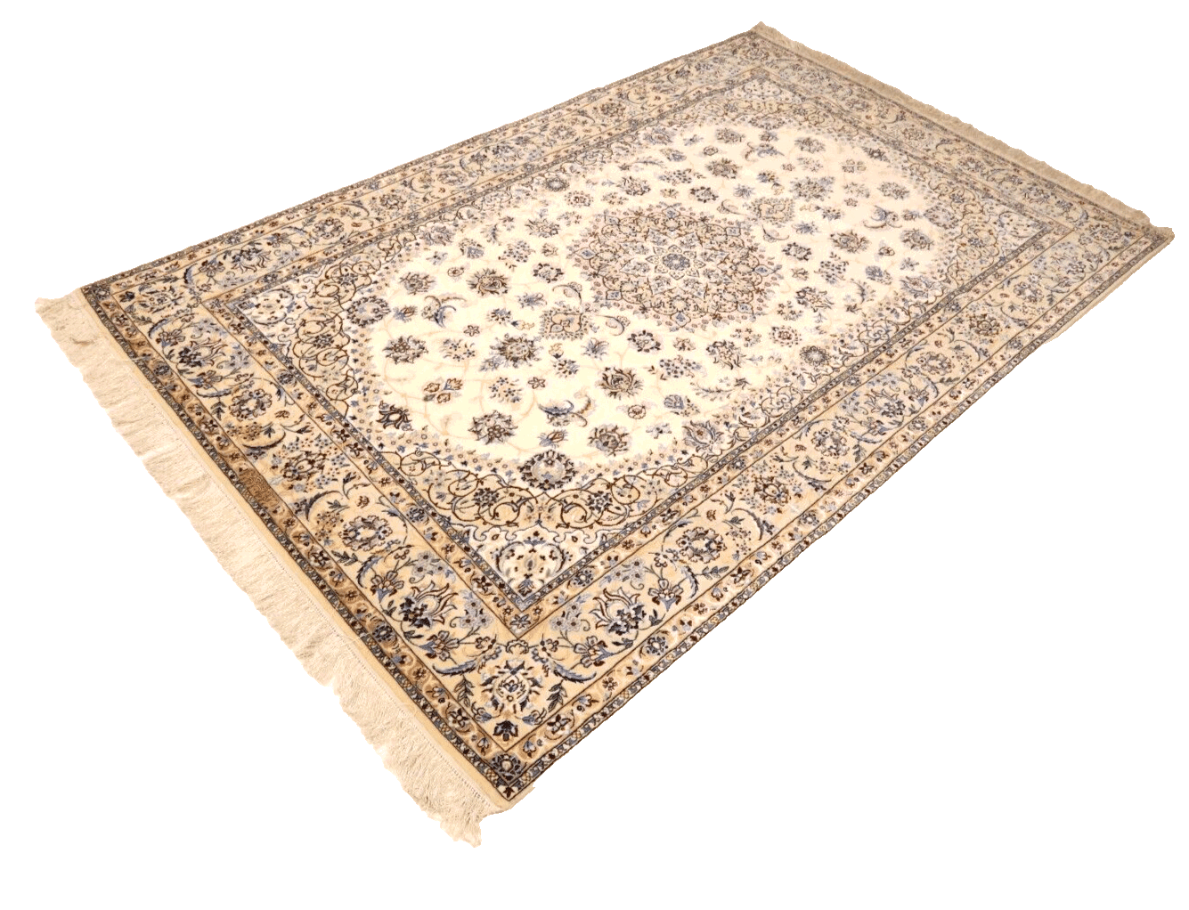 Der Super Nain Teppich stammt aus der Region Nain im Iran, die für ihre hochwertigen Perserteppiche weltberühmt ist. Nain ist für die feinen Materialien und die außergewöhnliche Verarbeitung bekannt. Die Teppichproduktion hier hat eine lange Tradition und wird von Generation zu Generation weitergegeben. Das Handwerk ist geprägt von präziser Knotentechnik, die es ermöglicht, sowohl florale als auch geometrische Muster in exquisiter Detailtreue zu schaffen.