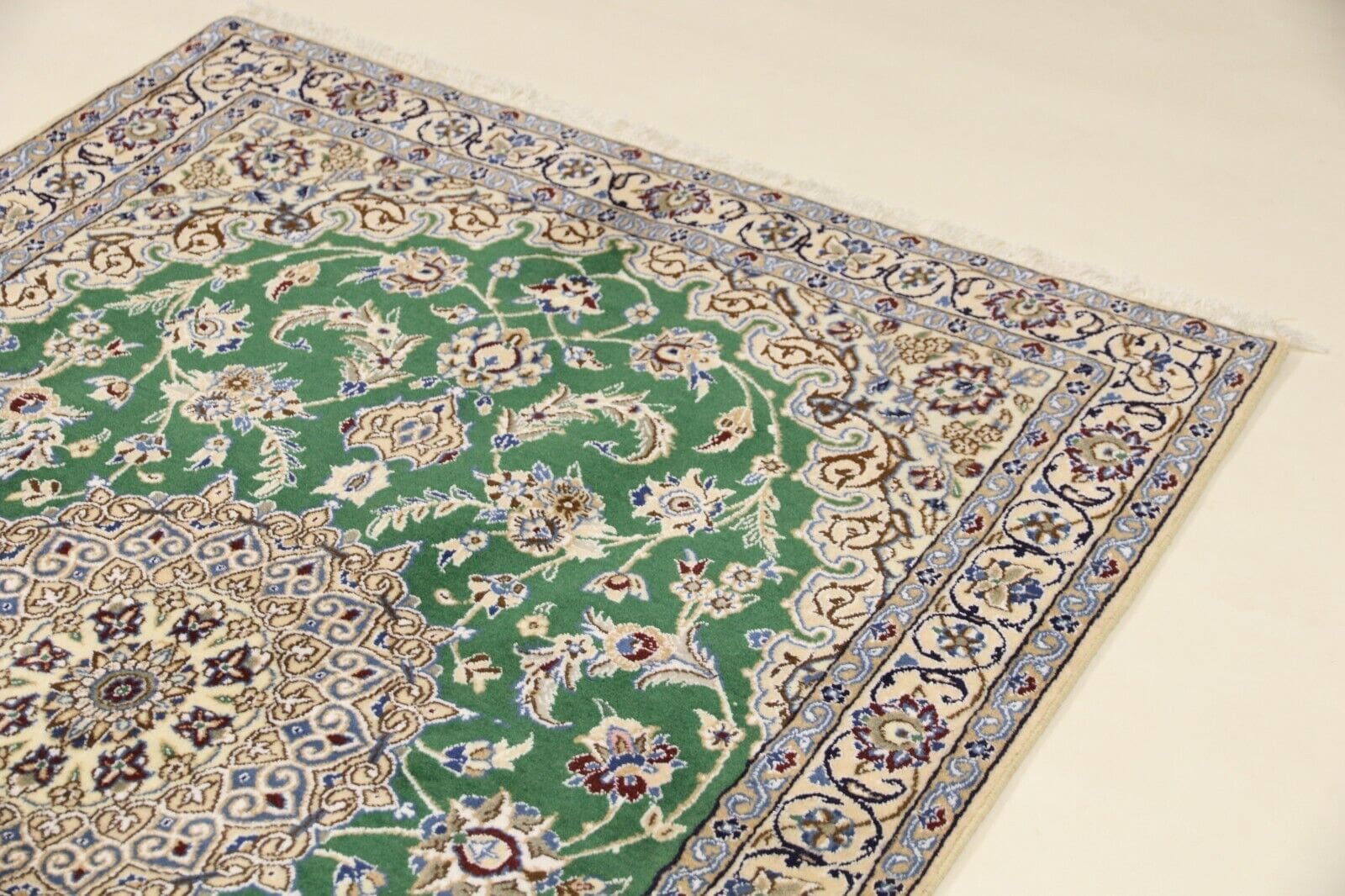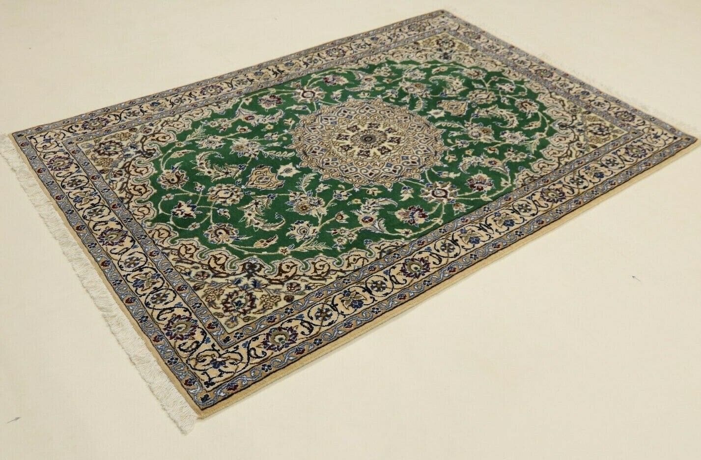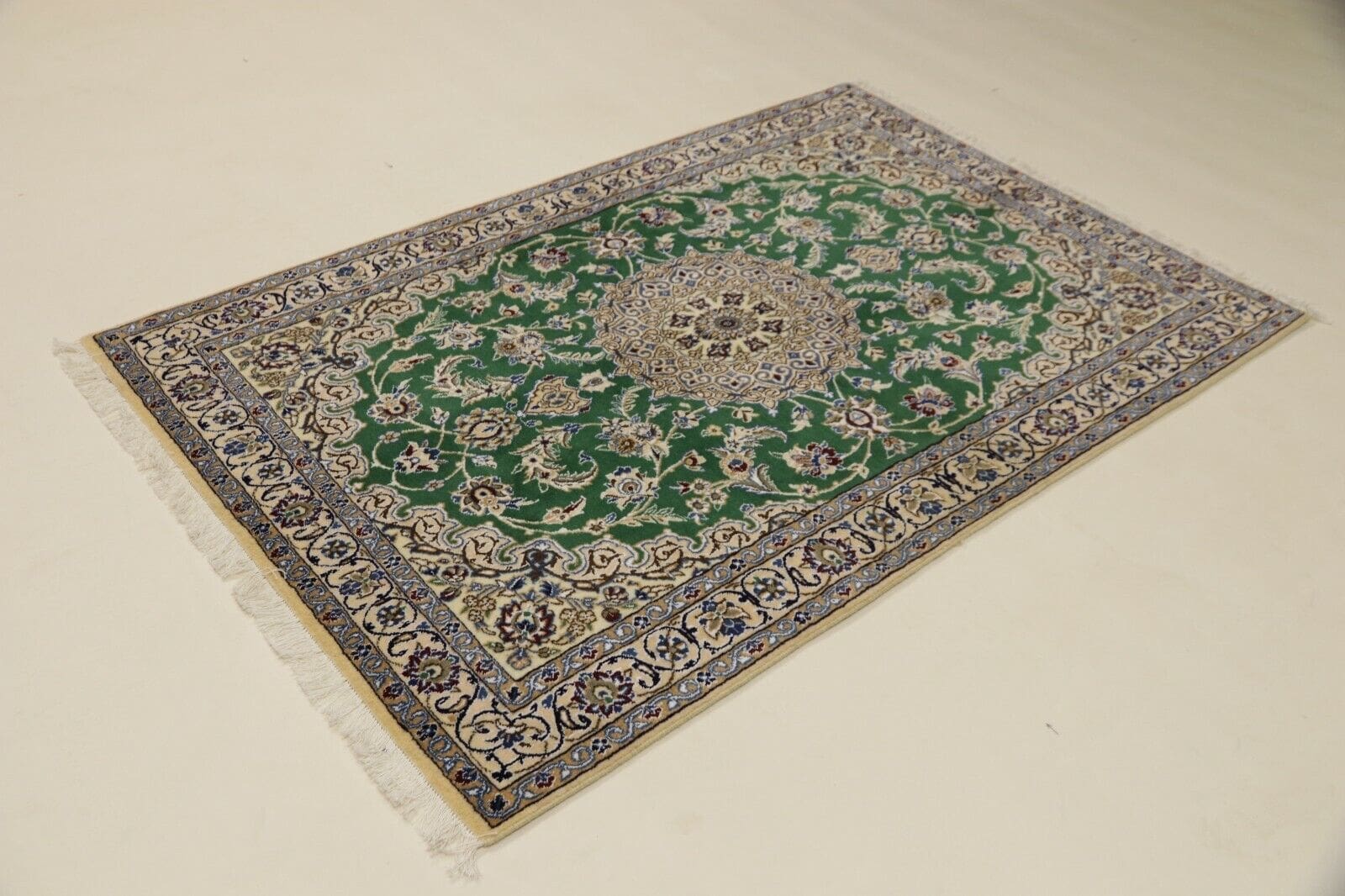 Wunderschöner Orientteppich Nain 9la | Größe: 178 x 120 cm | Knotendichte: ca. 500.000 Knoten/m² | Material: 90 % Schurwolle, 10 % Seide | Kette: 100 % Baumwolle | Zustand: Neu, sehr gut | Herkunft: Persien | Florhöhe: 6 mm | Stil: Traditionell Orientalisch/Persisch | Für Fußbodenheizung geeignet | Unikat/Einzelstück