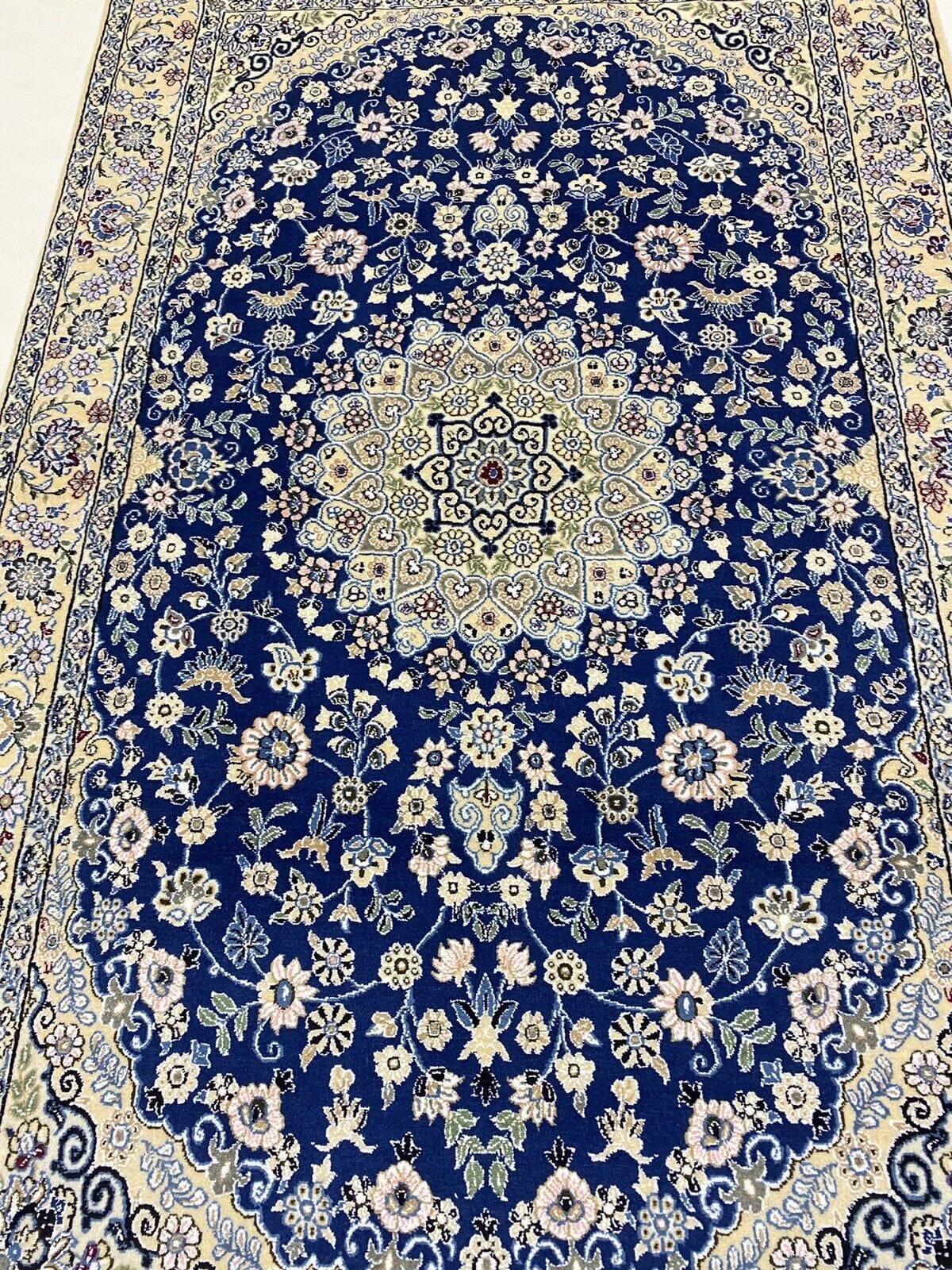 Wunderschöner Orientteppich Super Nain 9la | Größe: 216 x 134 cm | Knotendichte: ca. 500.000 Knoten/m² | Material: 90% Schurwolle, 10% Seide | Zustand: Neu, sehr gut | Herkunft: Persien | Dicke: 8 mm | Handgeknüpft | Für Fußbodenheizung geeignet | Haustierfreundlich | Stil: Traditionell Orientalisch/Persisch