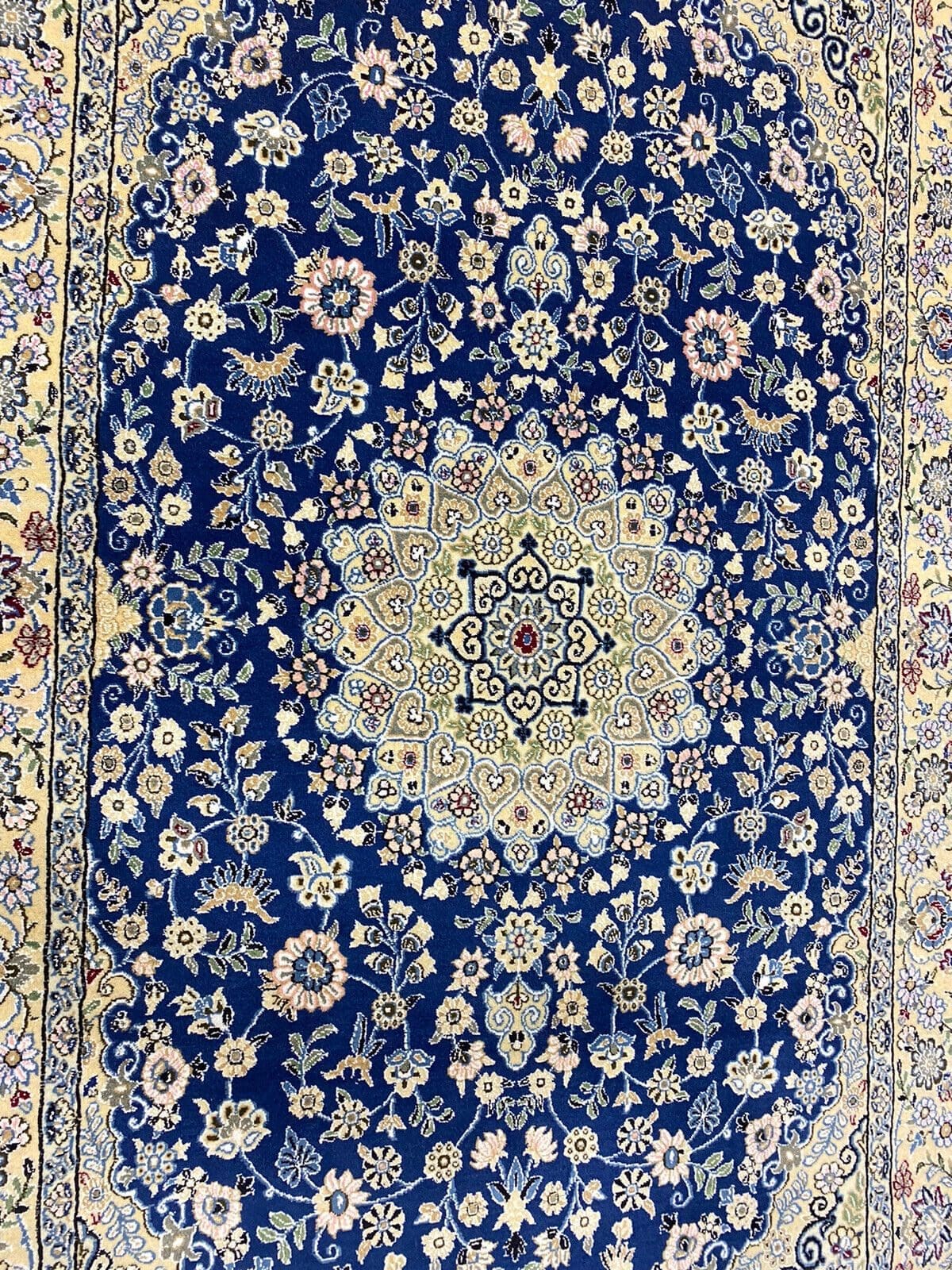 Wunderschöner Perserteppich Super Nain 9 la, 216 x 134 cm, ca. 500.000 Knoten/m², 90% Schurwolle, 10% Seide, sehr gut/Perfekt, handgeknüpft