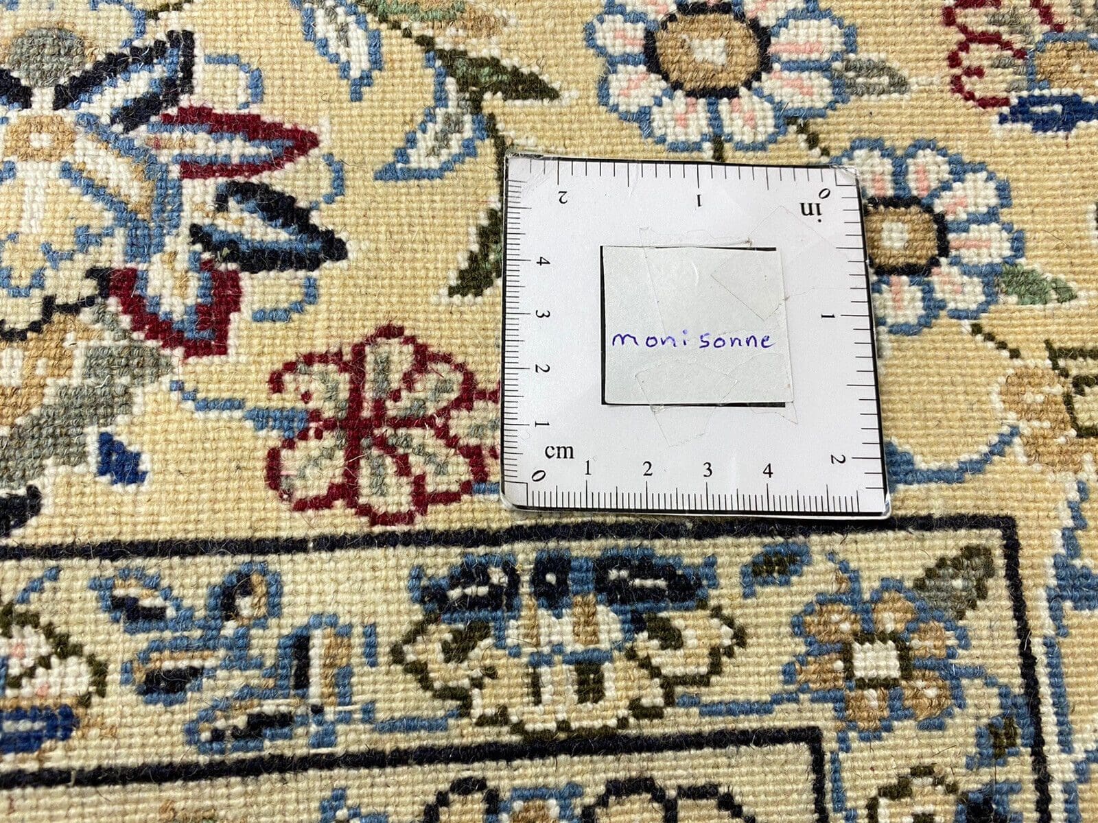 Ein herausragendes Merkmal dieses Teppichs ist seine Knotendichte von ca. 500.000 Knoten/m², die für eine besondere Stabilität und Langlebigkeit sorgt. Dieser Teppich ist in einem sehr guten bis perfekten Zustand und wurde mit viel Liebe zum Detail handgeknüpft. Jedes Stück ist einzigartig und spiegelt die Fähigkeiten der Handwerker wider, die über Generationen hinweg ihr Wissen und ihre Techniken weitergegeben haben. Der Super Nain 9 la ist nicht nur ein dekoratives Element, sondern auch eine wertvolle Investition in Kunst und Handwerk.