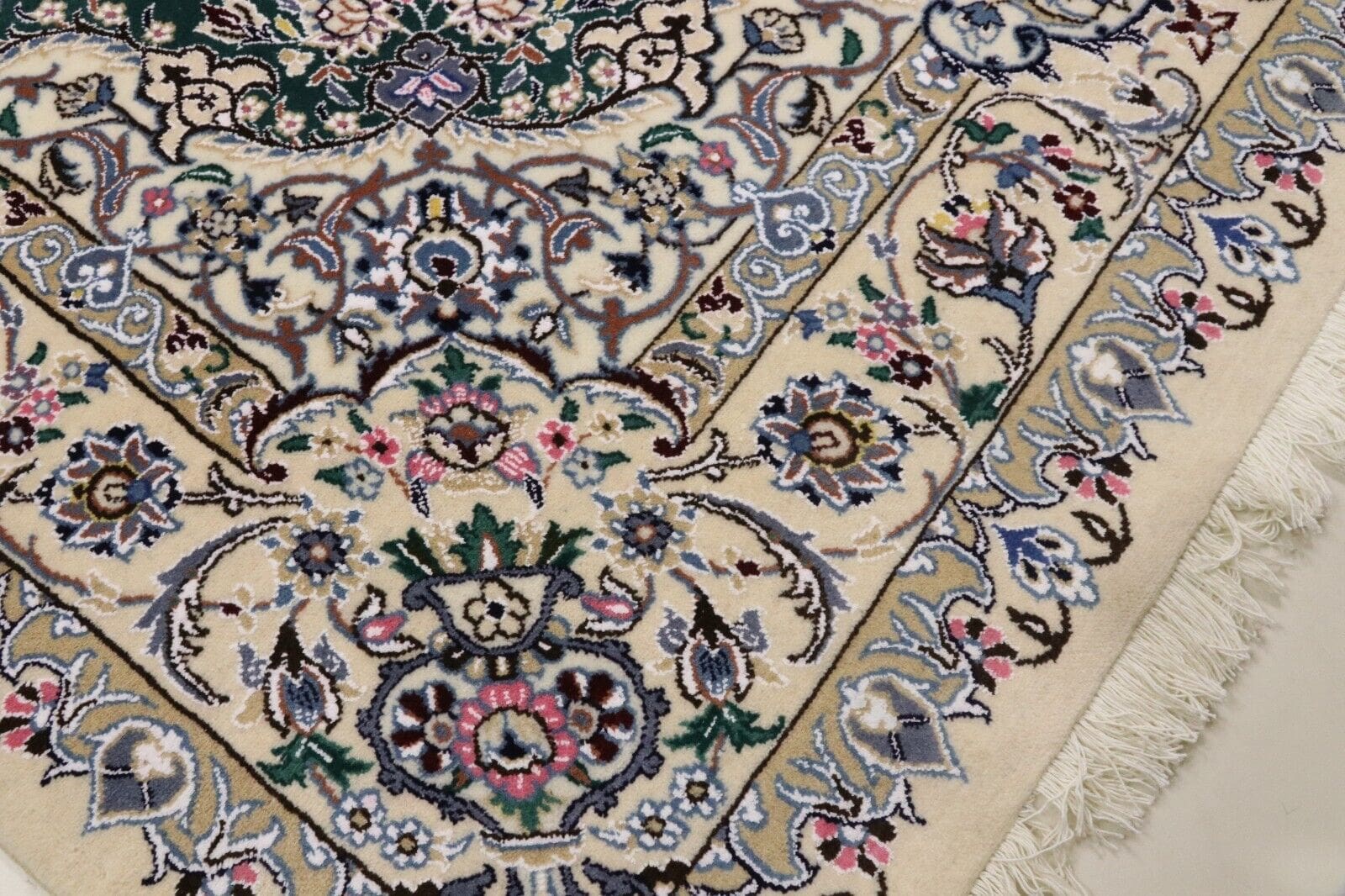 Handgeknüpfter Super Nain 9 La Teppich | Größe: 257 x 158 cm | Knotendichte: ca. 500.000 Knoten/m² | Material: 90% Schurwolle, 10% Seide | Kette: 100% Baumwolle | Zustand: Neu, sehr gut | Herkunft: Persien/Iran | Muster: Orientalisch | Dicke: ca. 8 mm | Für Fußbodenheizung geeignet | Haustierfreundlich