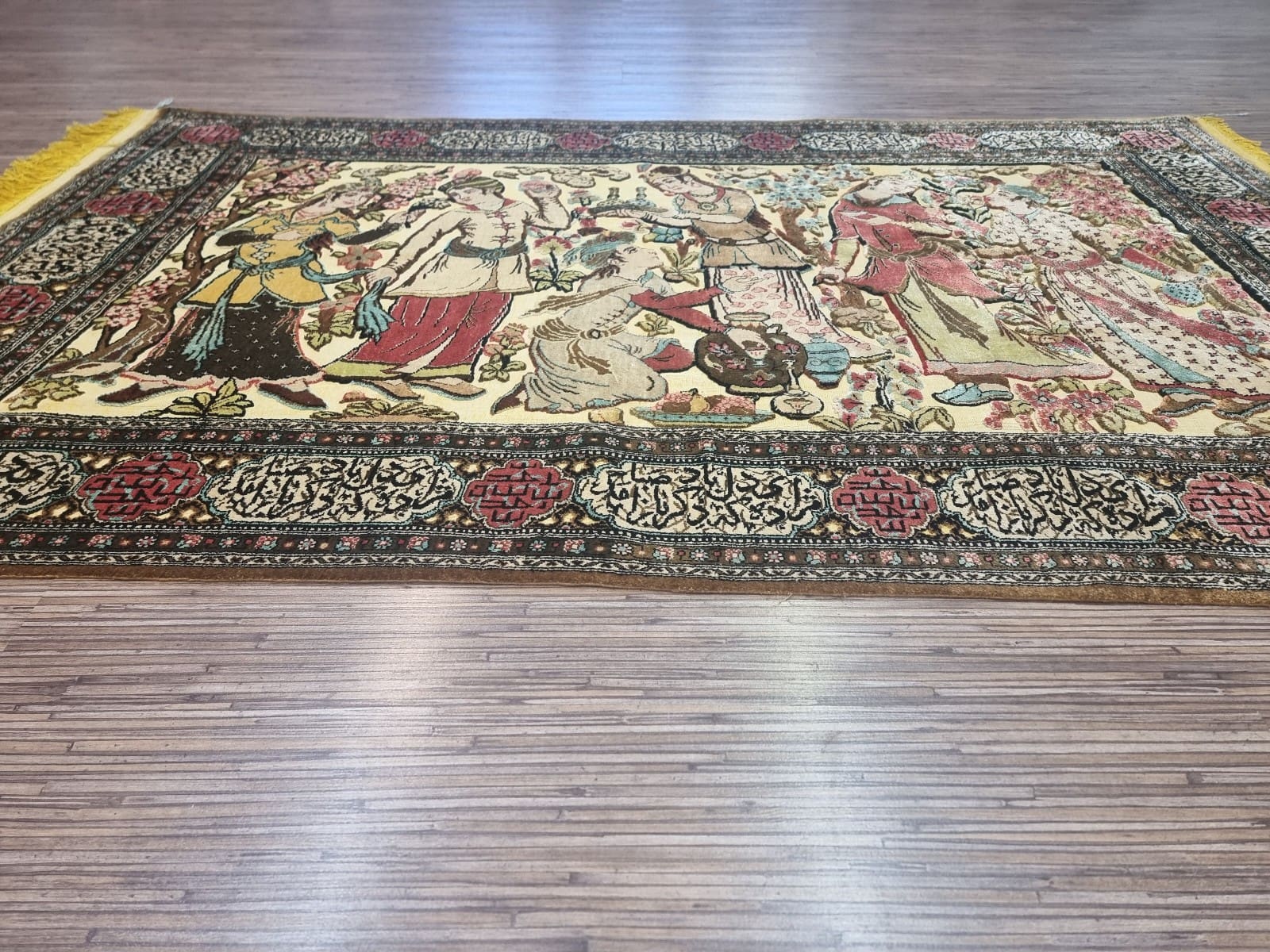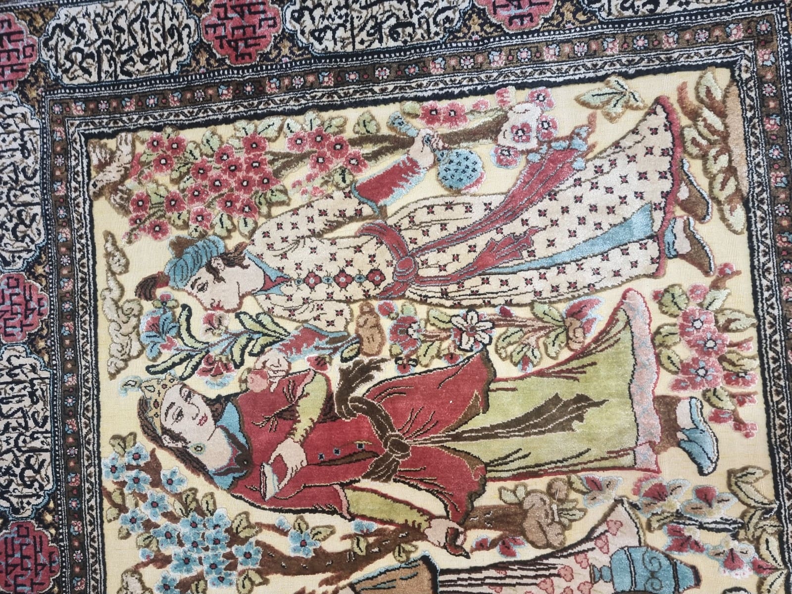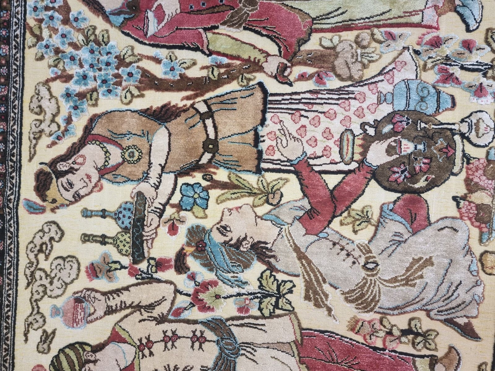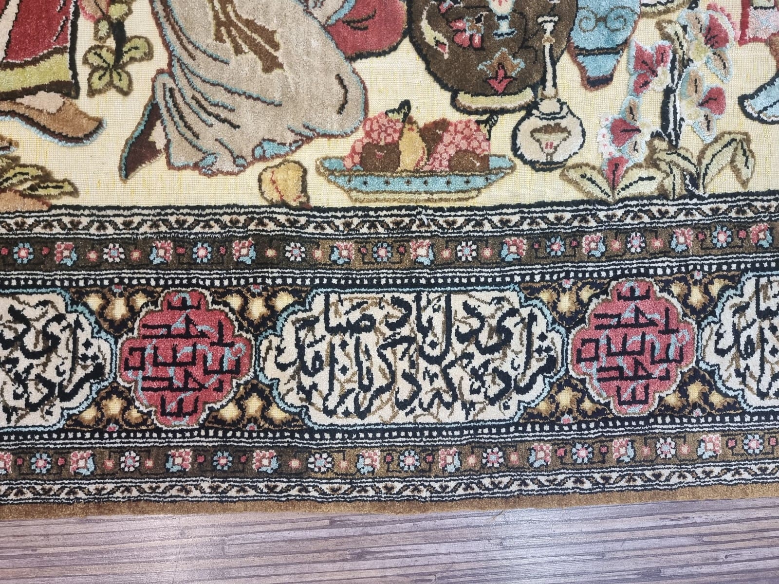 Original persischer Ghom Teppich | Knotendichte: ca. 600.000 Knoten/m² | Material: 100% Seide | Größe: 168×106 cm | Zustand: Neuwertig, nur als Wandteppich genutzt | Herkunft: Persien | Handgeknüpft und signiert | Stil: Orientalisch | Farbe: Siehe Bilder