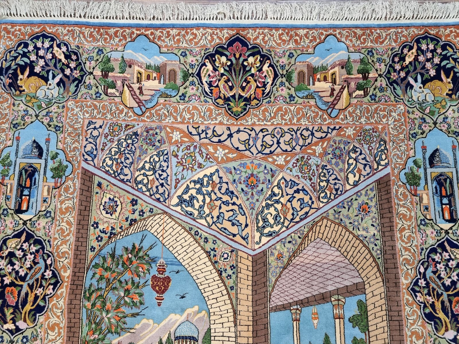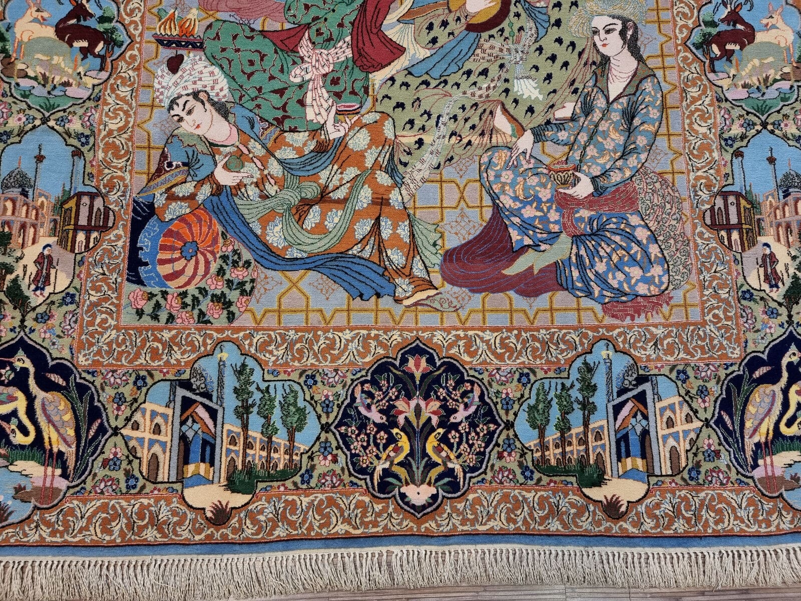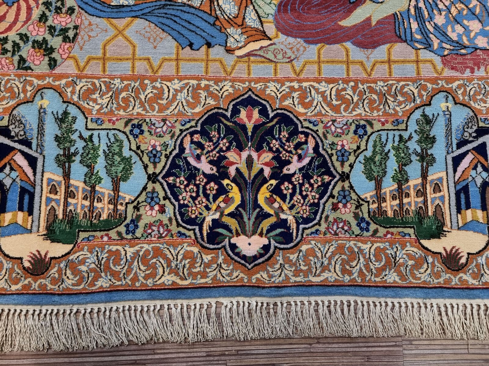 Dieser Teppich stammt aus Isfahan, einer der bekanntesten Teppichmacher-Städte im Iran. Isfahan ist berühmt für seine vielfältigen und kunstvollen Teppichdesigns, die oft komplizierte florale und geometrische Muster aufweisen, die die Schönheit und den Reichtum der persischen Kultur widerspiegeln. Die Tradition des Teppichknüpfens in Isfahan hat eine jahrhundertelange Geschichte und gilt als eine der besten in der Welt. Die Teppiche sind nicht nur Ganzstücke zum Dekorieren, sondern auch Ausdruck von Kunst und Handwerkskunst, die über Generationen hinweg perfektioniert wurde.