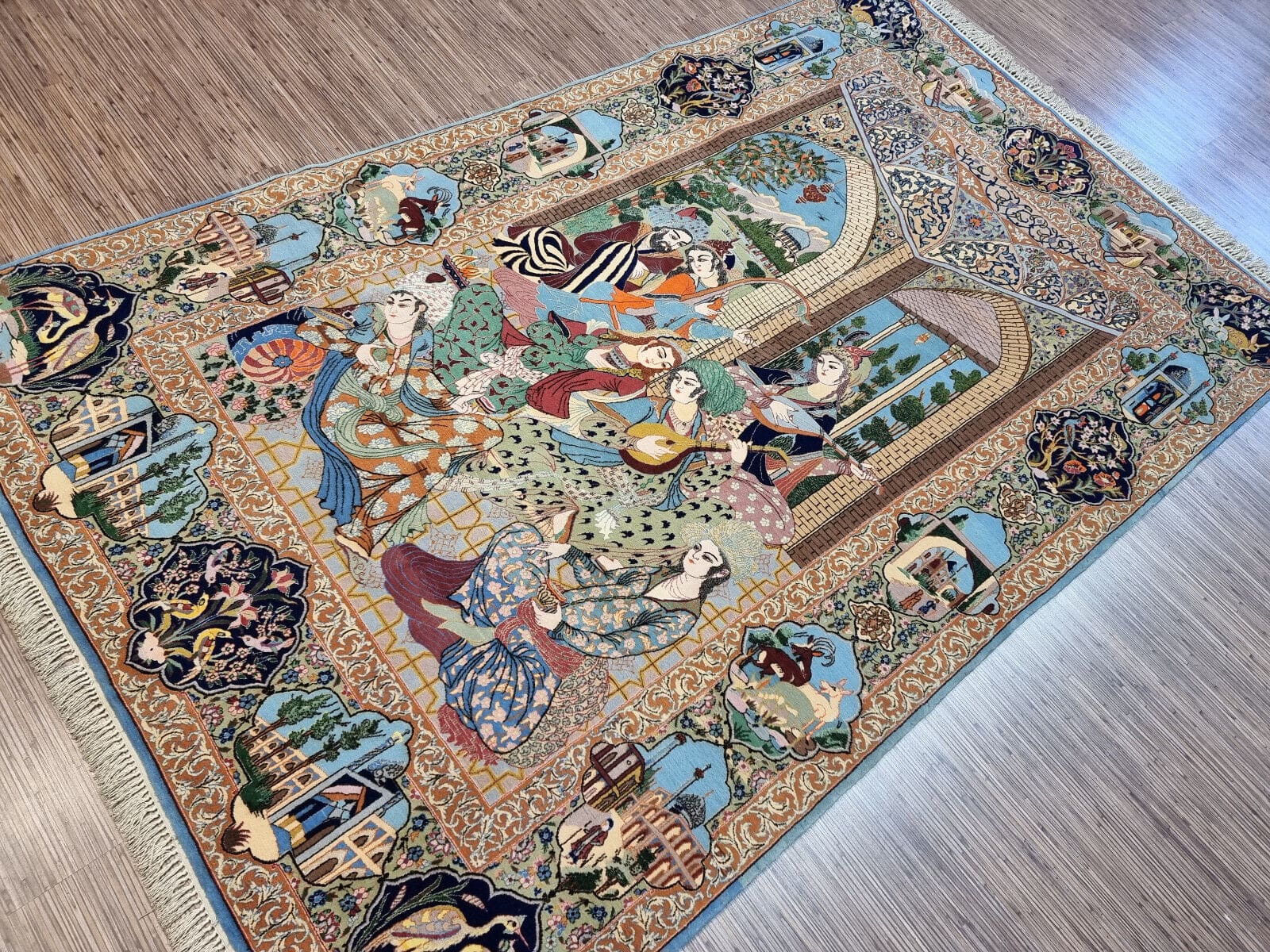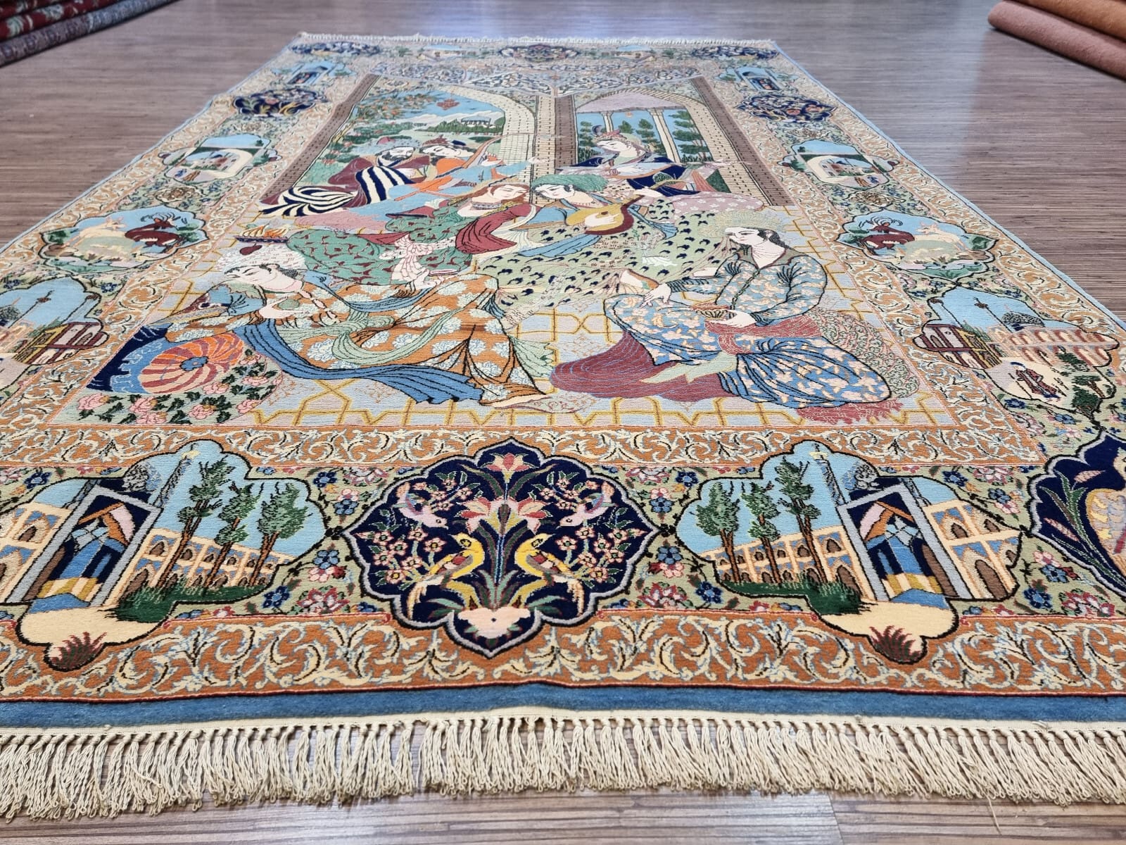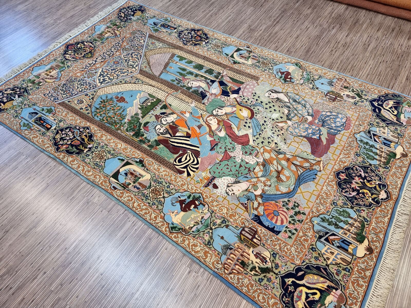 Dieser Teppich stammt aus Isfahan, einer der bekanntesten Teppichmacher-Städte im Iran. Isfahan ist berühmt für seine vielfältigen und kunstvollen Teppichdesigns, die oft komplizierte florale und geometrische Muster aufweisen, die die Schönheit und den Reichtum der persischen Kultur widerspiegeln. Die Tradition des Teppichknüpfens in Isfahan hat eine jahrhundertelange Geschichte und gilt als eine der besten in der Welt. Die Teppiche sind nicht nur Ganzstücke zum Dekorieren, sondern auch Ausdruck von Kunst und Handwerkskunst, die über Generationen hinweg perfektioniert wurde.