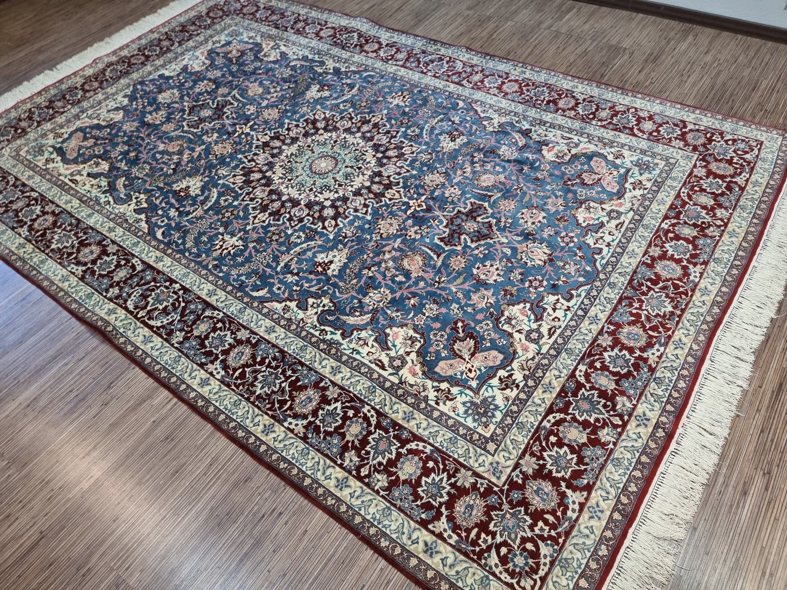 Wunderschöner Original Persischer Isfahan Teppich | Knotendichte: Ca. 800.000 Knoten/m² | Material: Korkwolle auf Seide | Größe: 310×206 cm | Zustand: Sehr gut, frisch professionell gewaschen | Herkunft: Iran | Stil: Orientalisch | Handgeknüpft und einzigartig