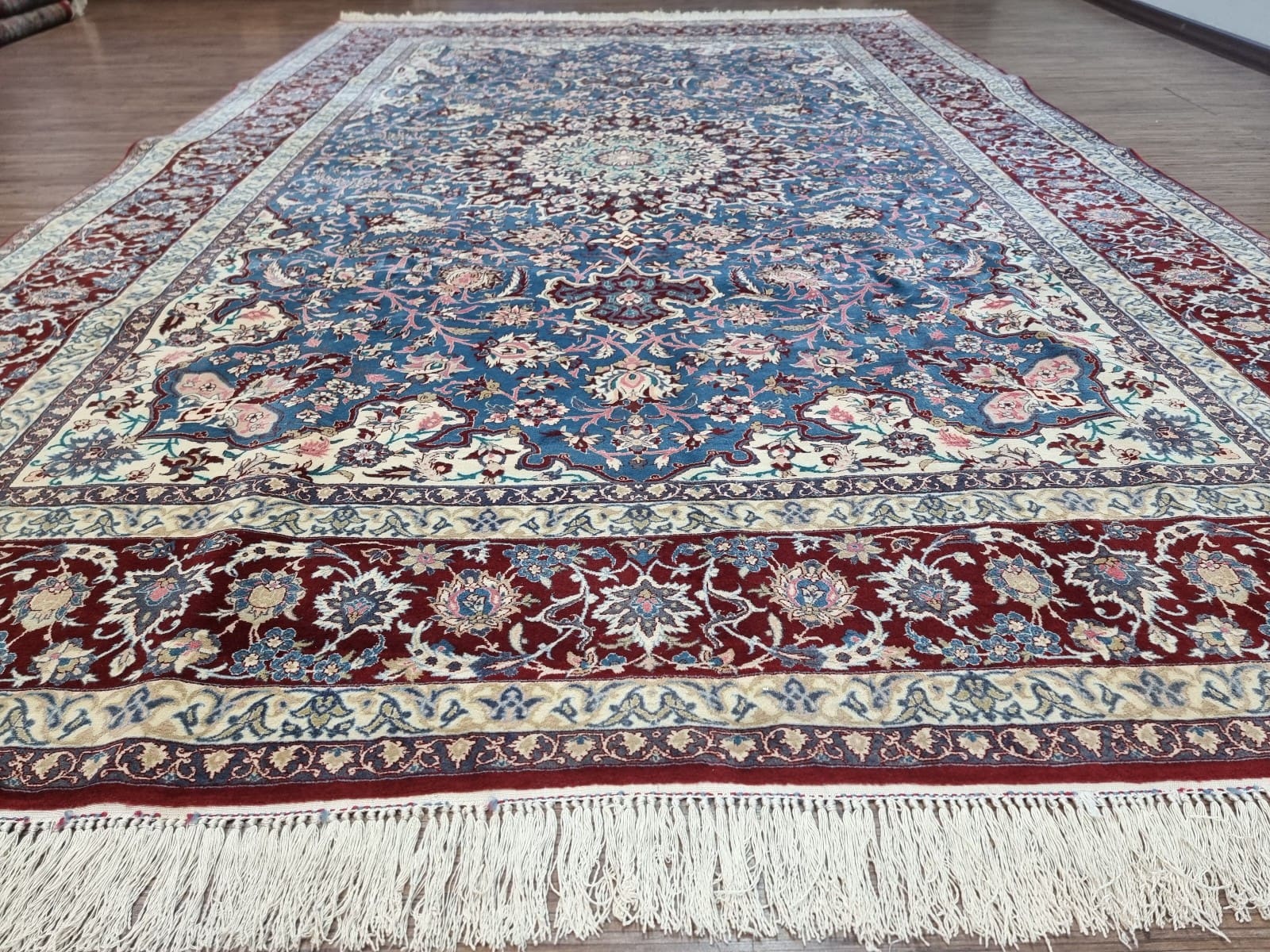 4908$Ursprünglicher Preis war: 4908$1205$Aktueller Preis ist: 1205$ Weiterlesen(Verkauft) W1 (#203) ca. 345x245cm NEU Handgeknüpfter Nain Perserteppich mit Seide 12la
