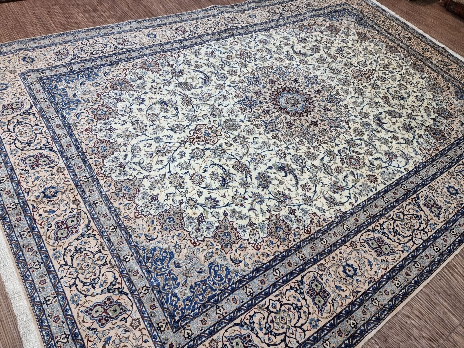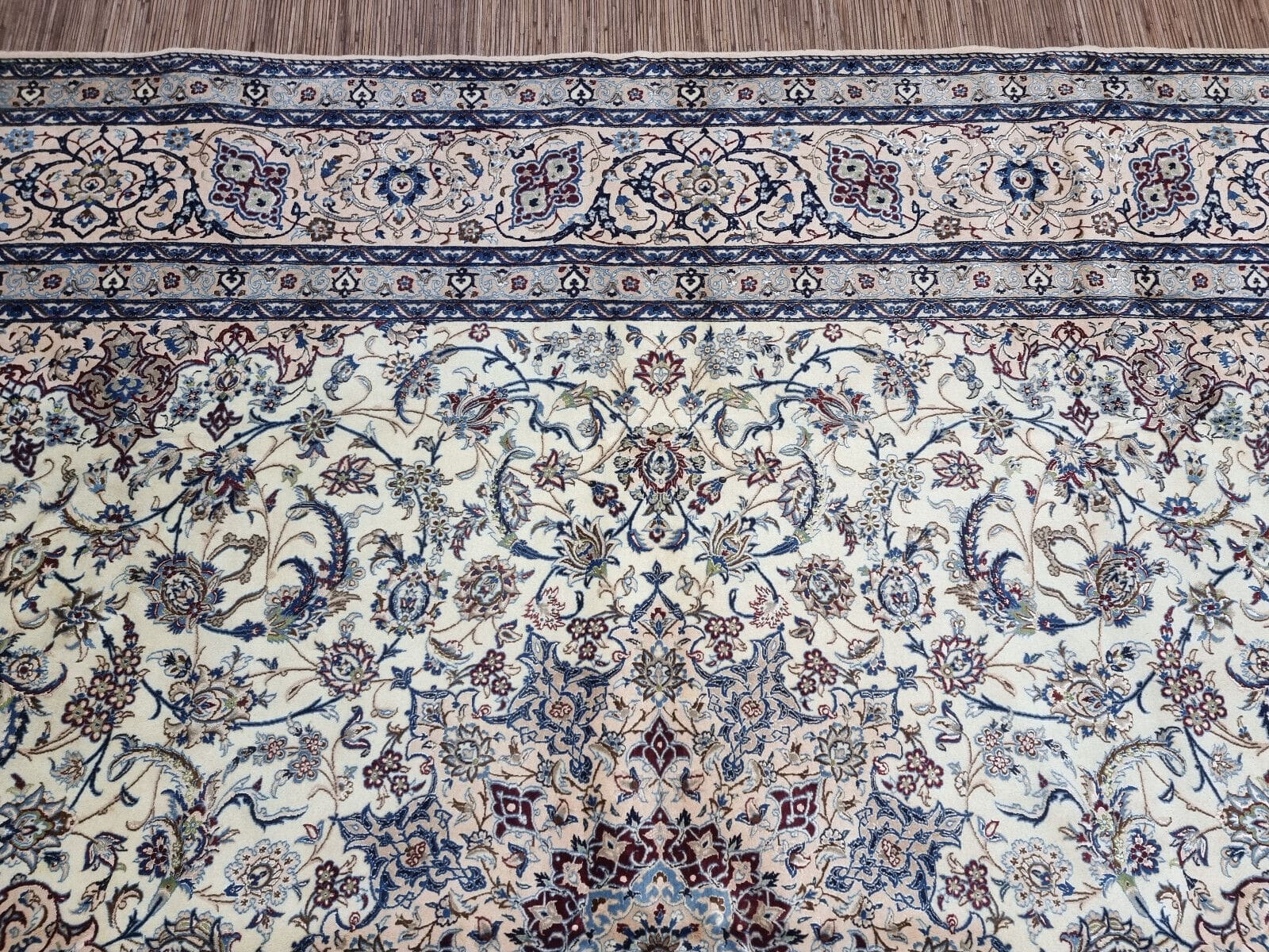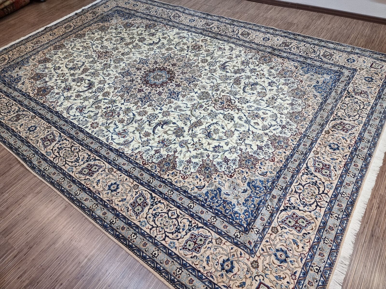 Wunderschöner Original Persischer Nain 6La | Knotendichte: ca. 800.000 Knoten/m² | Material: Korkwolle mit Seide auf Baumwolle | Größe: 370×262 cm | Zustand: Sehr gut, frisch professionell gewaschen | Herkunft: Persien | Stil: Orientalisch | Herstellungszeitraum: 1980-1989