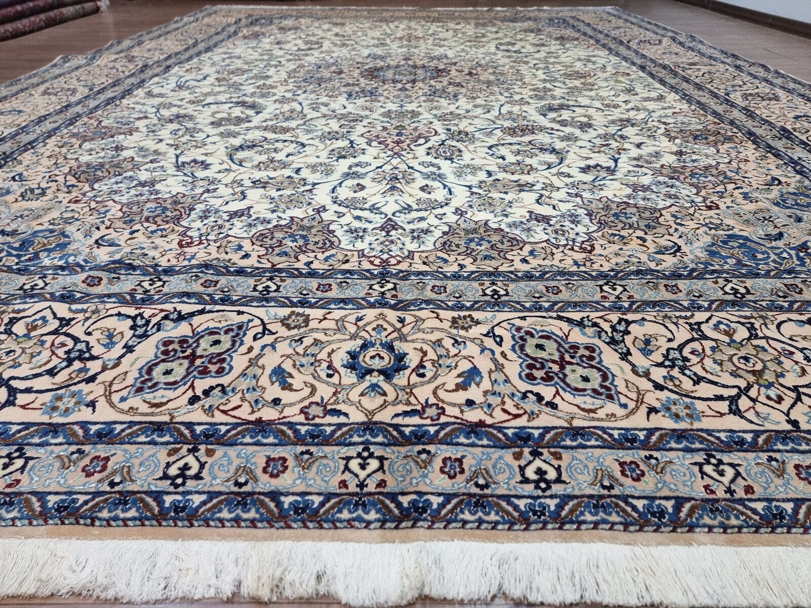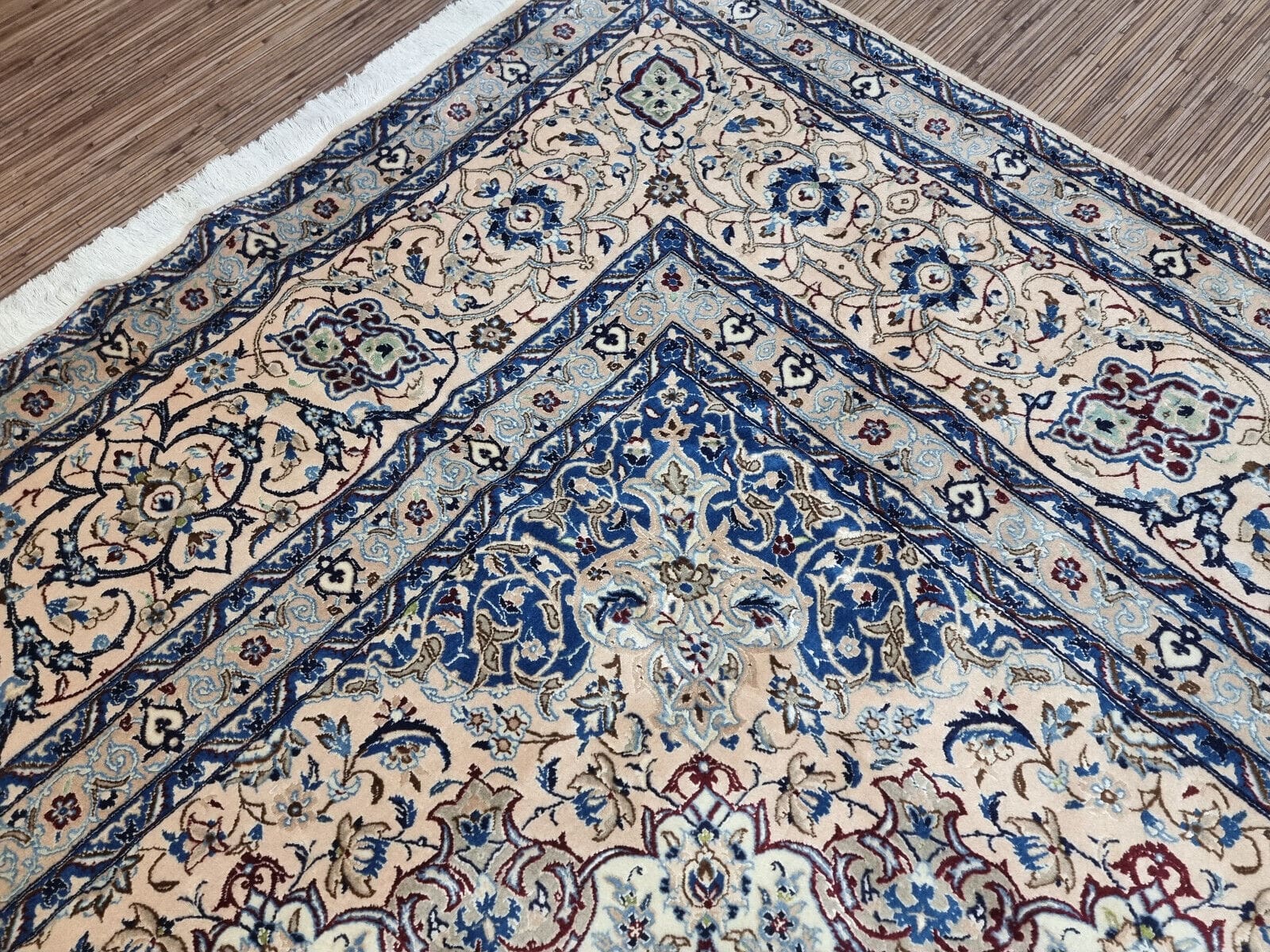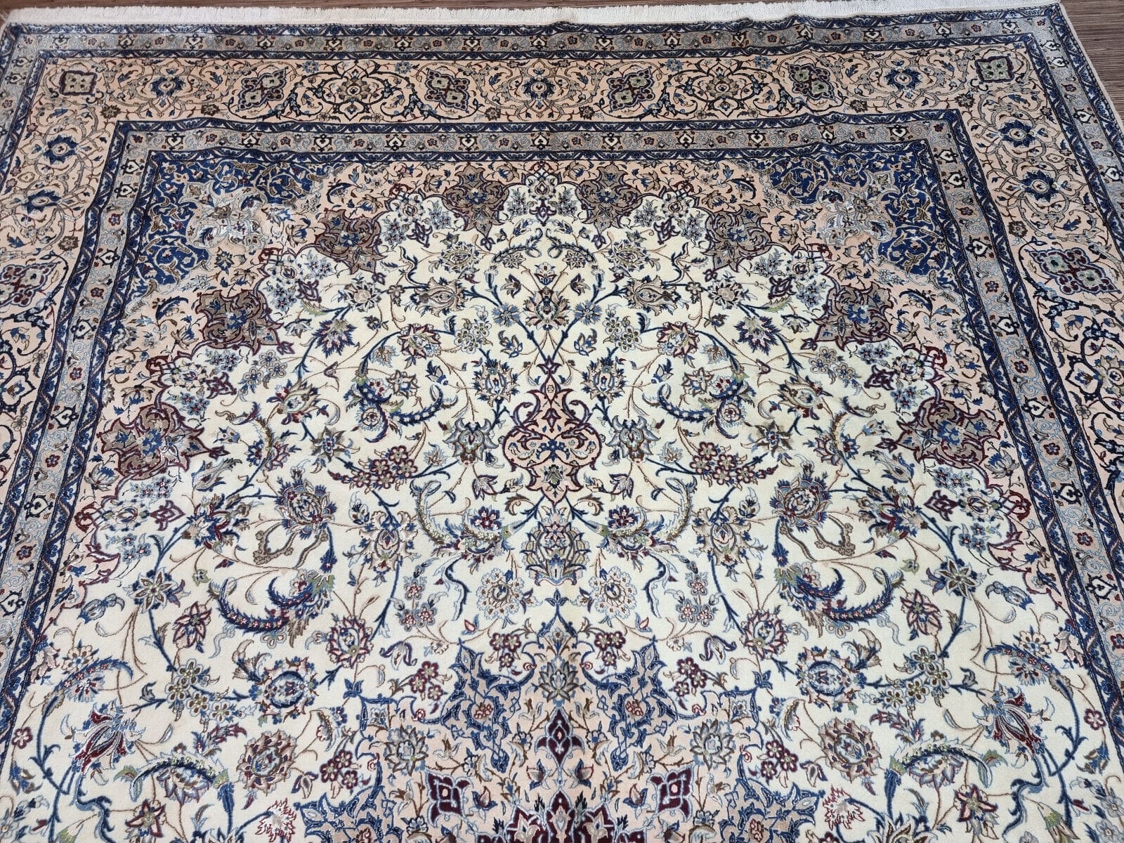 Wunderschöner Original Persischer Nain 6La | Knotendichte: ca. 800.000 Knoten/m² | Material: Korkwolle mit Seide auf Baumwolle | Größe: 370×262 cm | Zustand: Sehr gut, frisch professionell gewaschen | Herkunft: Persien | Stil: Orientalisch | Herstellungszeitraum: 1980-1989