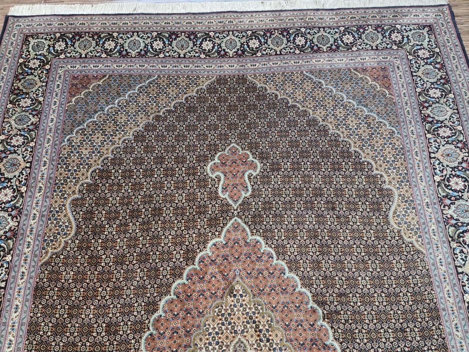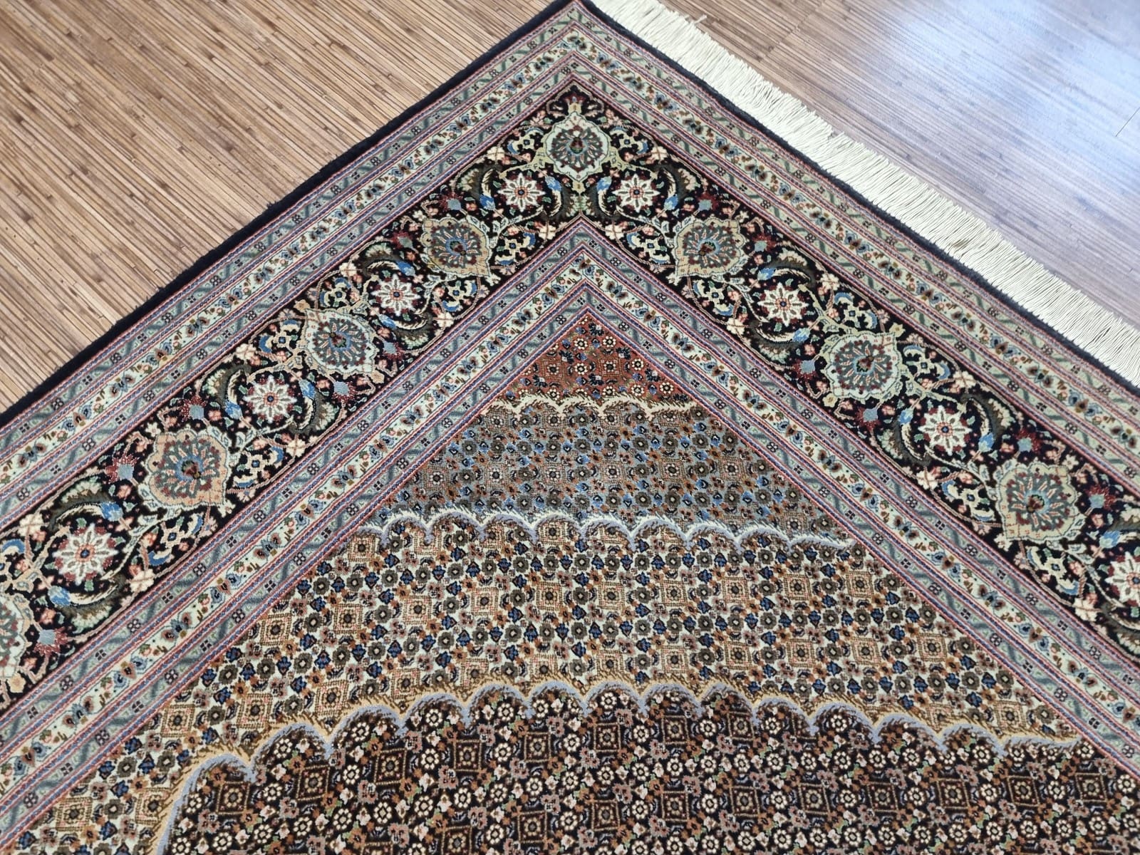 Wunderschöner Original Persischer Täbriz | Knotendichte: ca. 500.000 Knoten/m² | Material: Korkwolle auf Baumwolle | Größe: 302×202 cm | Zustand: Sehr gut | Muster: Mahi | Herkunft: Persien | Stil: Orientalisch | Handgeknüpft | Herstellungszeitraum: 1970-1979