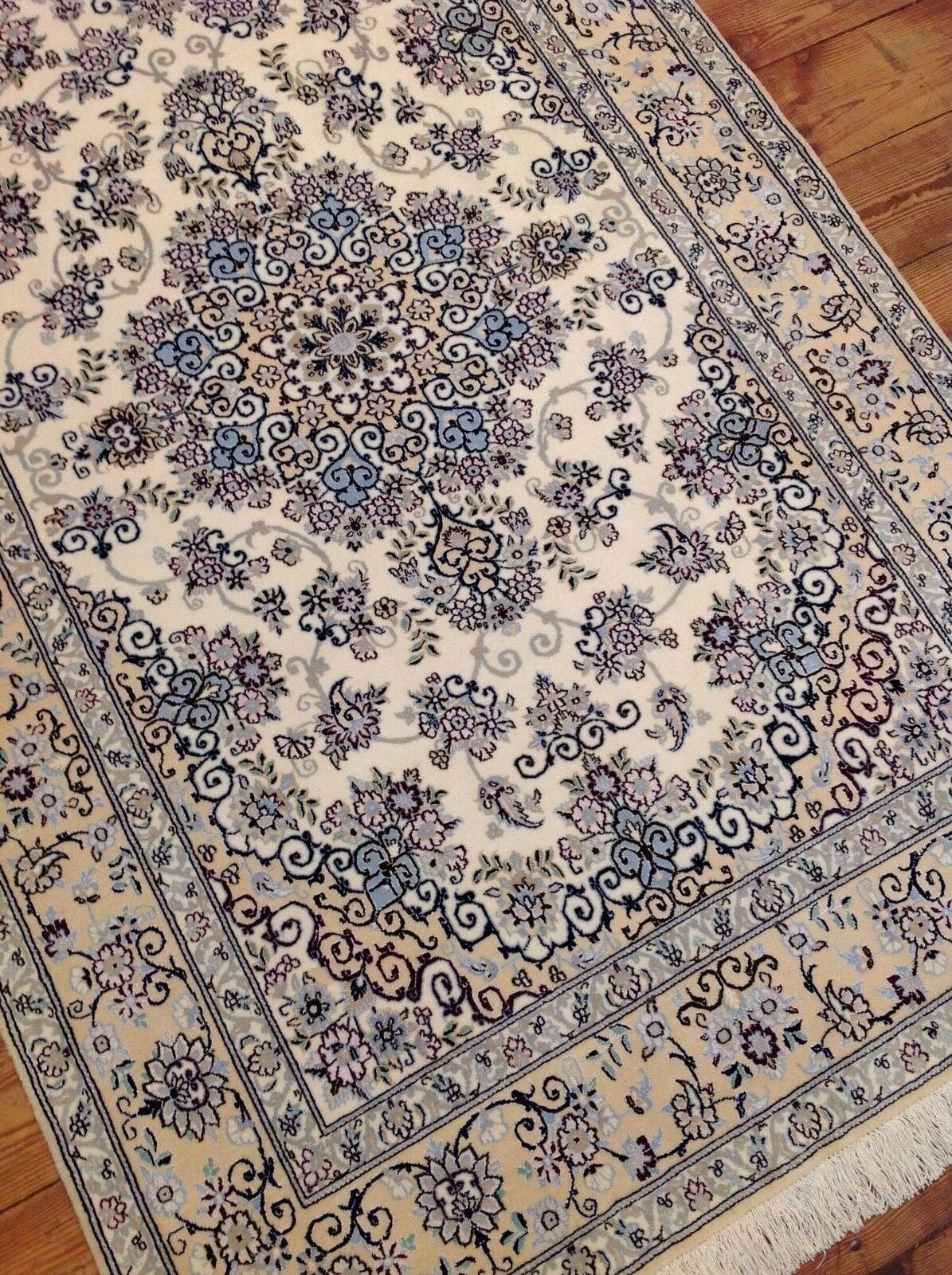 Wunderschöner Super Nain 6 La Perserteppich 178 x 113 cm – ca. 900.000 Knoten/m², 80% Korkwolle, 20% Naturseide, sehr fein, handgeknüpft