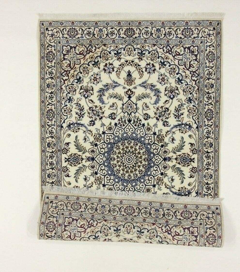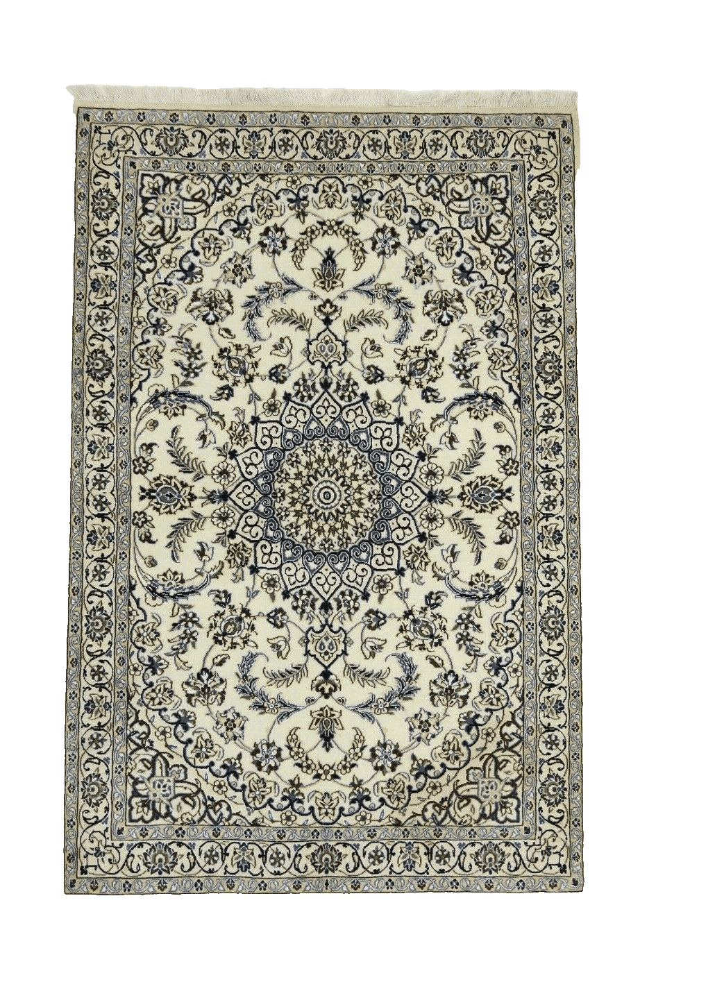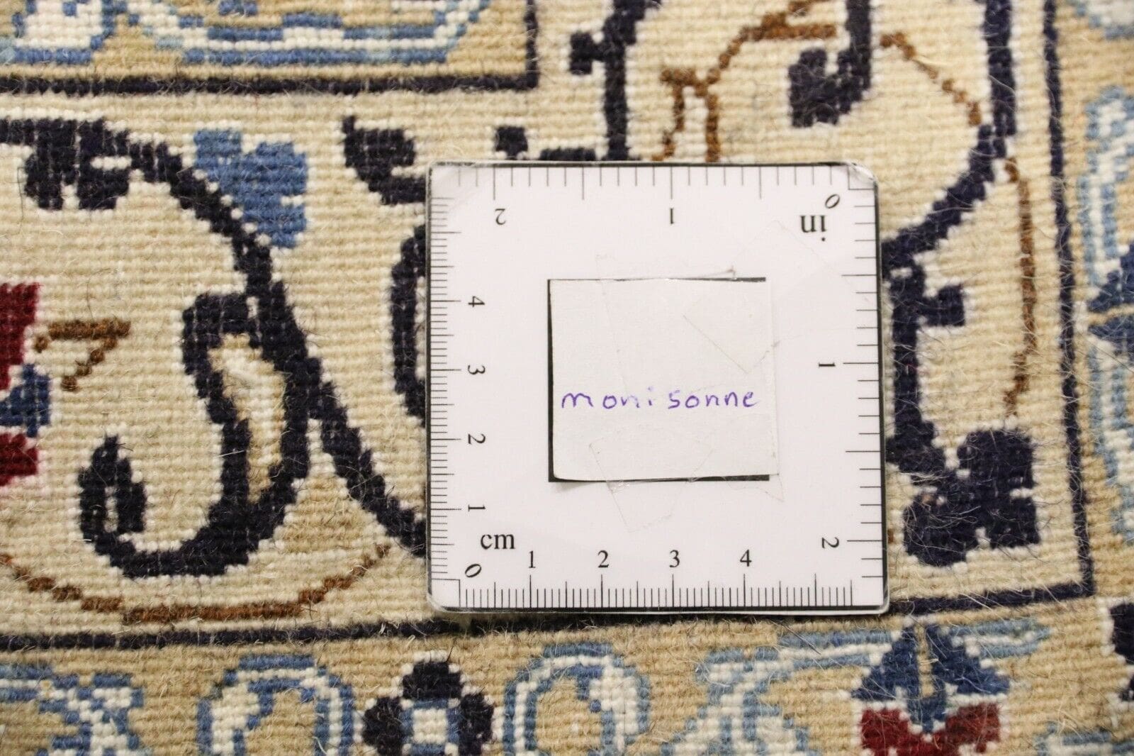 Dieser Teppich stammt aus Nain, einer Stadt im Iran, die für ihre traditionellen Perserteppiche bekannt ist. Nain ist berühmt für die Verwendung von hochwertigen Materialien und komplizierten Designs, die oft florale Motive und geometrische Muster aufweisen. Die Teppichmacher in Nain haben jahrzehntelange Erfahrung und ein tiefes Wissen über die Kunst des Teppichknüpfens, was sich in der einzigartigen Qualität ihrer Produkte widerspiegelt. Die Teppiche aus Nain sind nicht nur für ihr ästhetisches Erscheinungsbild bekannt, sondern auch für ihre Funktionalität, da sie sowohl in modernen als auch in traditionellen Einrichtungsstilen wunderbar harmonieren.