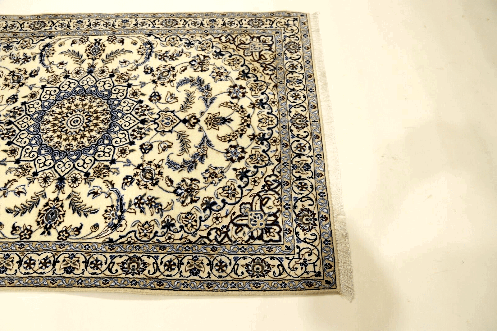 Wunderschöner Perserteppich Super Nain 9 La | Größe: 180 x 112 cm | Material: 90% Schurwolle, 10% Seide | Knotendichte: ca. 500.000 Knoten/m² | Zustand: Neu, sehr gut | Herkunft: Persien/Iran | Besonderheiten: Für Fußbodenheizung geeignet, haustierfreundlich | Florhöhe: 8 mm | Stil: Traditionell orientalisch/persisch