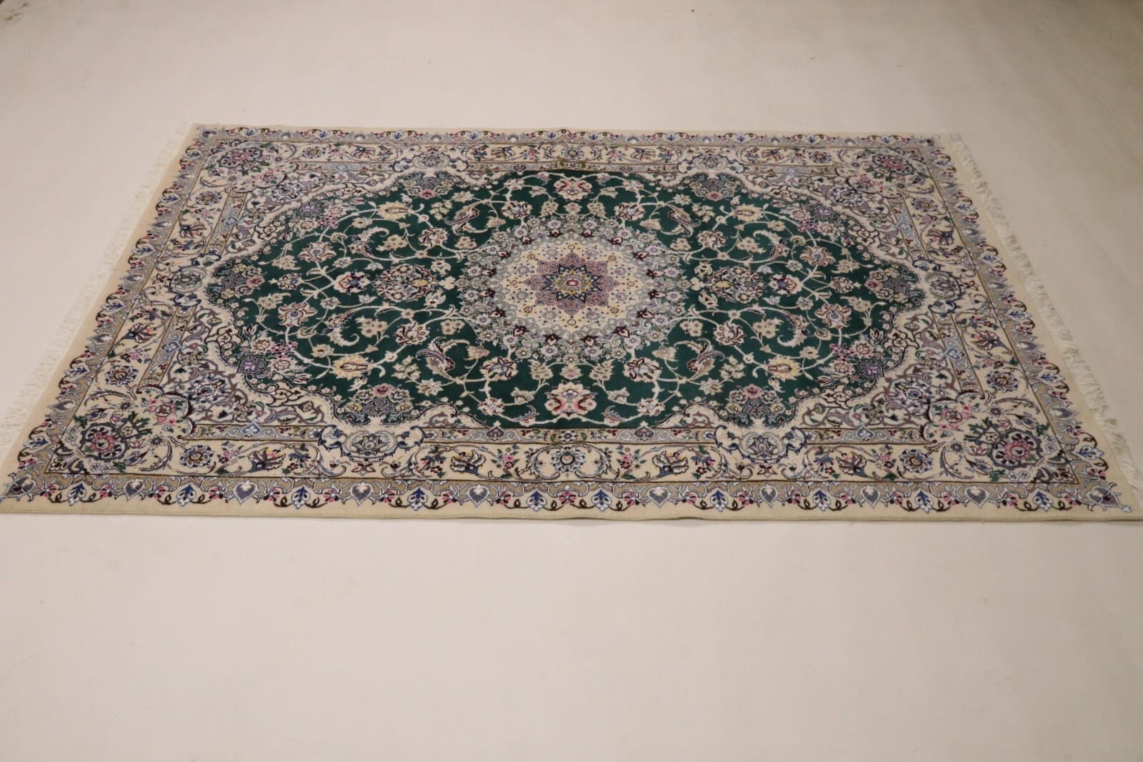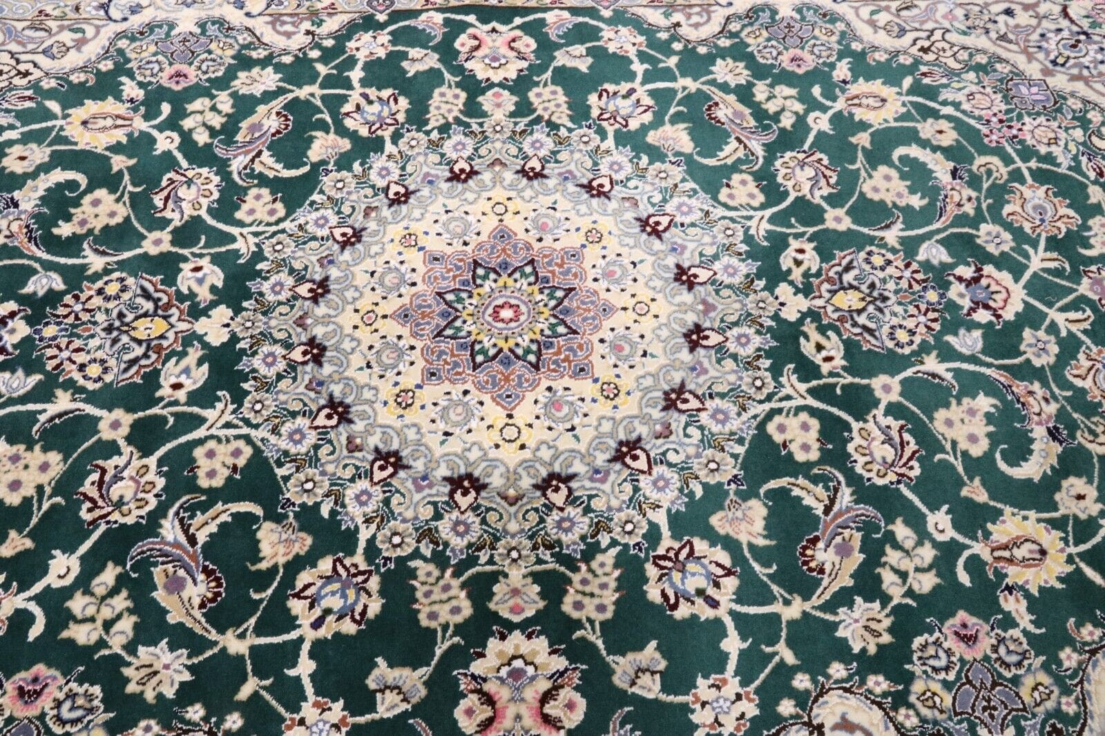 4908$Ursprünglicher Preis war: 4908$1169$Aktueller Preis ist: 1169$ Weiterlesen(Verkauft) W1 (#203) ca. 345x245cm NEU Handgeknüpfter Nain Perserteppich mit Seide 12la