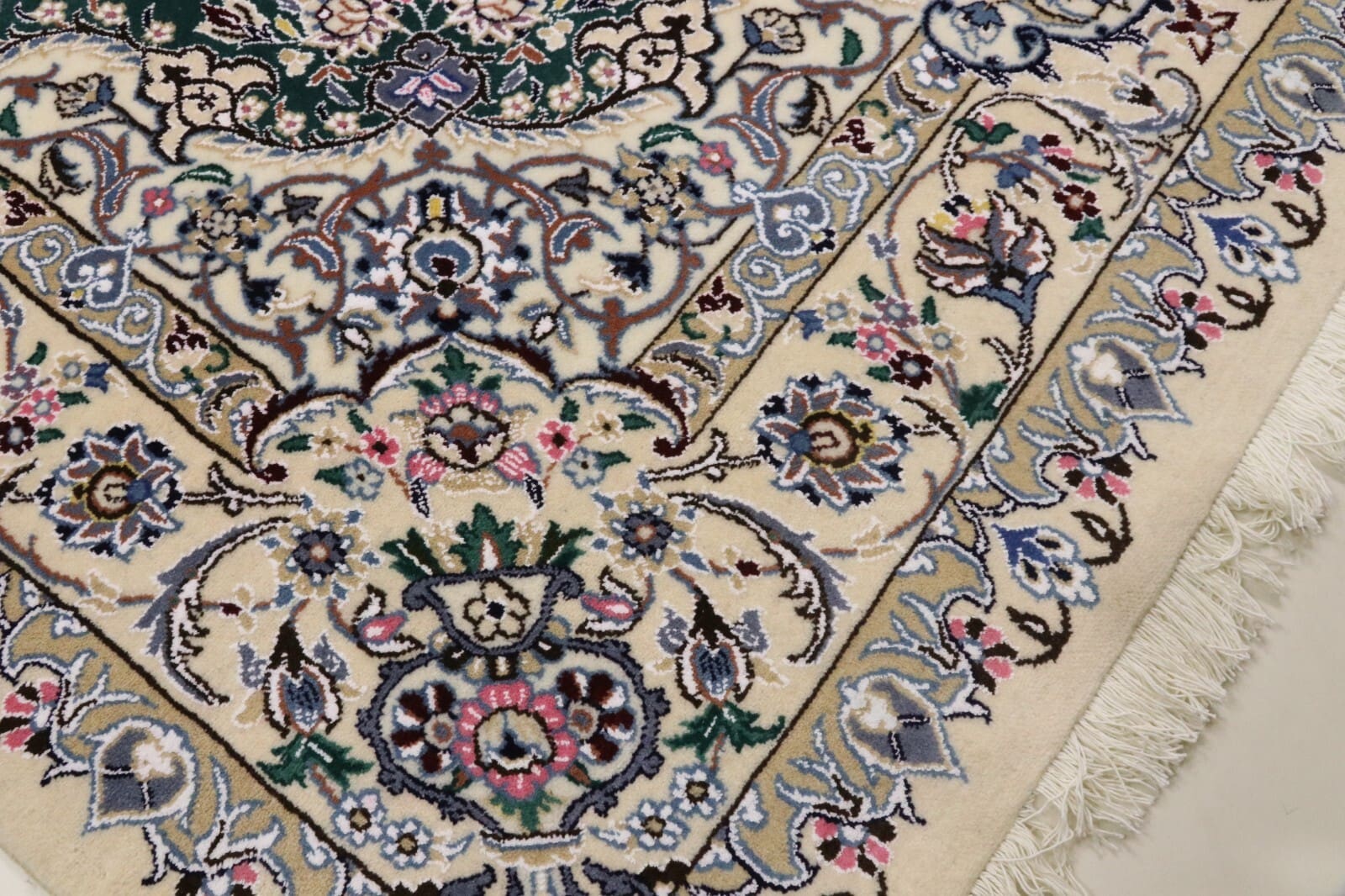 Dieser Teppich stammt aus der renommierten Stadt Nain, die im zentralen Iran liegt. Nain ist weltweit bekannt für ihre Teppichproduktion und hat eine lange Tradition, die bis ins 16. Jahrhundert zurückreicht. Die Teppiche aus dieser Region sind für ihre exzellente Handwerkskunst, feinen Materialien und oft klassischen Designs berühmt. Die Kunst des Teppichknüpfens wird in Nain von Generation zu Generation weitergegeben, wodurch ein hohes Maß an Expertise in der Herstellung dieser kunstvollen Stücke gewährleistet ist. Die faszinierende Geschichte dieser Region wird durch die Teppiche lebendig, die mit viel Liebe und Vertrauen in die Tradition gefertigt werden.
