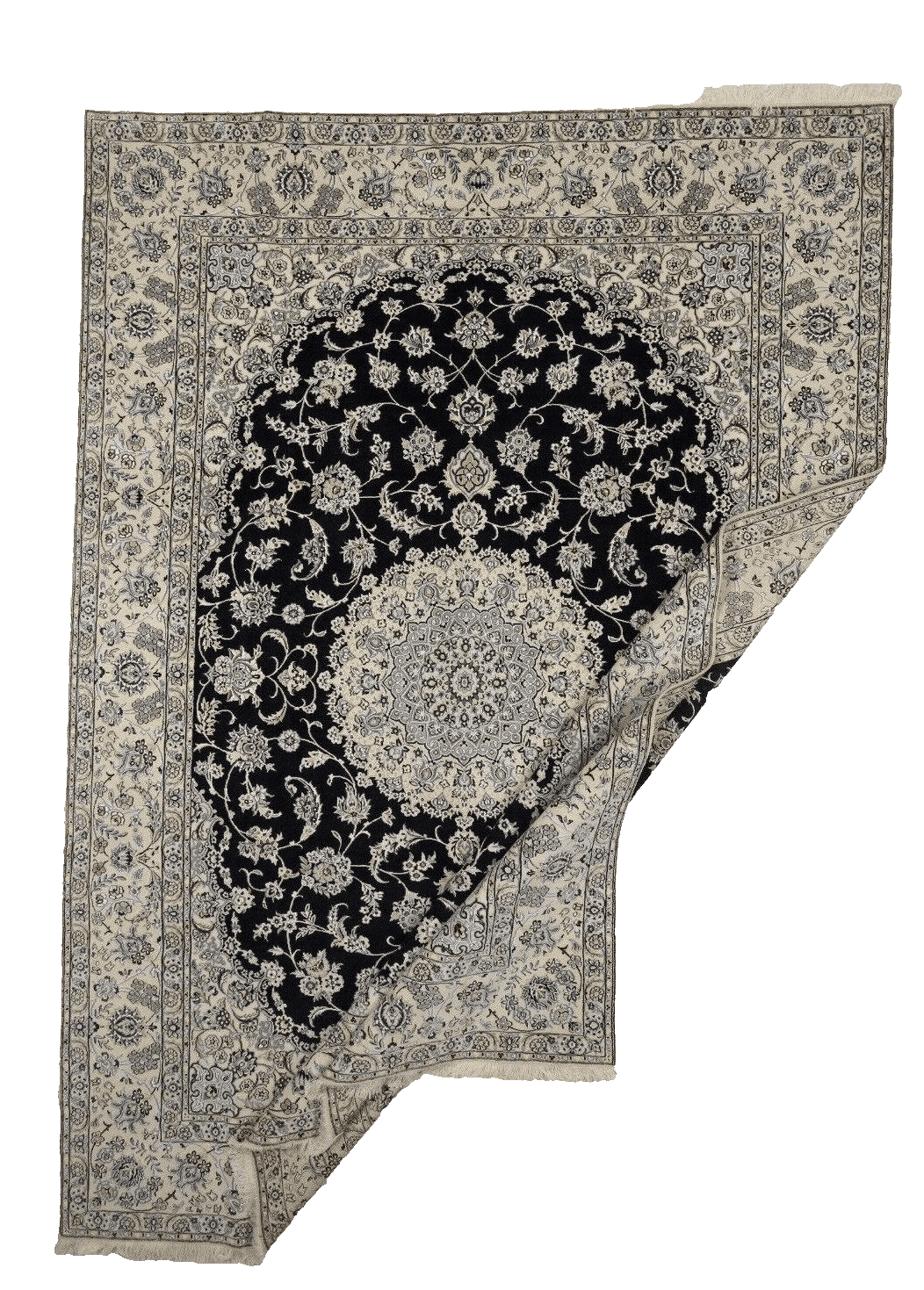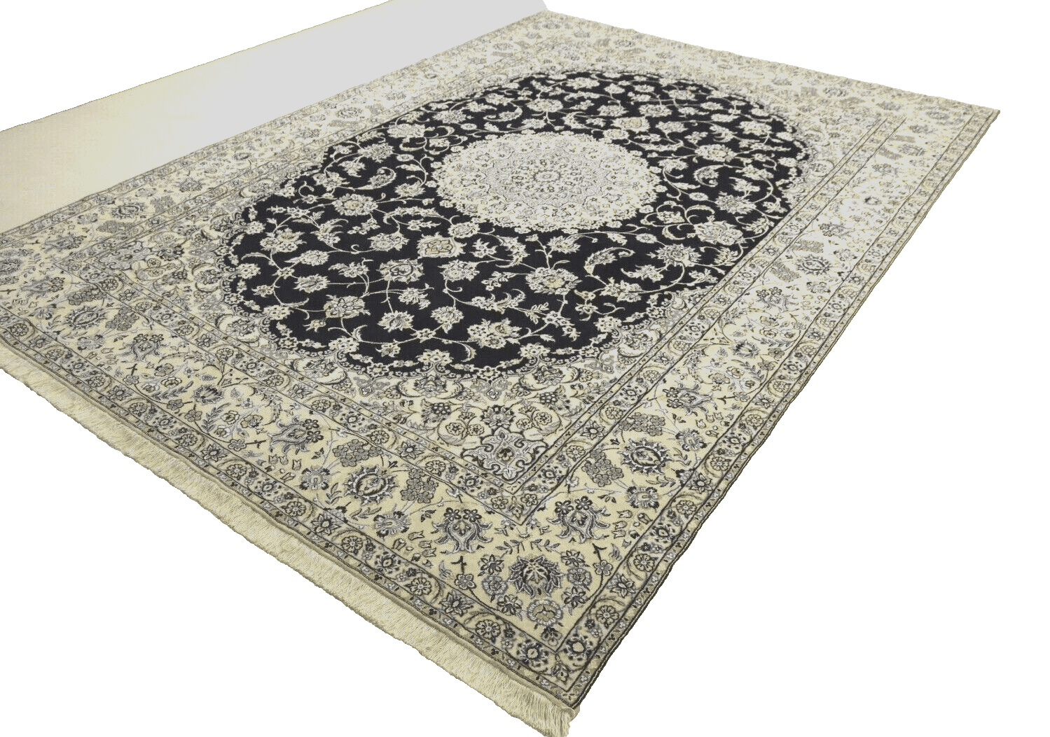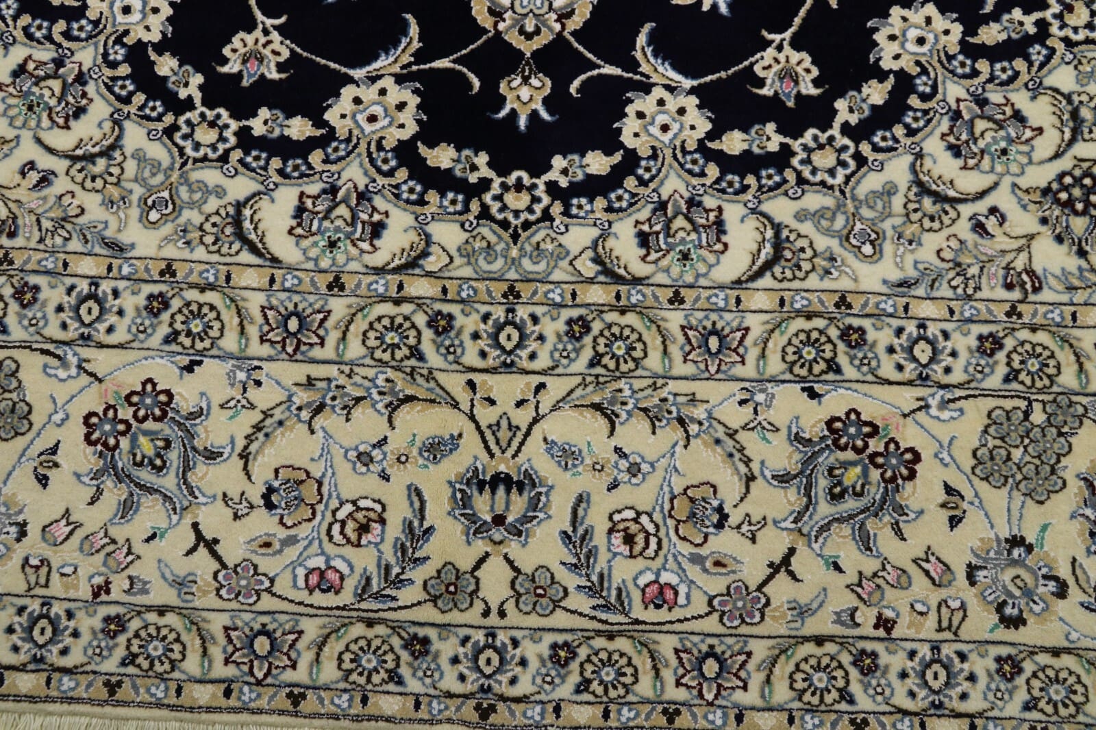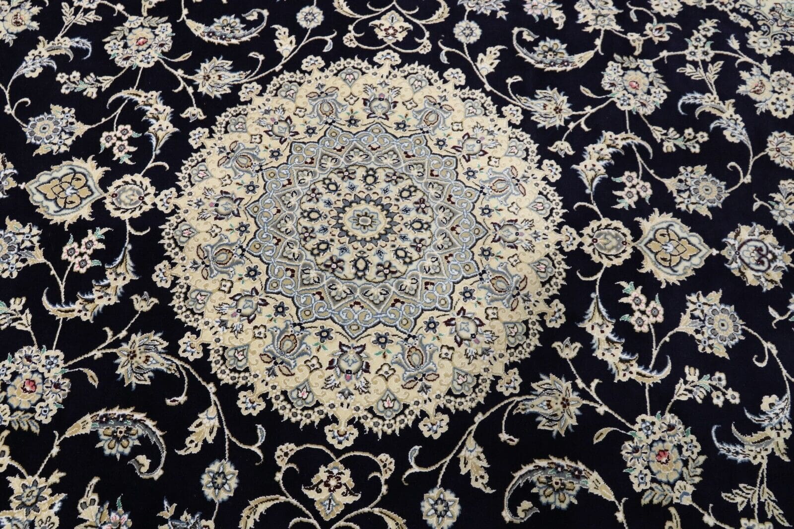 Handgeknüpfter Perserteppich Super Nain 9 La | Knotendichte: ca. 500.000 Knoten/m² | Material: 80% Schurwolle, 20% Seide | Größe: 352 x 247 cm | Zustand: Neu und unbenutzt | Herkunft: Persien / Iran | Dicke: ca. 8 mm | Geeignet für Fußbodenheizung und haustierfreundlich | Stil: Traditionell Orientalisch/Persisch | Besonderheiten: Echtheitszertifikat inklusive