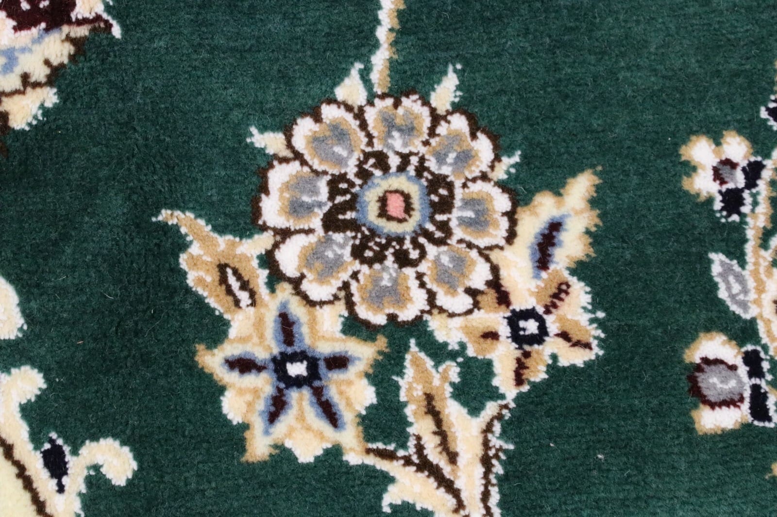 Dieser Teppich besteht aus hochwertiger Wolle, die für ihre Langlebigkeit und Weichheit bekannt ist. Wolle ist nicht nur ein umweltfreundliches Material, sondern bietet auch eine ausgezeichnete Isolation, die sowohl im Sommer als auch im Winter von Vorteil ist. Die Knotendichte dieses Teppichs ist bemerkenswert hoch, was für eine ausgesprochen feine und detaillierte Verarbeitung spricht. Hergestellt mit jahrhundertealten Methoden, garantiert dieser Teppich eine außergewöhnliche Qualität und Widerstandsfähigkeit, die Generationen überdauern kann.