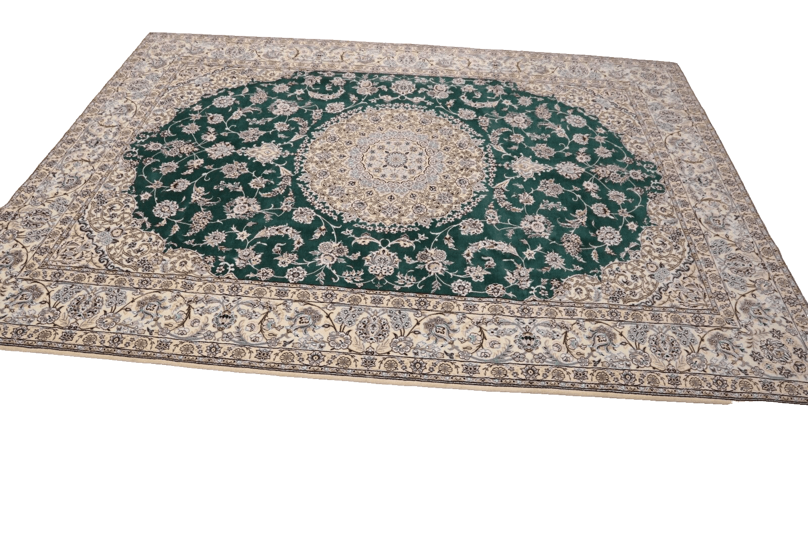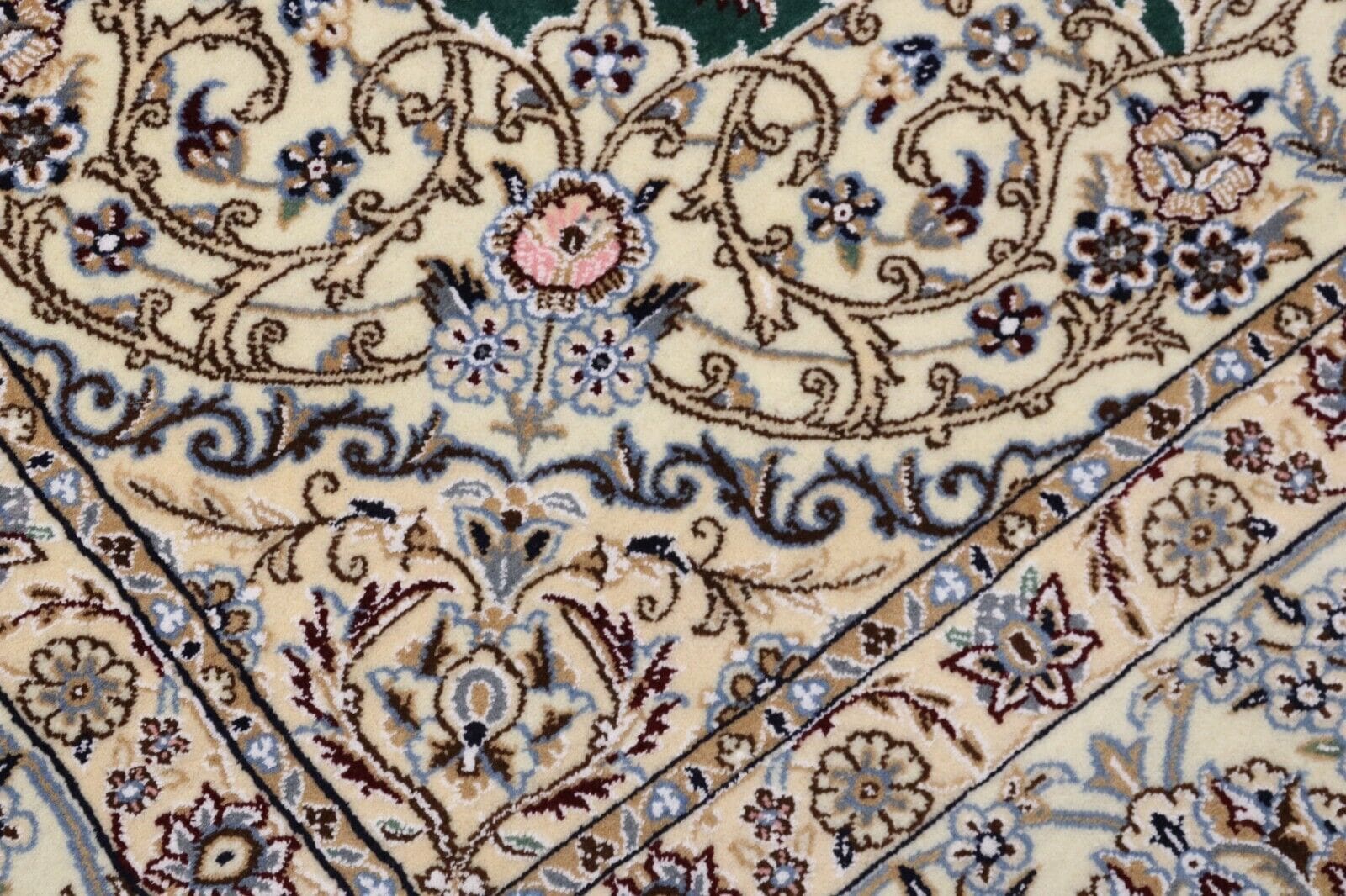 Handgeknüpfter Super Nain 9 La Orientteppich | Knotendichte: ca. 500.000 Knoten/m² | Material: 80% Schurwolle, 20% Seide | Größe: 354 x 252 cm | Zustand: Neu, sehr gut | Herkunft: Persien / Iran | Florhöhe: 8 mm | Stil: Traditionell Orientalisch/Persisch | Besonderheiten: Für Fußbodenheizung geeignet, haustierfreundlich