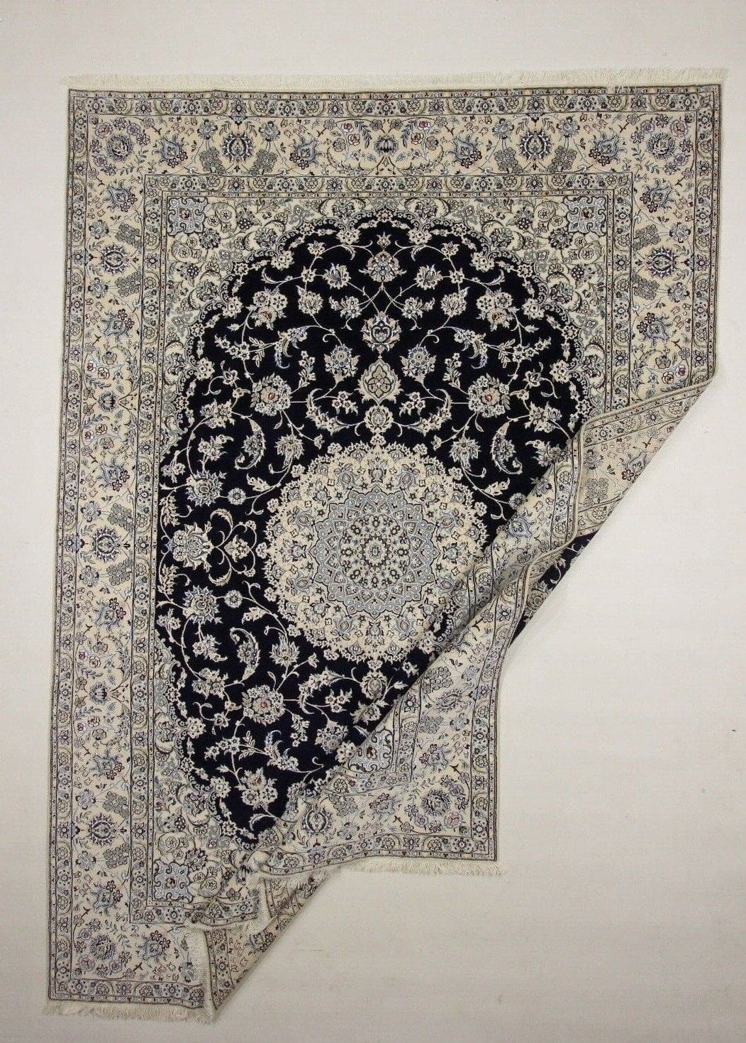 Nain-Teppiche sind für ihre exquisite Handwerkskunst bekannt. Sie werden traditionell in Nain, Iran, hergestellt und zeichnen sich durch feine Muster und eine hohe Knotendichte aus, die zu ihrer Langlebigkeit und Schönheit beitragen.