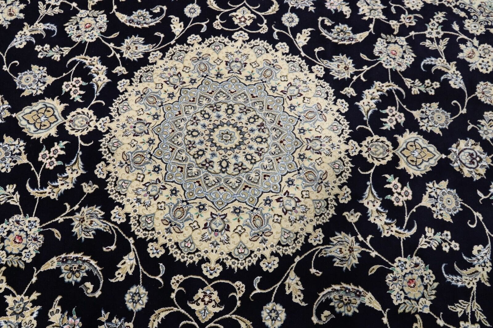 Persischer Super Nain 9 La Teppich | Größe: 360 x 248 cm | Knotendichte: ca. 500.000 Knoten/m² | Material: 80% Schurwolle, 20% Seide, 100% Baumwolle | Zustand: Neu, sehr gut | Muster: Orientalisch | Dicke: ca. 8 mm | Herkunft: Persien / Iran | Für Fußbodenheizung geeignet, haustierfreundlich | Traditioneller Stil, rechteckige Form