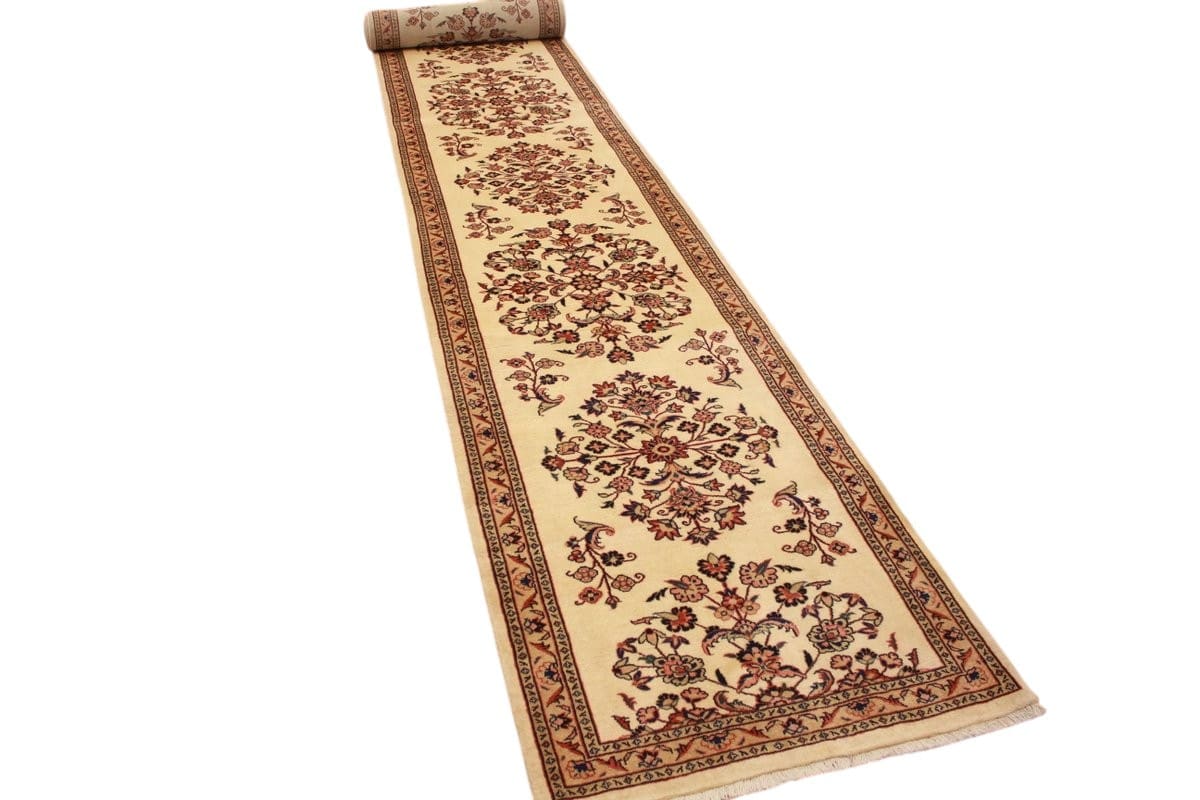 Der Läufer Sarough fällt besonders durch sein eindrucksvolles Muster auf, das harmonisch und kreativ gestaltet ist. Typisch für Perserteppiche sind die Verwendung traditioneller arabesker und floraler Motive, die nicht nur ästhetisch ansprechend sind, sondern auch symbolische Bedeutungen tragen. Diese Designs sind tief in der Kultur verwurzelt und erzählen Geschichten aus dem täglichen Leben und der Natur. Farblich ist der Sarough-Läufer ein echter Hingucker: Die harmonische Farbpalette strahlt Eleganz und Stil aus, wodurch der Teppich sowohl in klassischen als auch modernen Interieurs eine hervorragende Figur macht.
