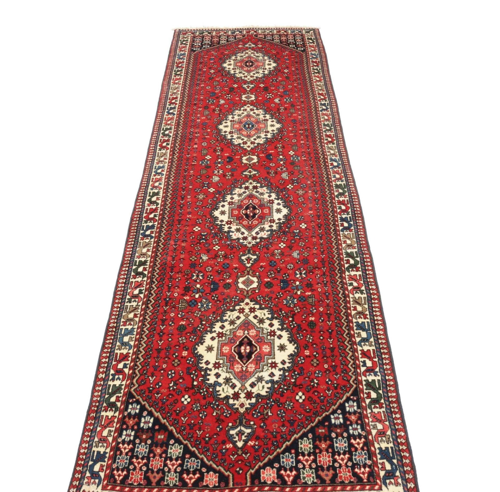Yalameh Perserteppich 86 x 308cm, geometrisches Muster, handgeknüpft