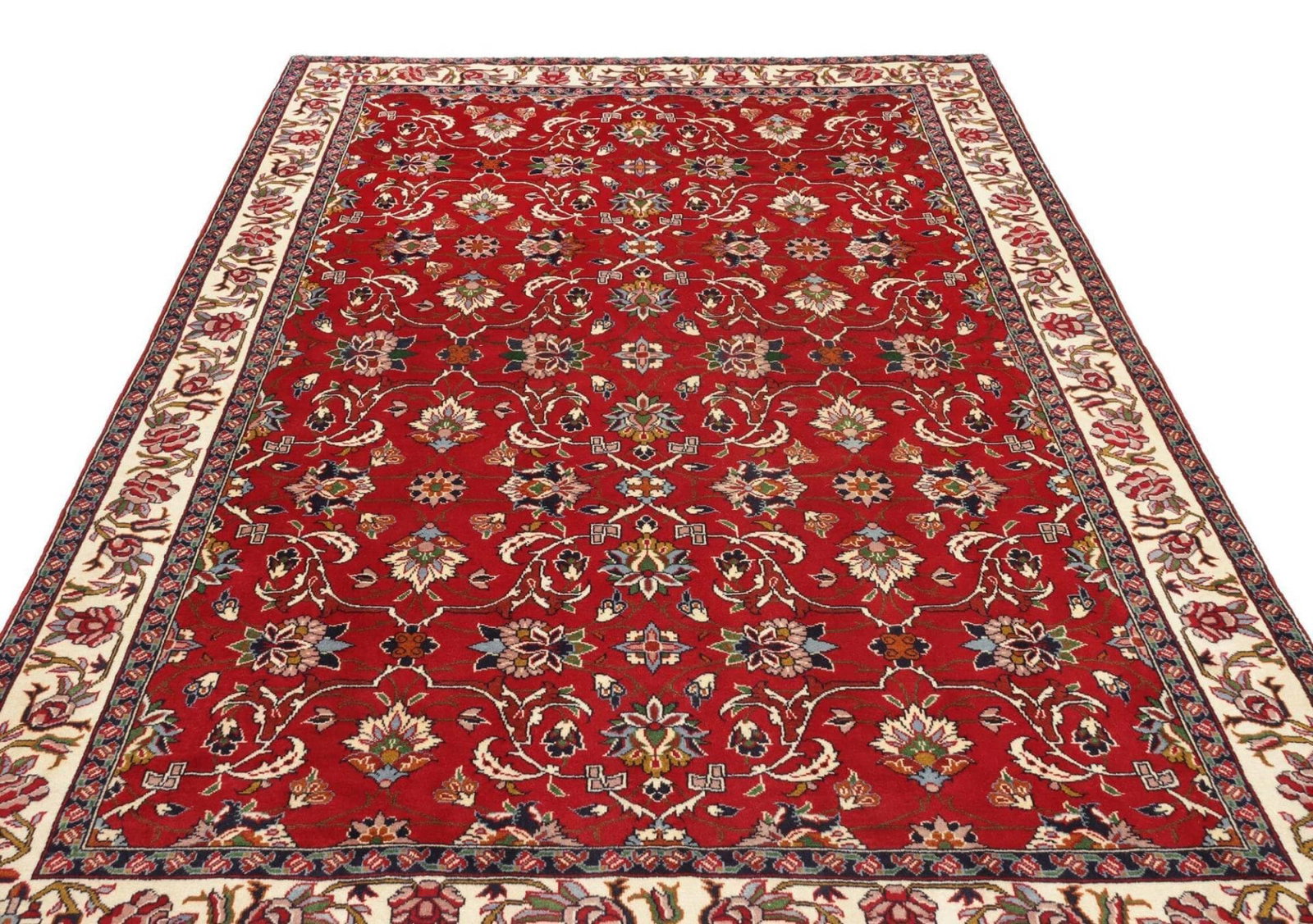 Yazd Teppich 211 x 318 cm, florale Muster, handgeknüpft, Perserteppich