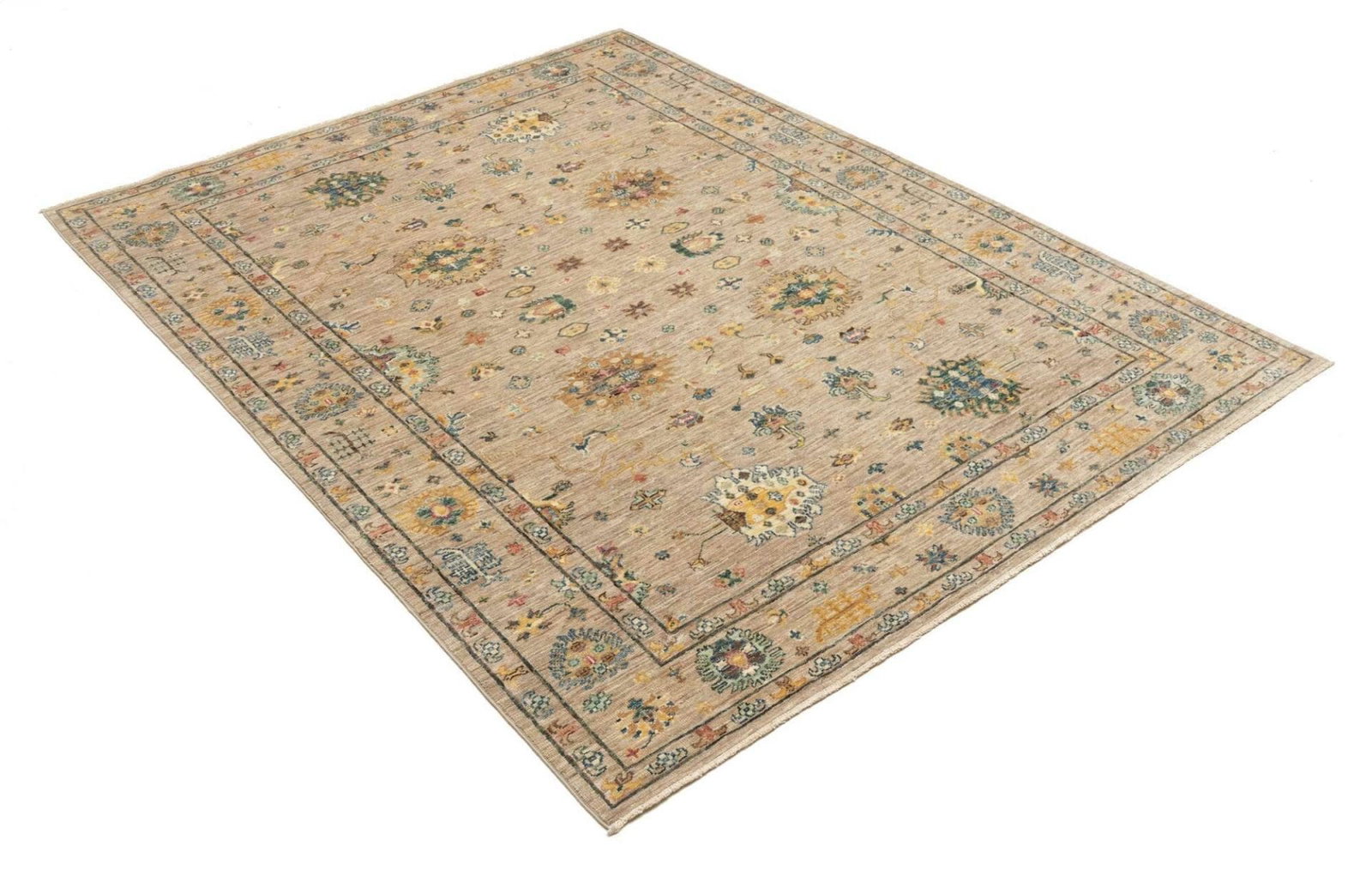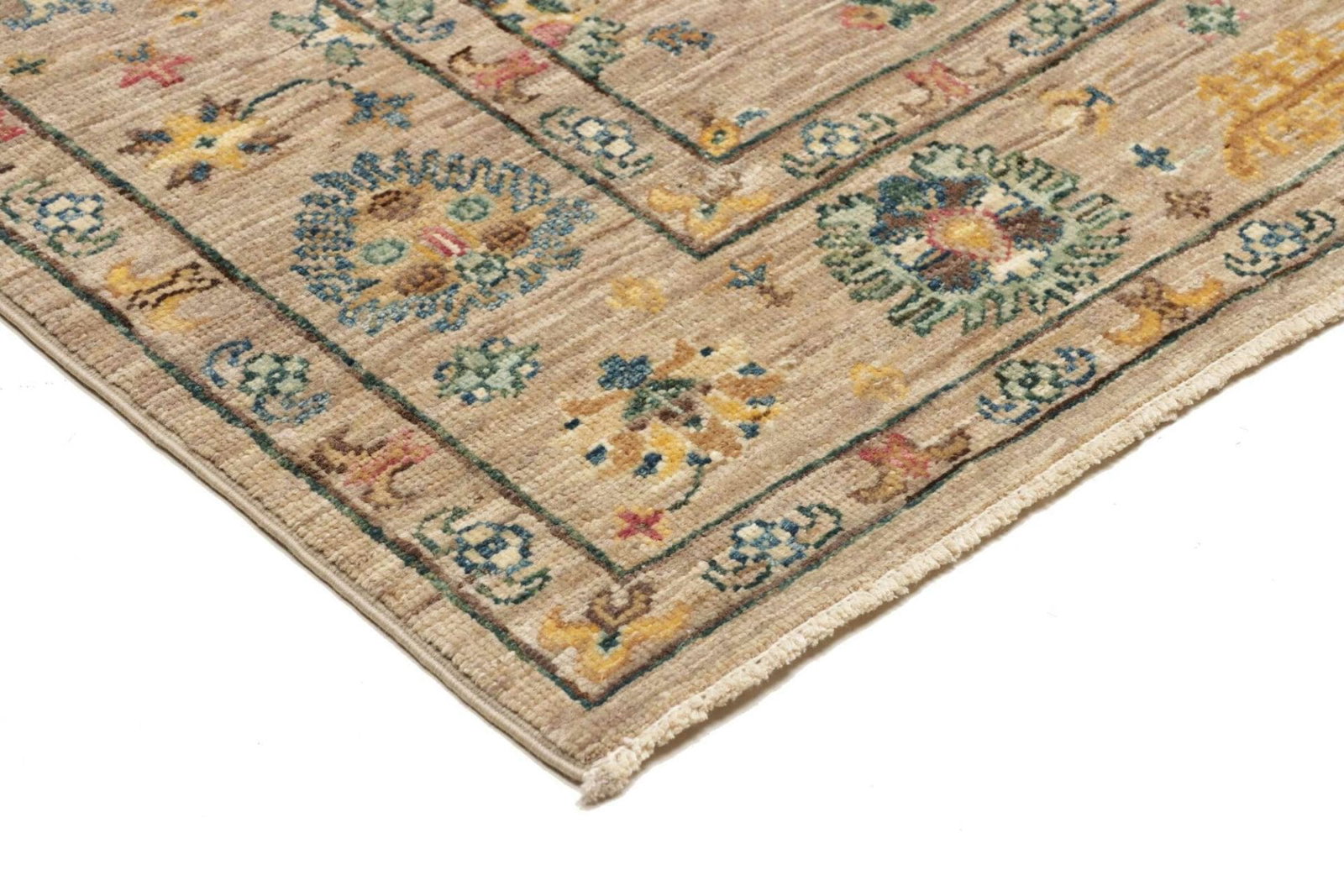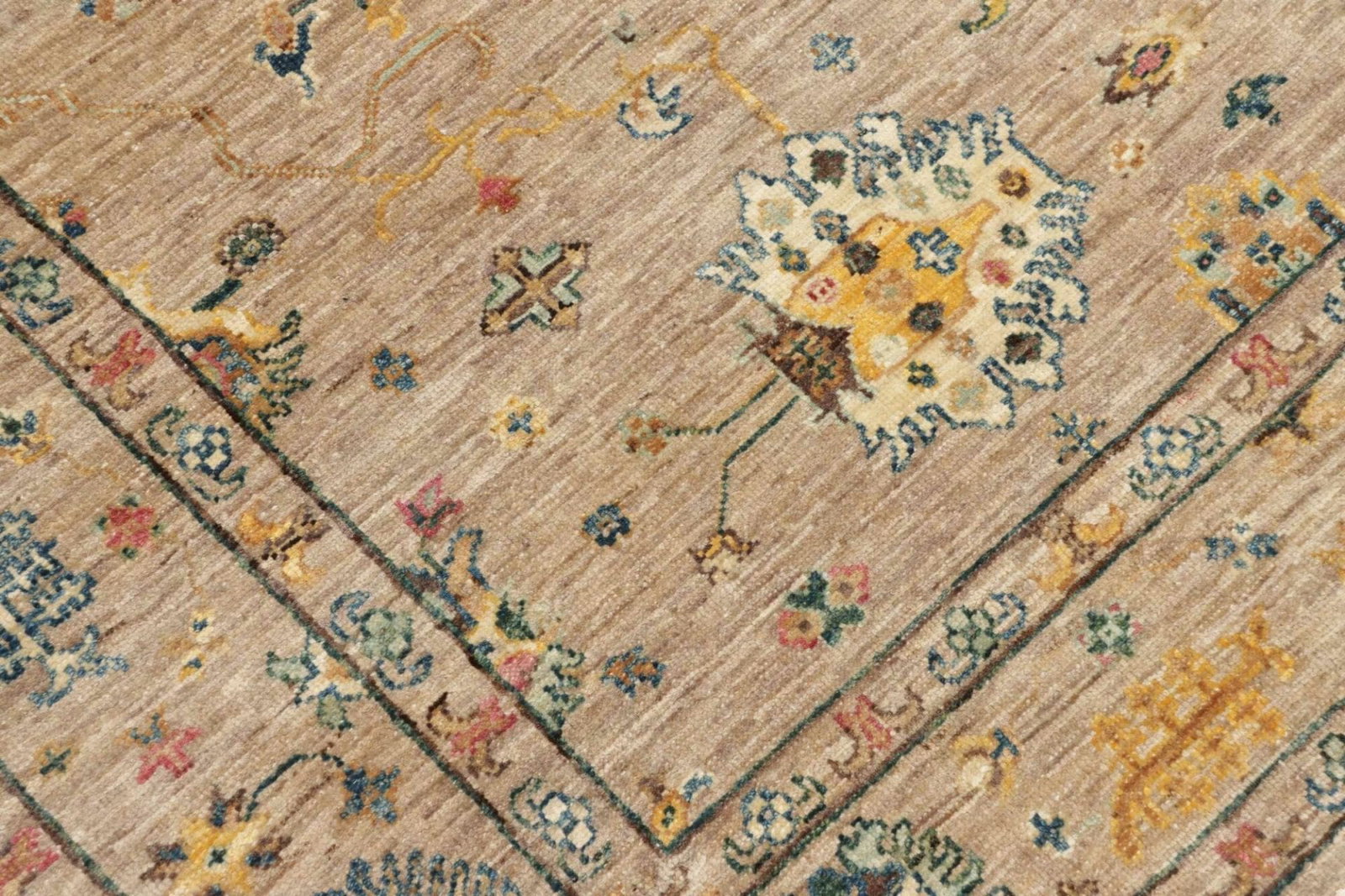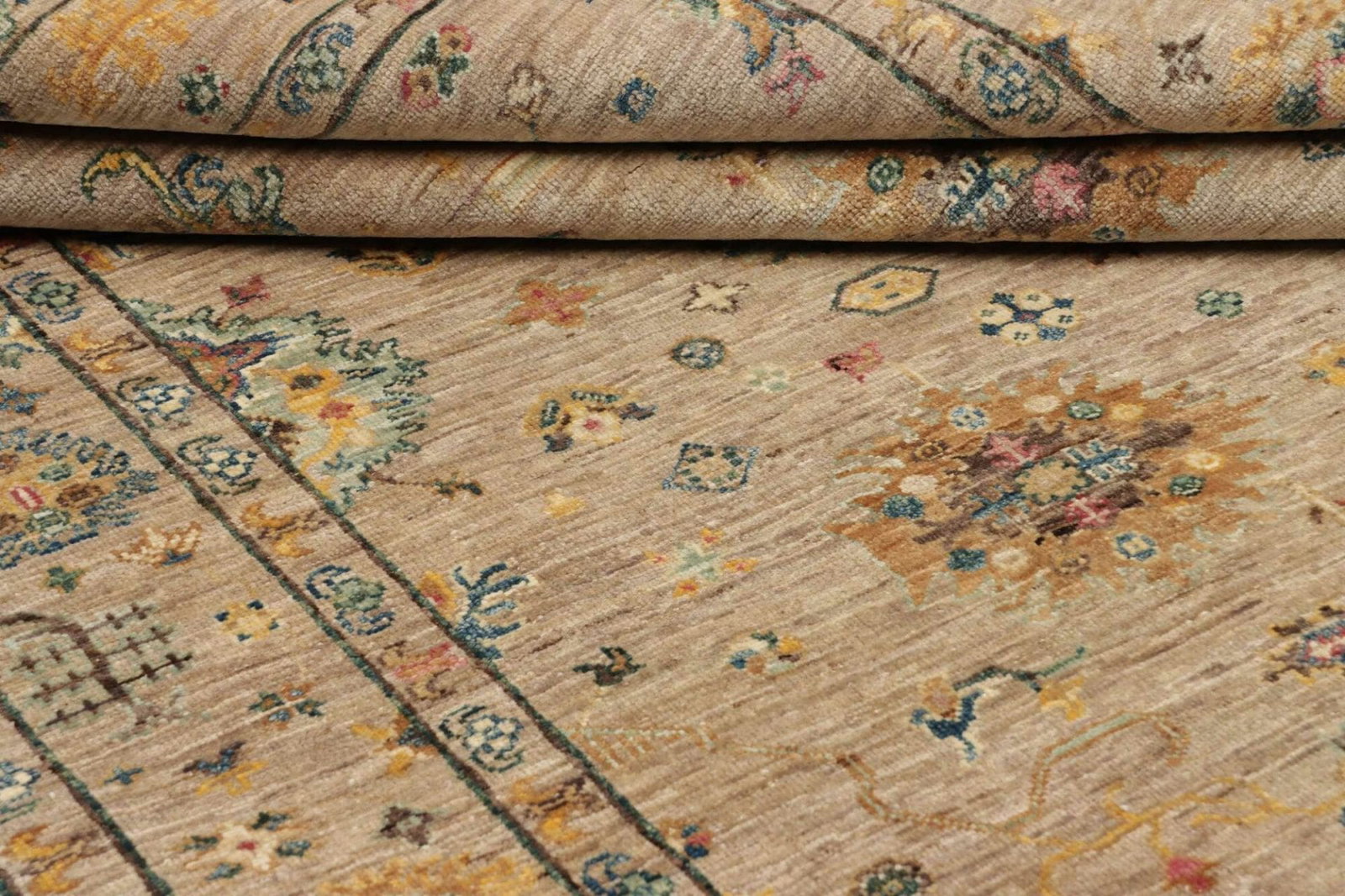 Die Verwendung von 100% Schurwolle macht diesen Teppich nicht nur besonders weich und angenehm im Anfassen, sondern sorgt auch für eine hohe Strapazierfähigkeit. Schurwolle hat die Fähigkeit, temperaturausgleichend zu wirken und dabei die Feuchtigkeit abzuleiten, wodurch der Teppich selbst in warmen Monaten ein angenehmes Raumklima schafft. Die handgeknüpfte Technik, die für die Ziegler-Faranhan-Teppiche charakteristisch ist, stammt aus einer jahrhundertealten Tradition. Jeder Knoten wird mit höchster Präzision gesetzt, was zu einer Knotendichte führt, die sowohl Festigkeit als auch Detailreichtum ermöglicht.