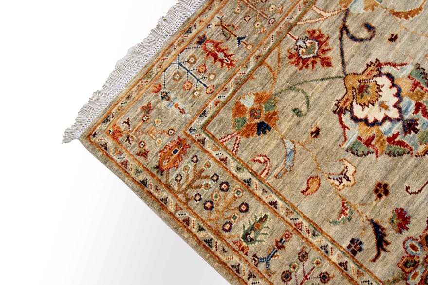 Der Ziegler Teppich wurde aus feinen Wollen gefertigt, die sowohl langlebig als auch angenehm weich sind. Die Verwendung von natürlicher Wolle sorgt dafür, dass der Teppich nicht nur robust ist, sondern auch eine angenehme Haptik besitzt. Jeder Teppich wird von erfahrenen Kunsthandwerkern handgeknüpft, wodurch eine Knotendichte entsteht, die die Strapazierfähigkeit und Langlebigkeit des Teppichs garantiert. Die besondere perfekte Ausführung wird durch die Sorgfalt bei der Verarbeitung abgerundet.