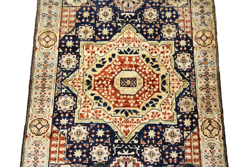 Ziegler-Teppich | Knotendichte: 128.000-160.000 Knoten/m² | Material: Hochwertige Wolle und Baumwolle | Größe: 152×105 cm | Farbe: Blau/Türkis | Zustand: Neu | Ursprung: Afghanistan | Verarbeitung: Handgeknüpft | Florhöhe: ca. 6 mm | Antikes Aussehen durch spezielle Behandlung