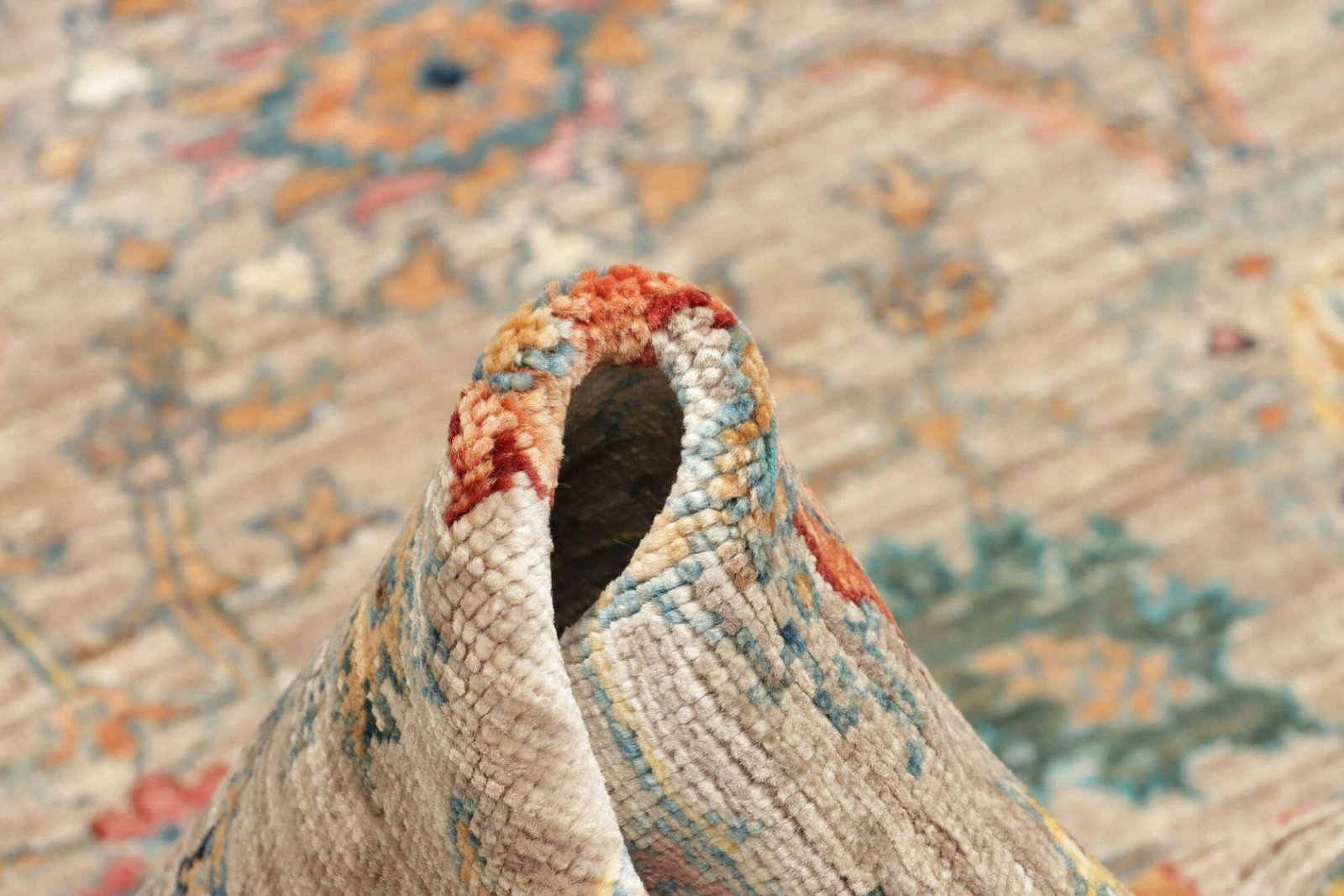 Der Ziegler Orientteppich besteht vollständig aus Schurwolle, einem Material, das für seine Robustheit und Haltbarkeit bekannt ist. Dank der sorgfältigen Auswahl der Wolle und der traditionellen Knüpftechnik ist der Teppich nicht nur angenehm warm, sondern auch atmungsaktiv. Diese Eigenschaften tragen dazu bei, dass der Teppich selbst in kälteren Monaten ein angenehmes Raumklima schafft.