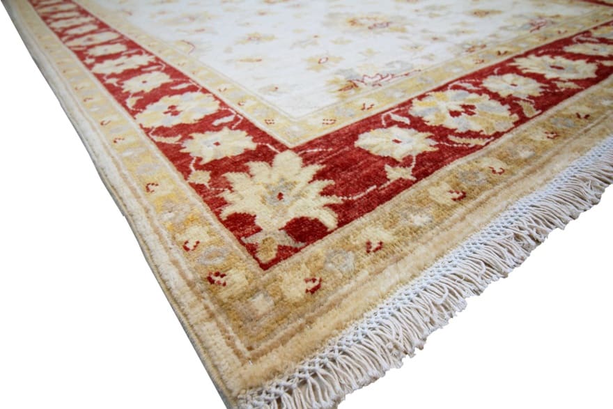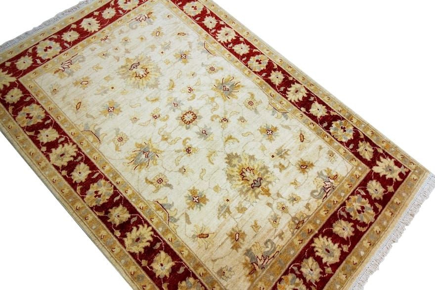 Ziegler Teppich | Knotendichte: 128.000-160.000 Knoten/m² | Material: Wolle | Größe: 185×124 cm | Ursprung: Afghanistan | Zustand: Neu | Farbe: Weiß/Beige | Verarbeitung: Handgeknüpft | Dicke: ca. 6 mm | Gewicht: ca. 6 kg | Kette: Baumwolle