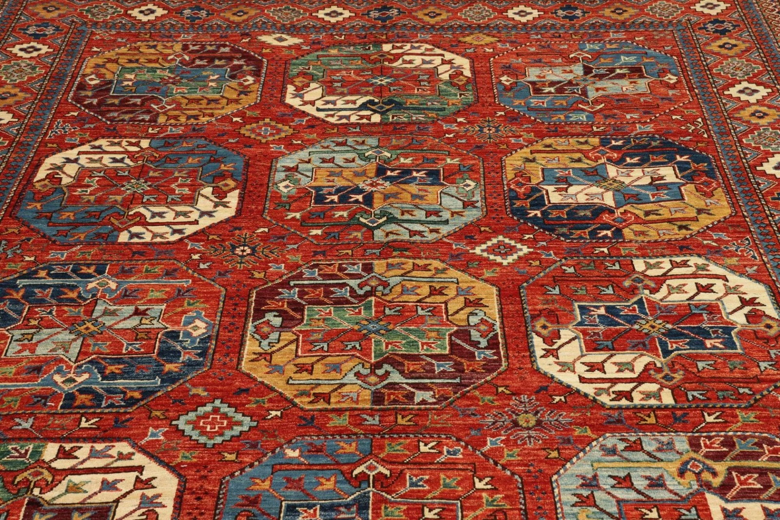 Die Verwendung hochwertiger Wolle ermöglicht die feine Ausarbeitung der Motive, wodurch jeder Teppich ein Unikat wird. Die sanften Töne in Kombination mit den kräftigen Akzenten machen diesen Teppich zu einem hervorragenden Kunstwerk für jeden Raum.