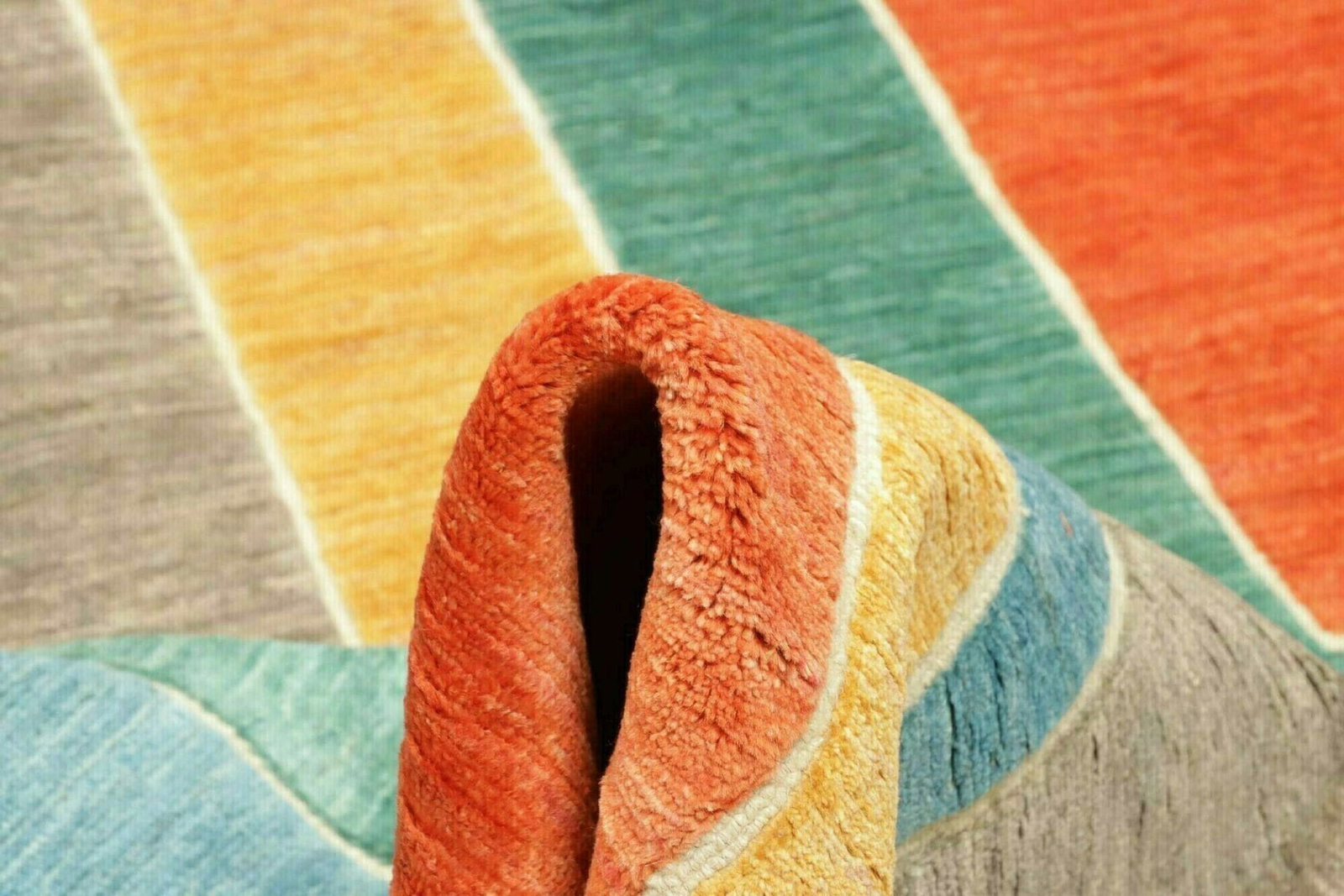 Der Teppich besteht aus 100 % Schurwolle, einem der besten Materialien für die Teppichherstellung. Schurwolle zeichnet sich durch ihre Weichheit, Robustheit und natürliche Farbgebung aus, was den Teppich langlebig und pflegeleicht macht. Der handgeknüpfte Teppichprozess sorgt dafür, dass jeder Teppich ein Unikat ist, das Individualität und Charakter ausstrahlt. Die Knotendichte ist ein entscheidendes Merkmal für die Qualität des Teppichs: Ein dichter geknüpfter Teppich ist in der Regel langlebiger und hat eine tiefere Farbgebung, die auch nach Jahren der Nutzung erhalten bleibt.